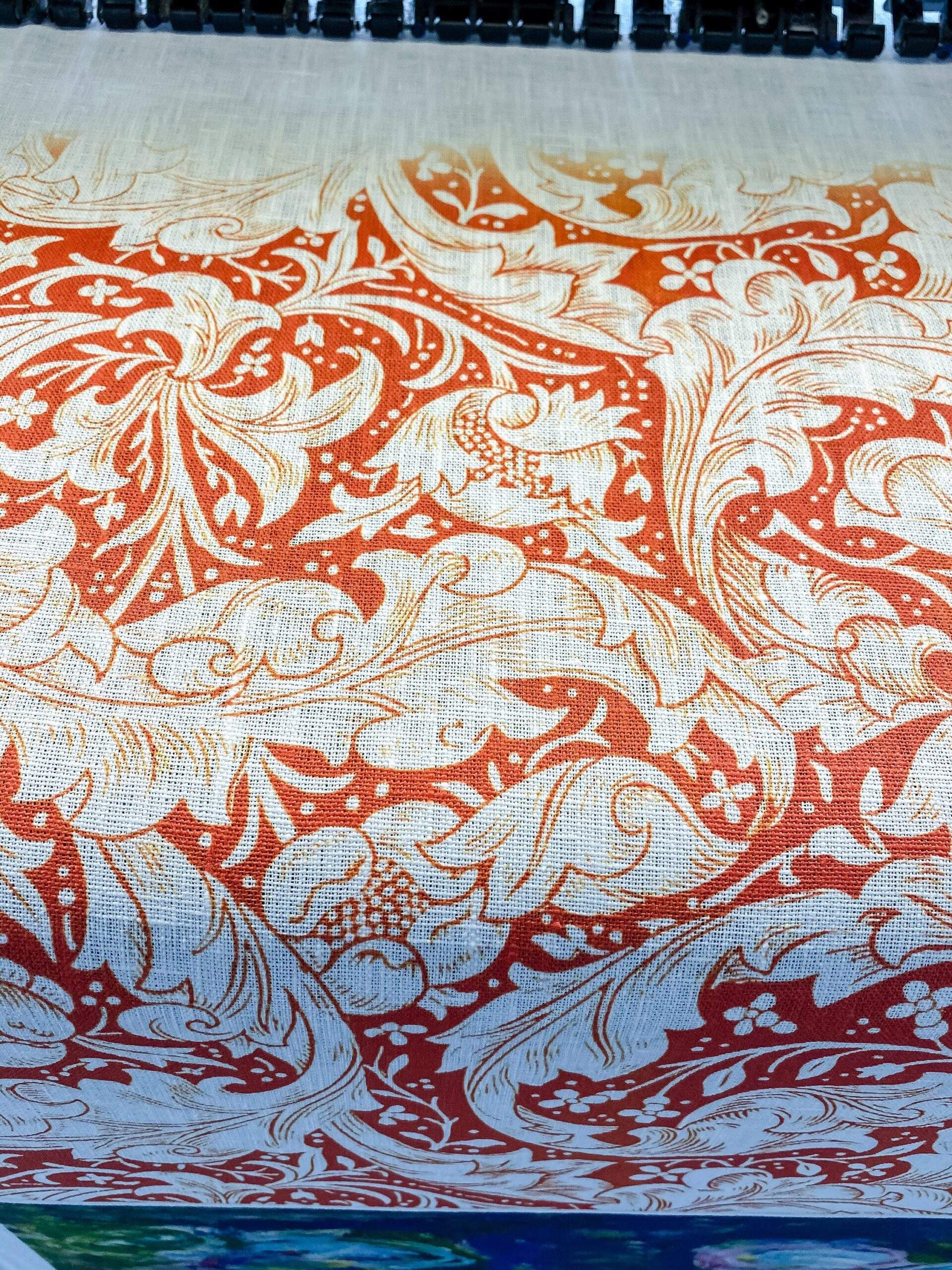 Napkins set William Morris “Bachelors Button” red colour. We have matching linen placemats and table runner. 100% linen fabric.