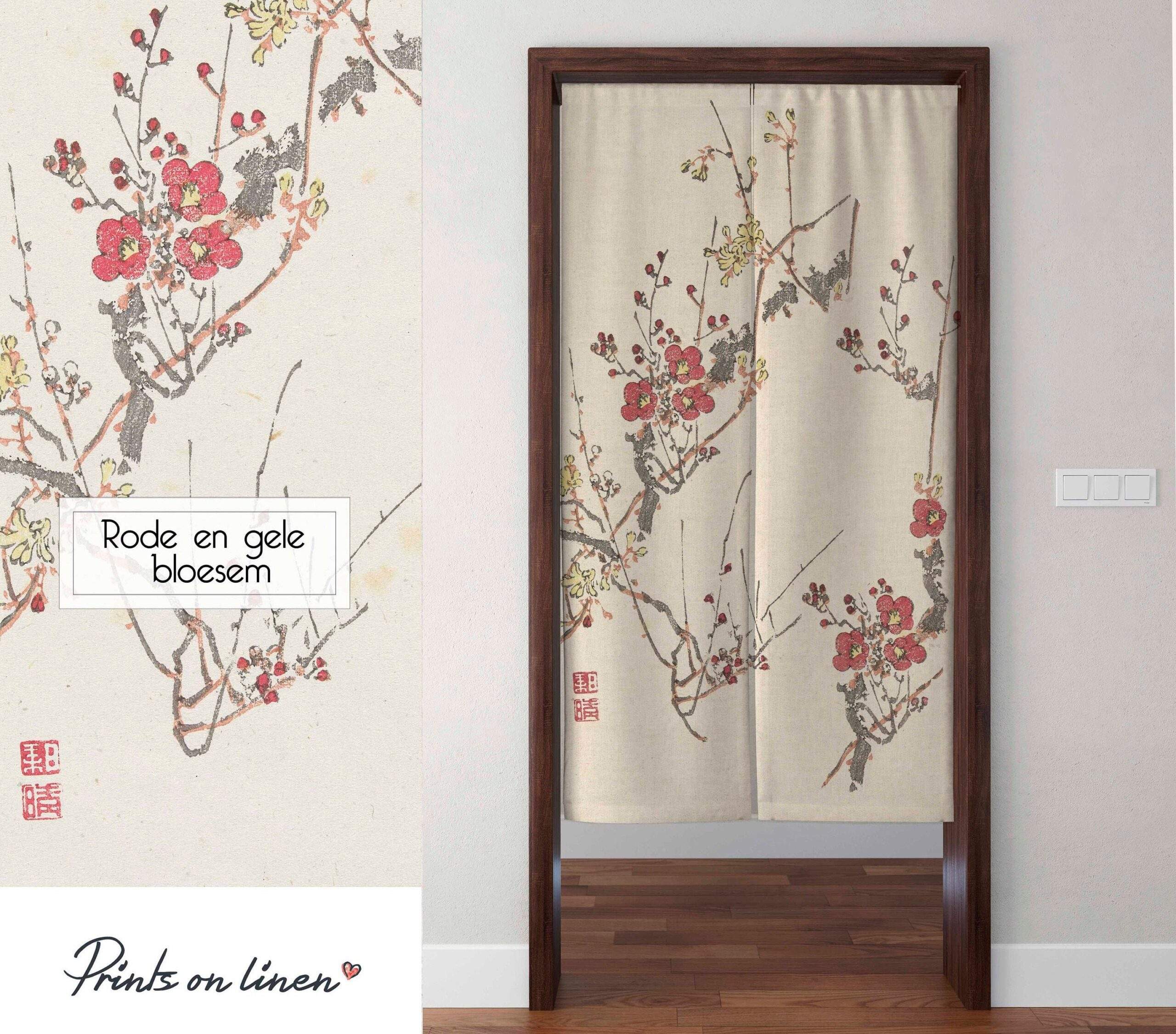 Noren curtains, traditional Japanese fabric dividers hung between rooms, on walls, in doorways, or in windows. They have one vertical slits cut from the bottom allowing for easier passage or viewing. These noren door curtains can give a room your own unique style. This home decor are ideal to create good Feng Shui environments, being used in homes, businesses and restaurants. Exclusive pattern printed on one side organic linen fabric.