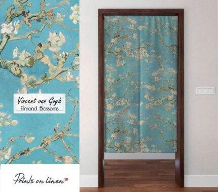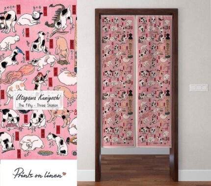 Noren curtains, traditional Japanese fabric dividers hung between rooms, on walls, in doorways, or in windows. They have one vertical slits cut from the bottom allowing for easier passage or viewing. These noren door curtains can give a room your own unique style. This home decor are ideal to create good Feng Shui environments, being used in homes, businesses and restaurants. Exclusive pattern printed on one side organic linen fabric.