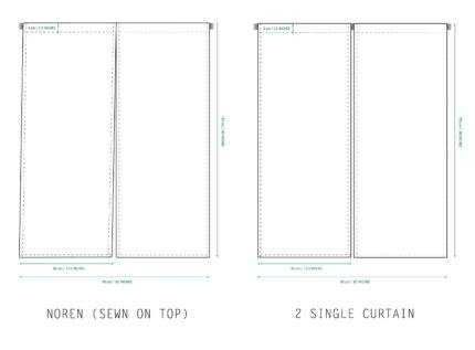 Our Noren curtains are made of TWO single matching pieces of linen fabric. Print is on one side.