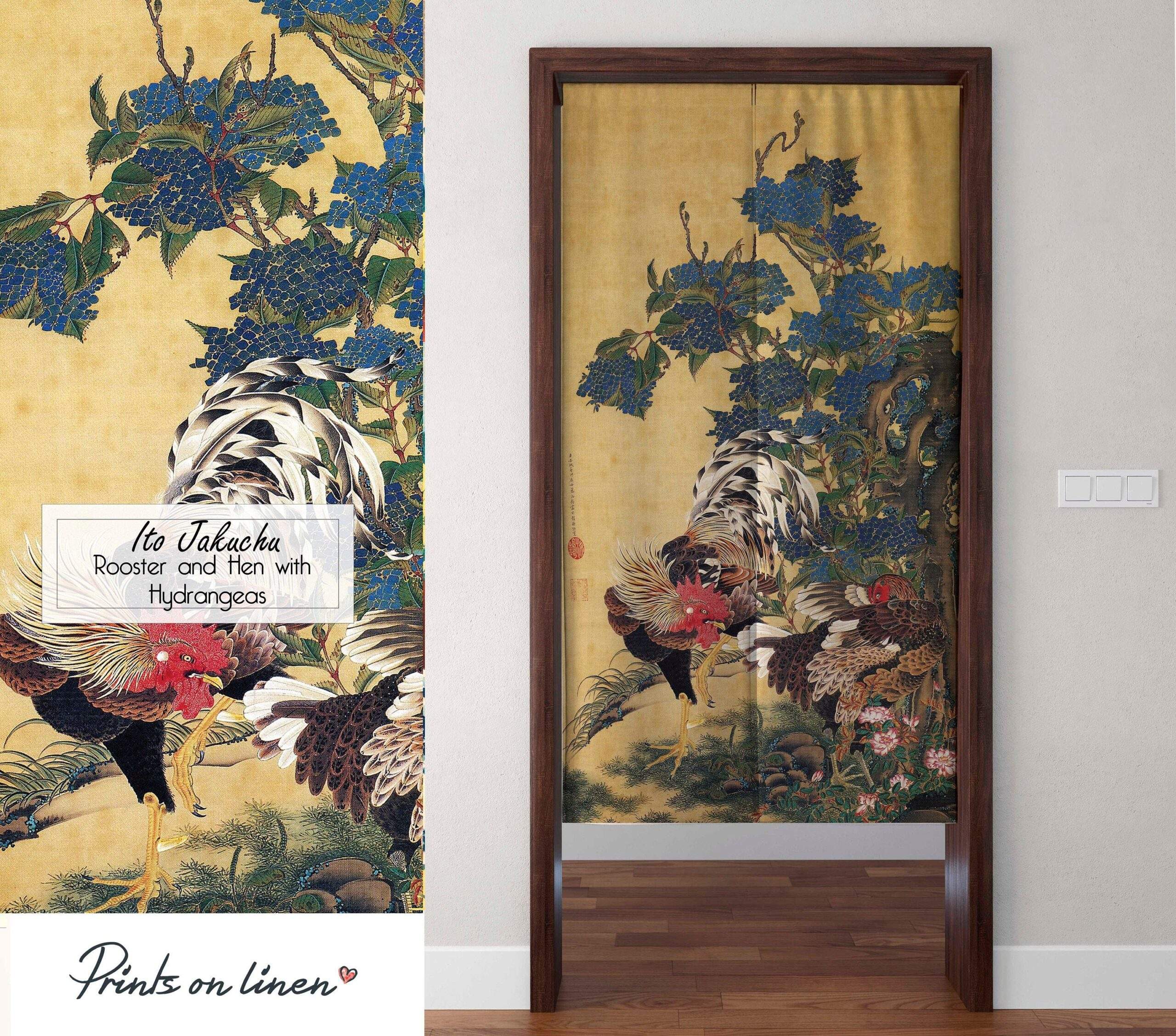Design: Itō Jakuchū “Rooster and Hen with Hydrangeas”.