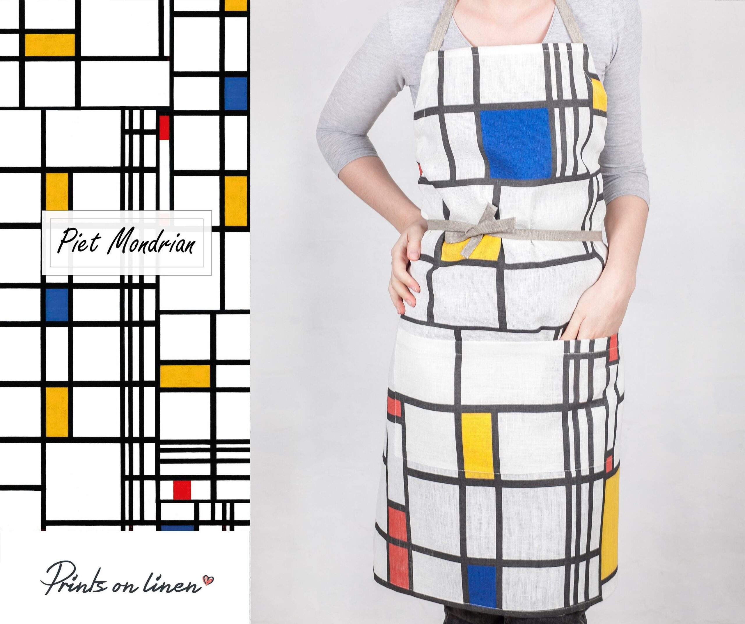 Piet Mondrian, Apron, matching towel, Composition, Apron, linen apron, chef apron, with pocket, personalized apron, PR1273