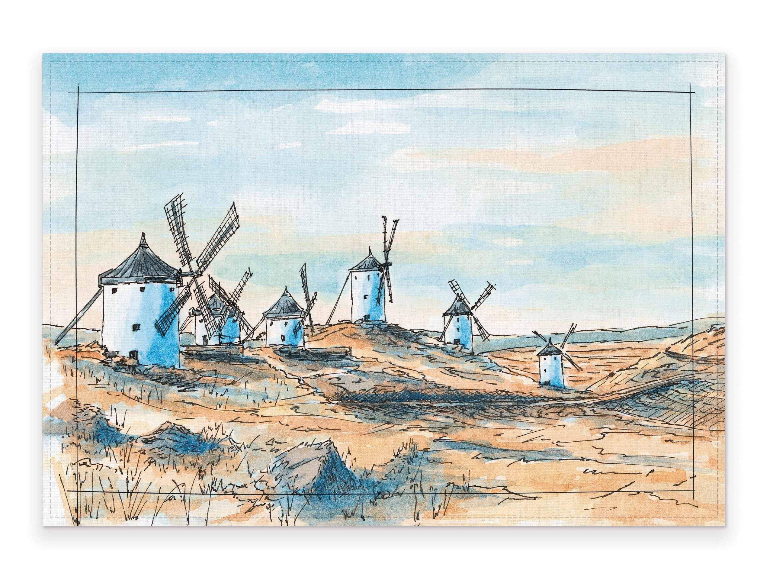 Placemat set Spanish Old-Fashioned Windmills.
