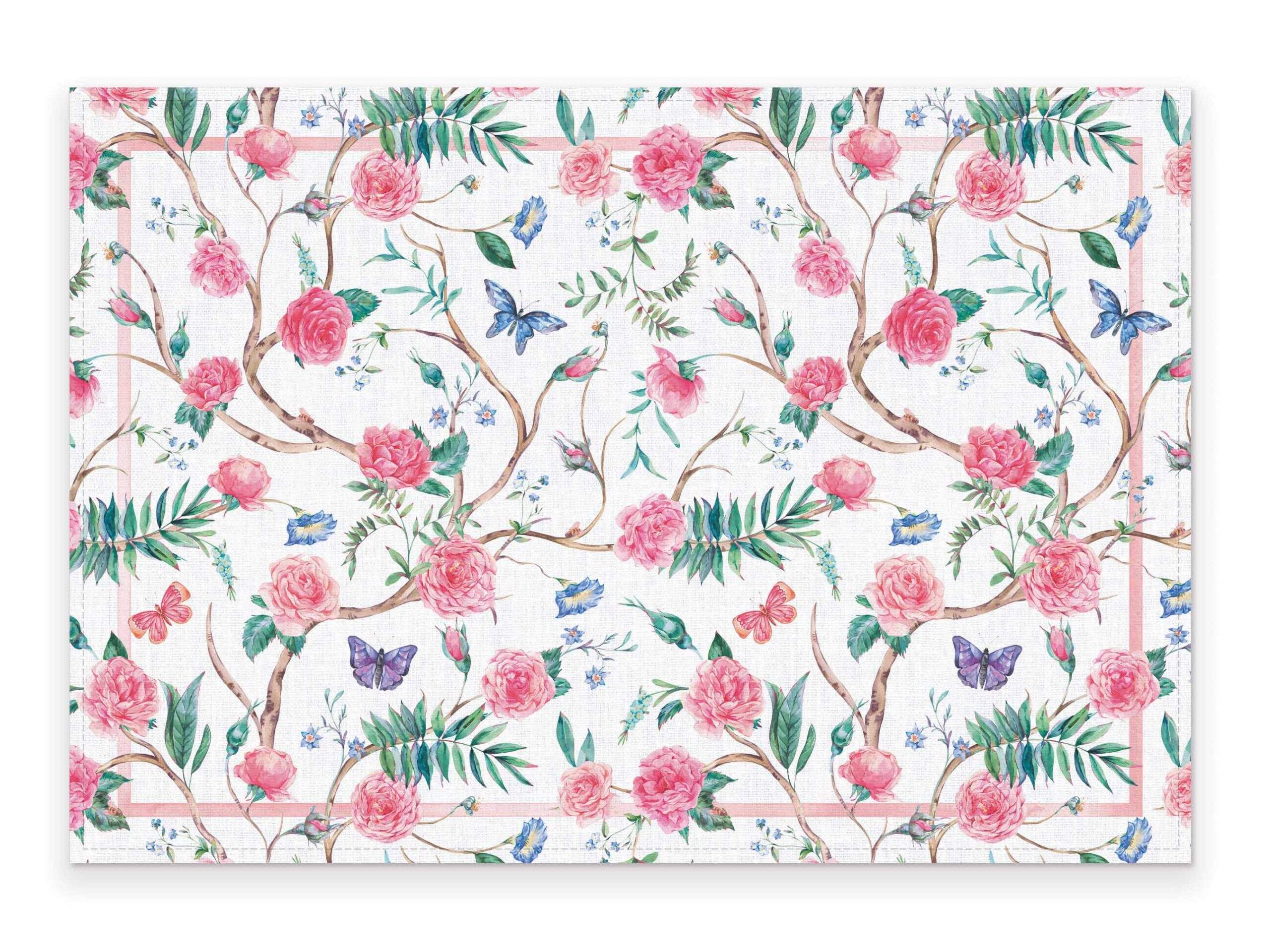 Placemat set Watercolor Garden Rose Bouquet.