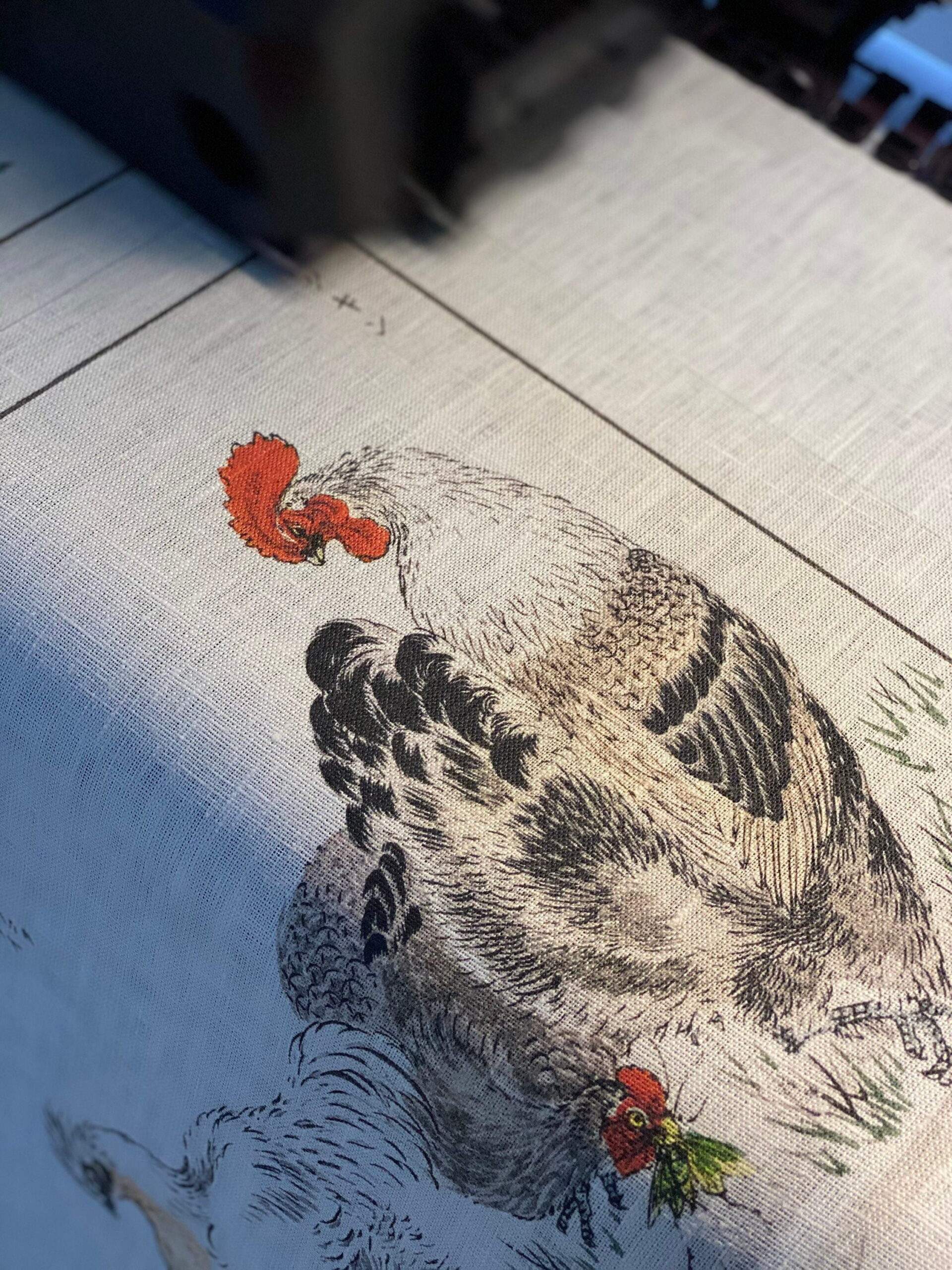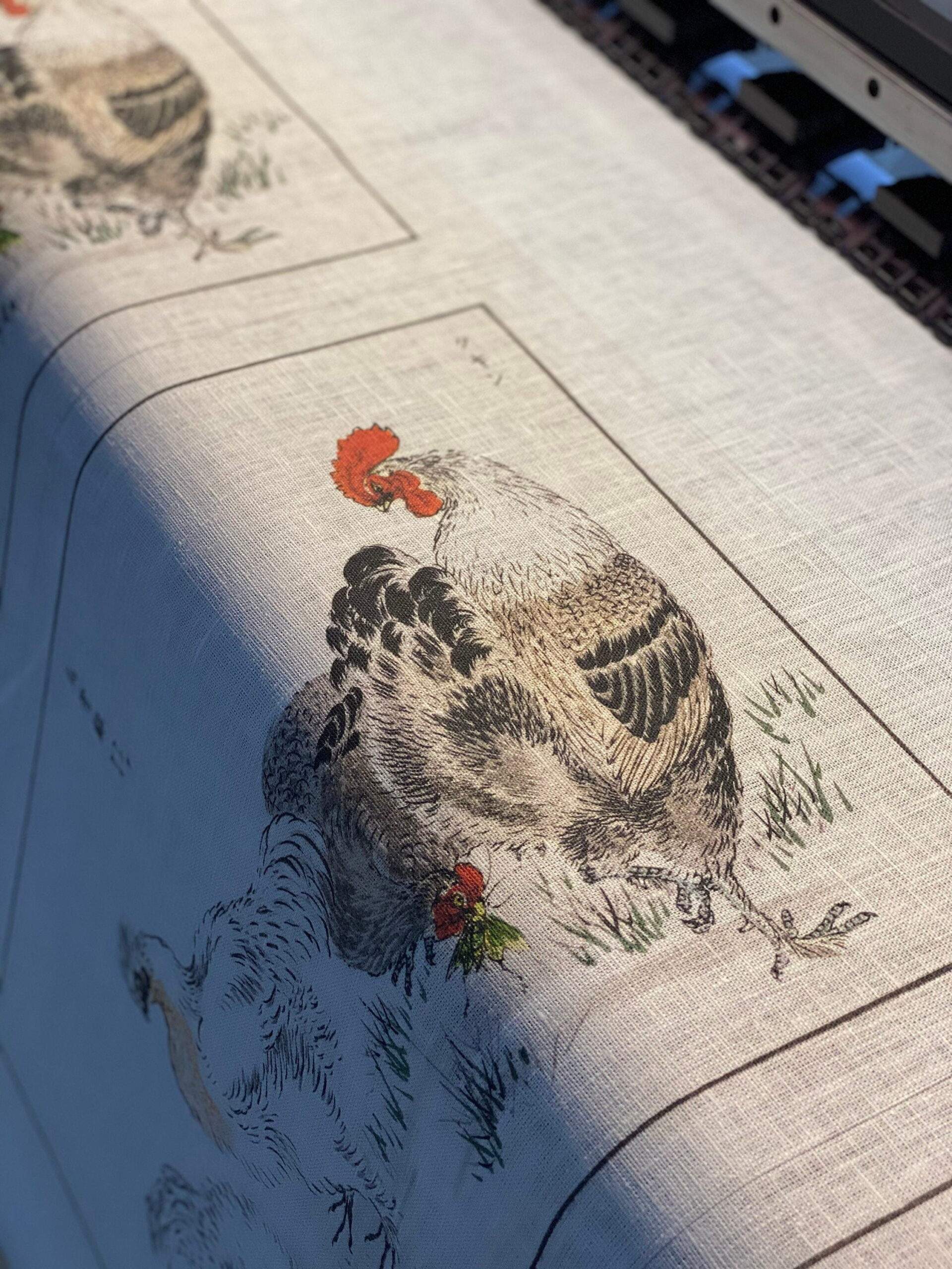 Linen placemats set Domestic Fowl illustration from Pictorial Monograph of Birds 1885 by Numata Kashu. Hand made linen placemats, vintage table decor collection.