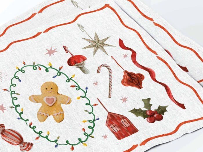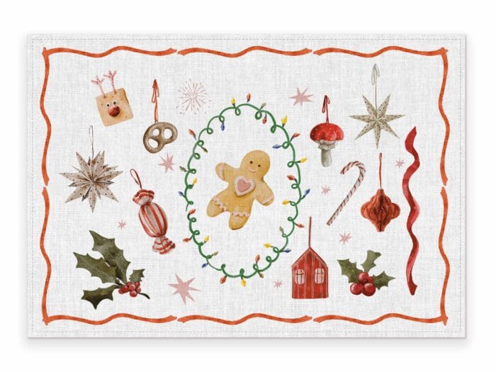 Linen Placemats Retro Fir Tree Decor With Frame Candy.