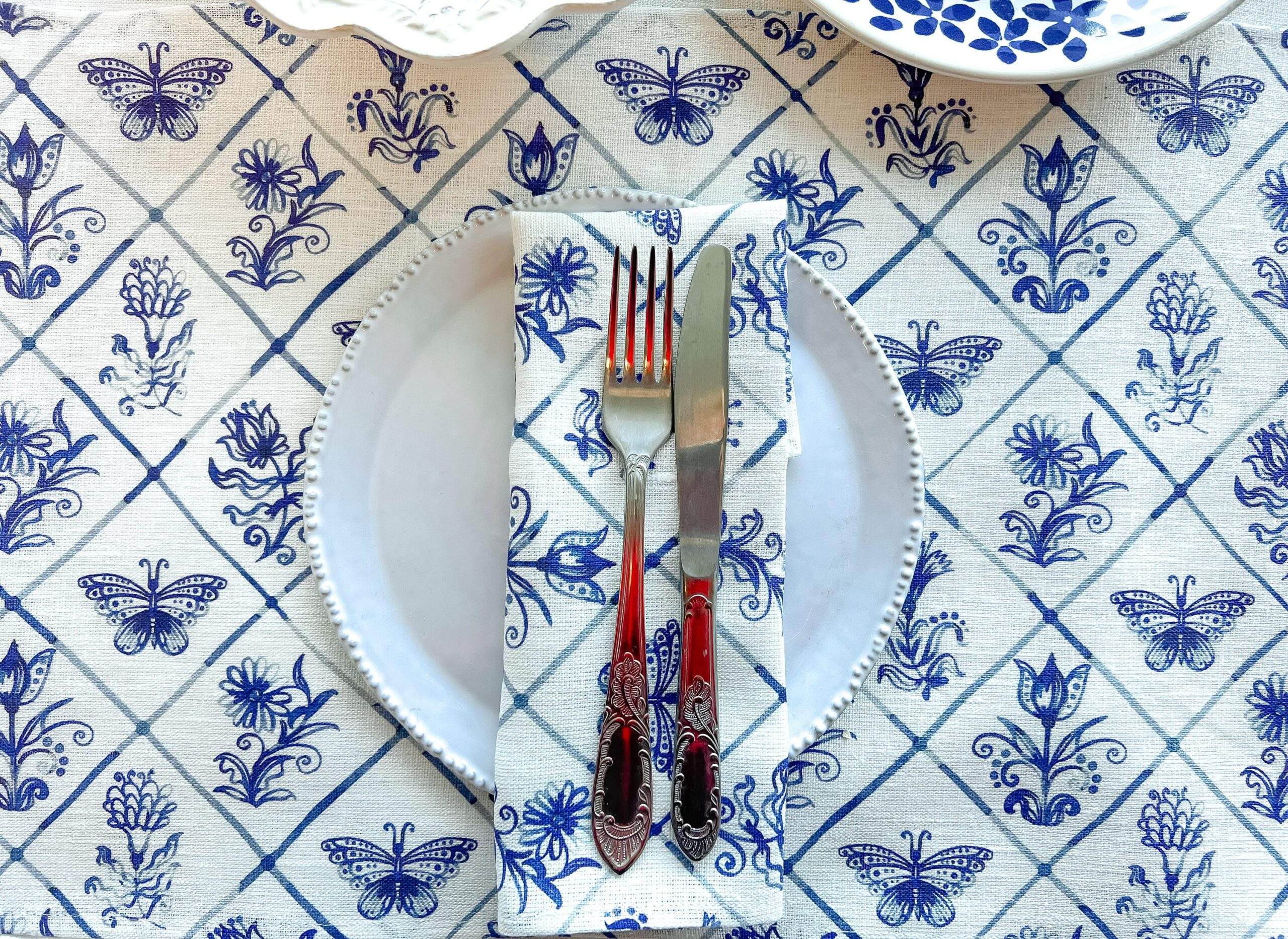 Placemats set “Rustic motifs”. We have matching linen napkins, tbale runner and dish towel.