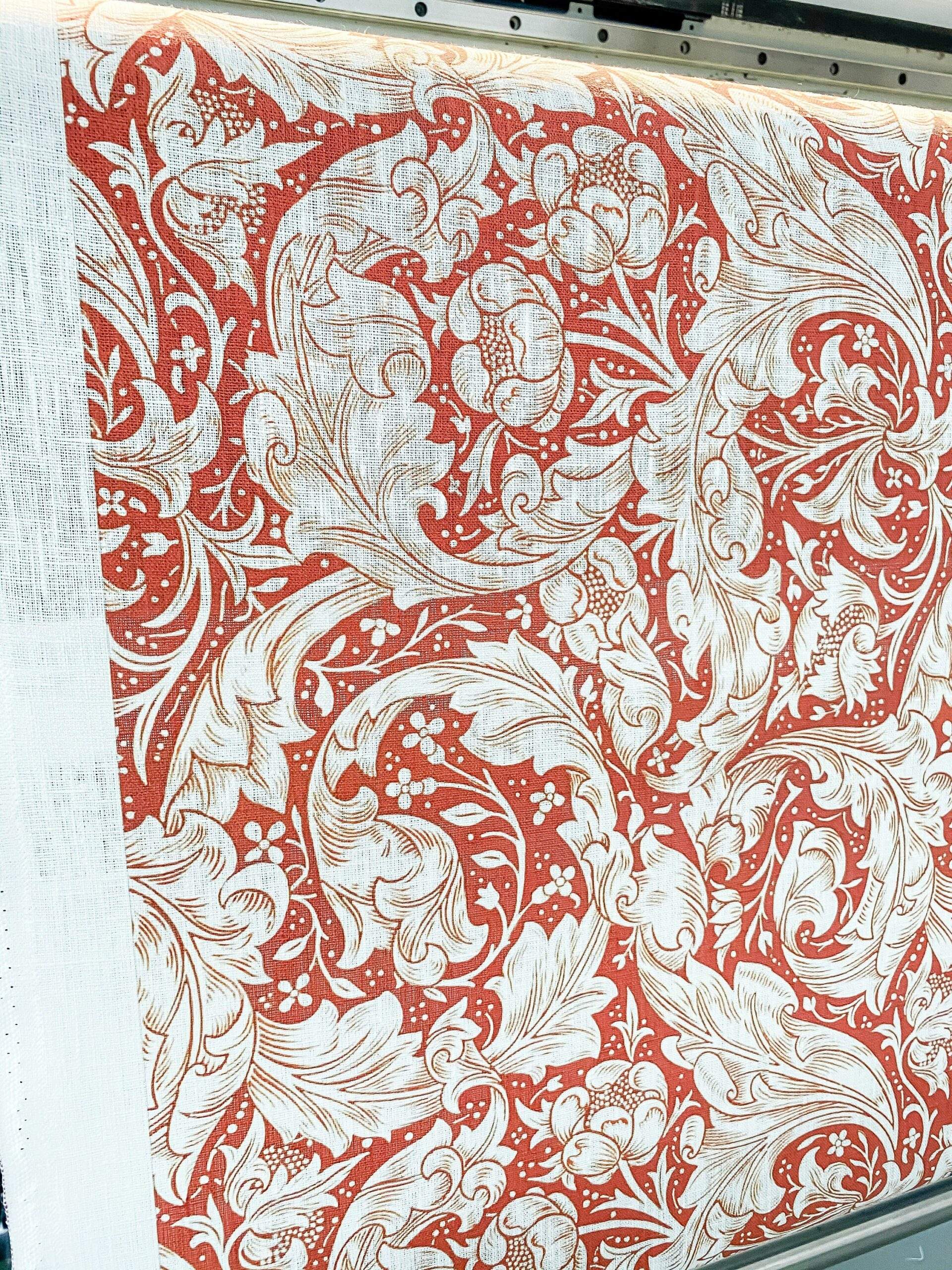Placemats set William Morris “Bachelors Button”, red color. Linen placemats set. We have matching table runner and napkins.
