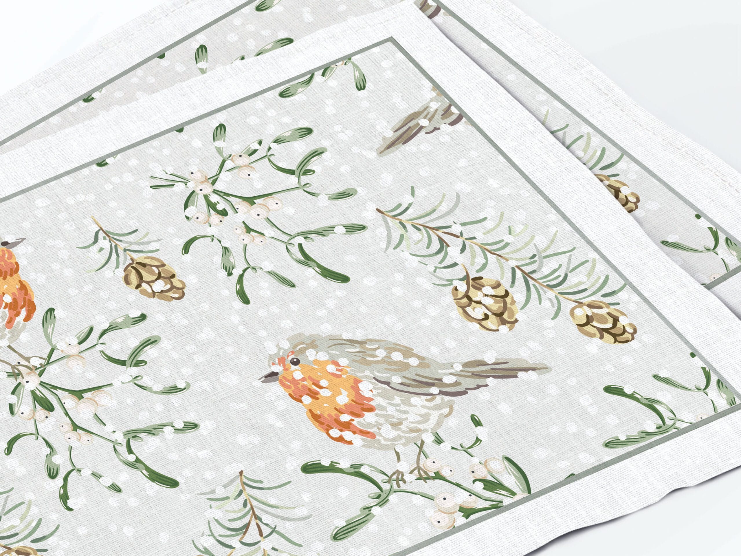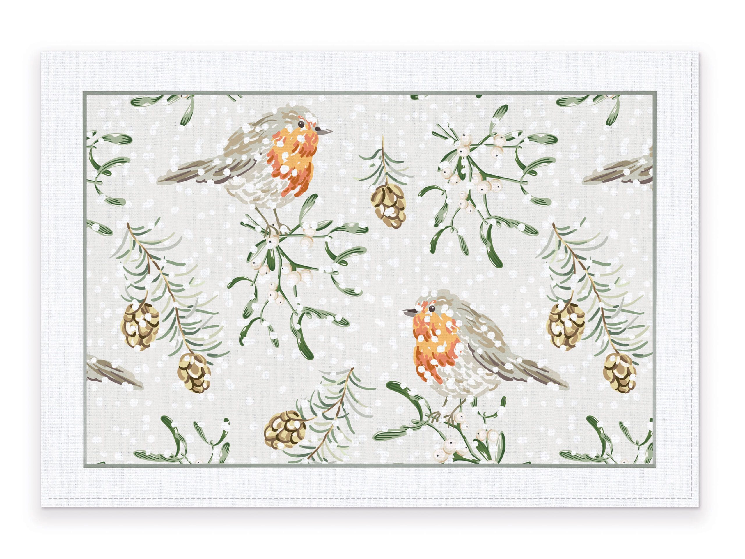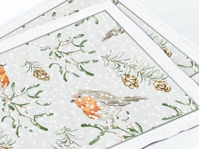Placemats set Winter Robins.
