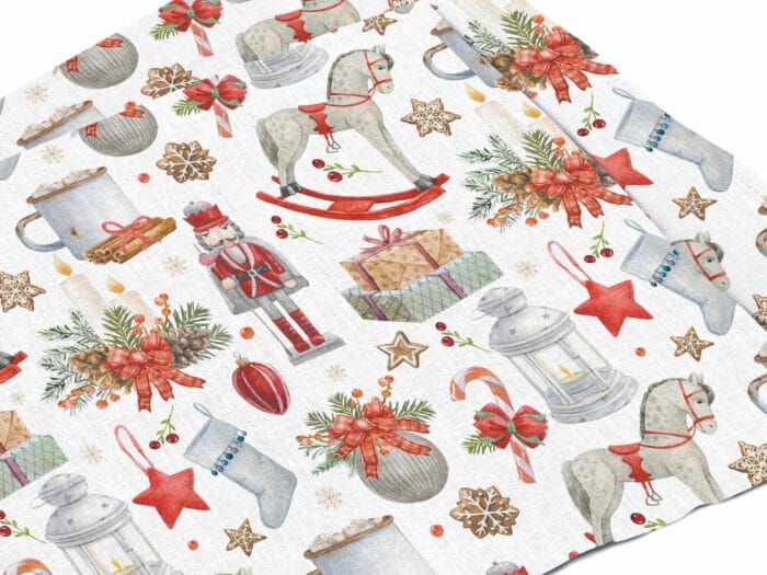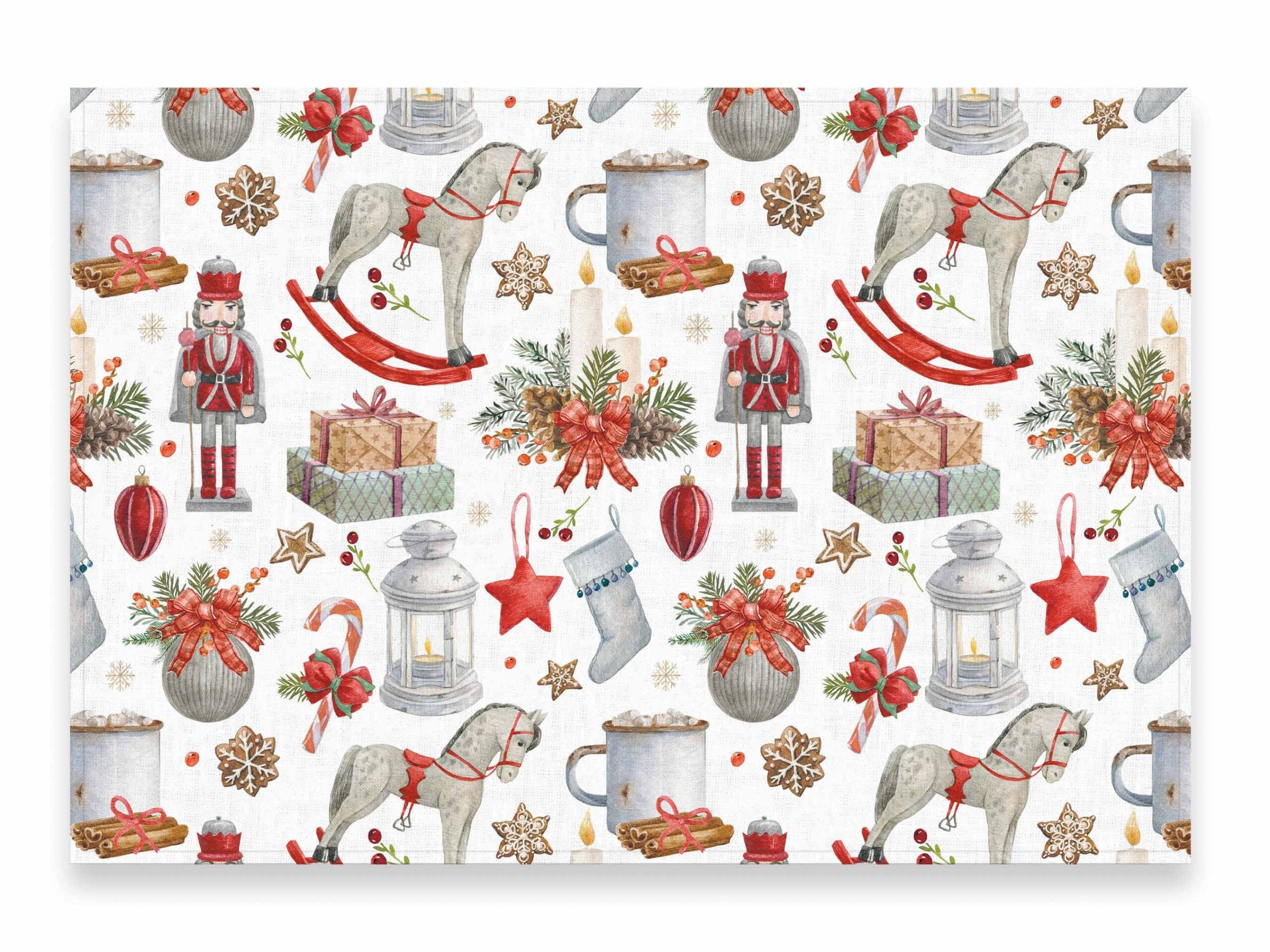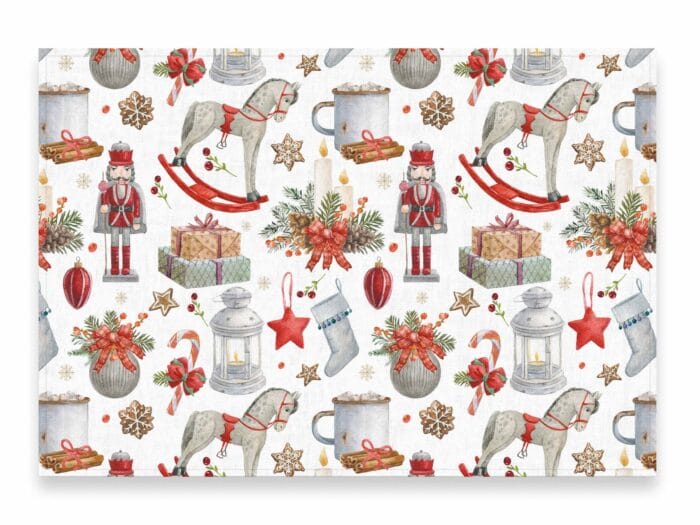 Linen Placemats set with “Winter Treasures” print.