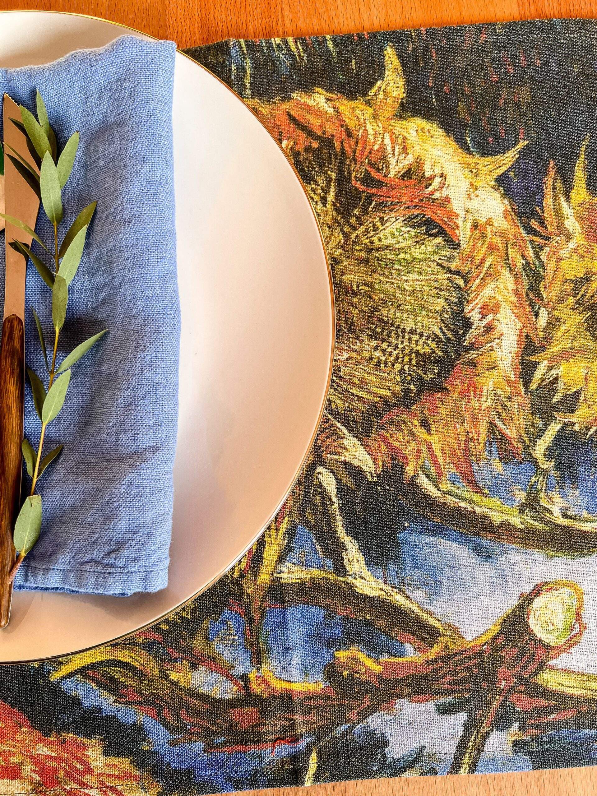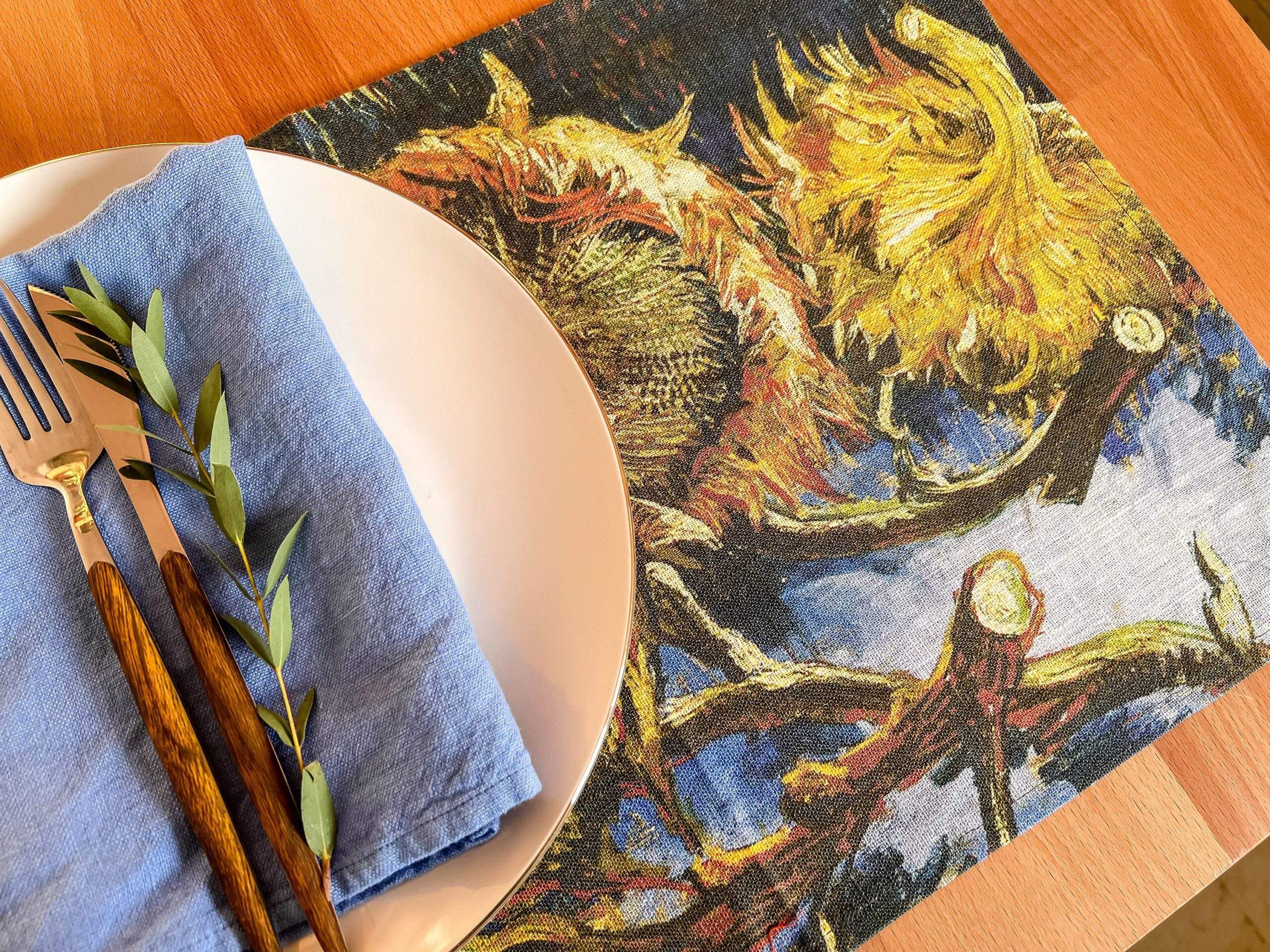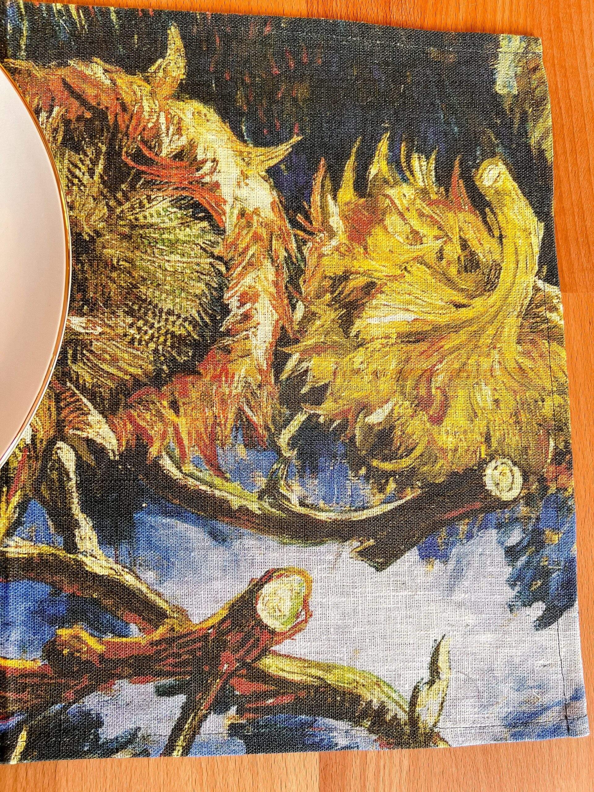Six different placemats set, Vincent Van Gogh artworks “Sunflowers” II.