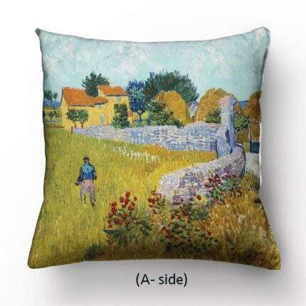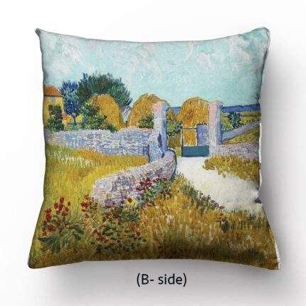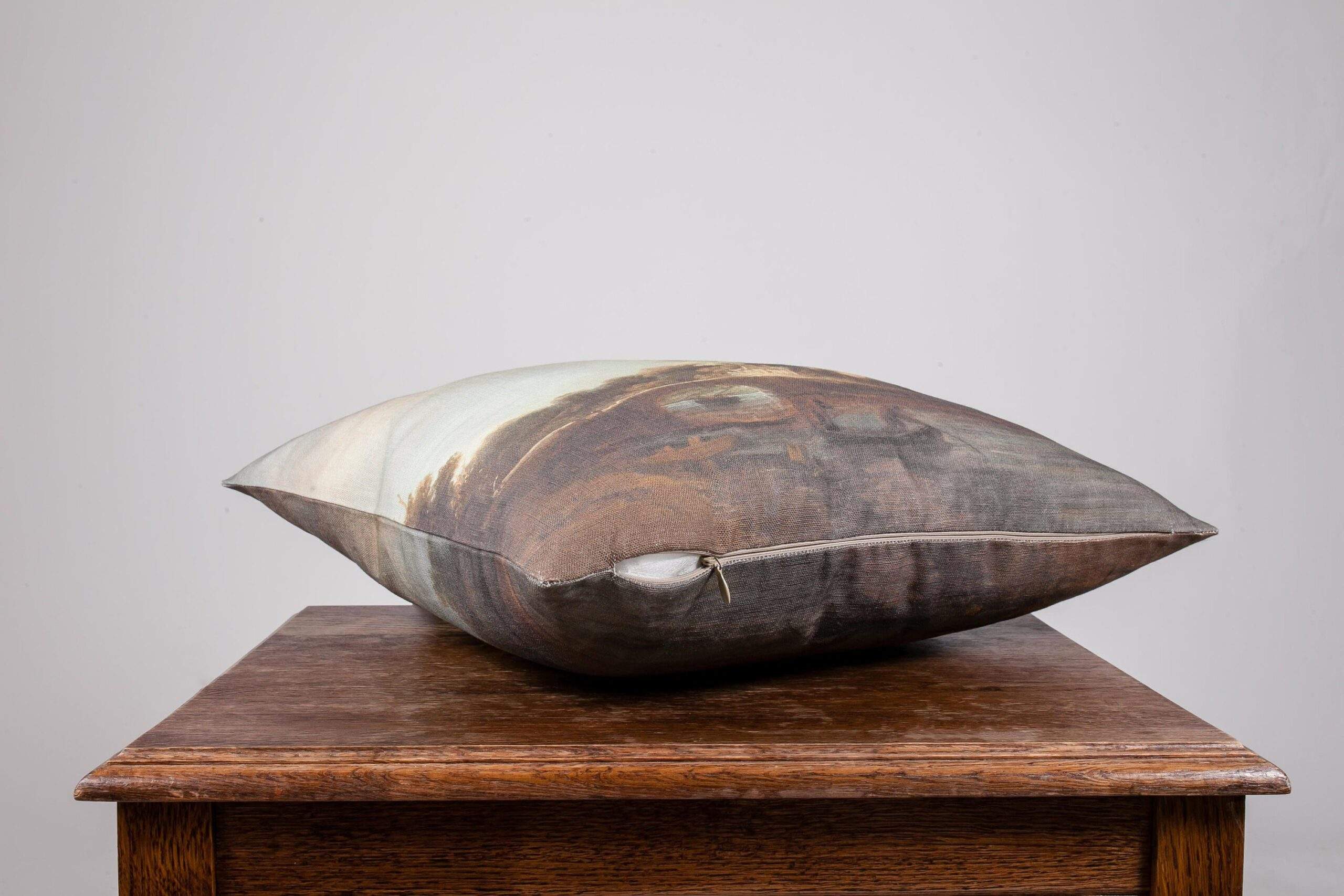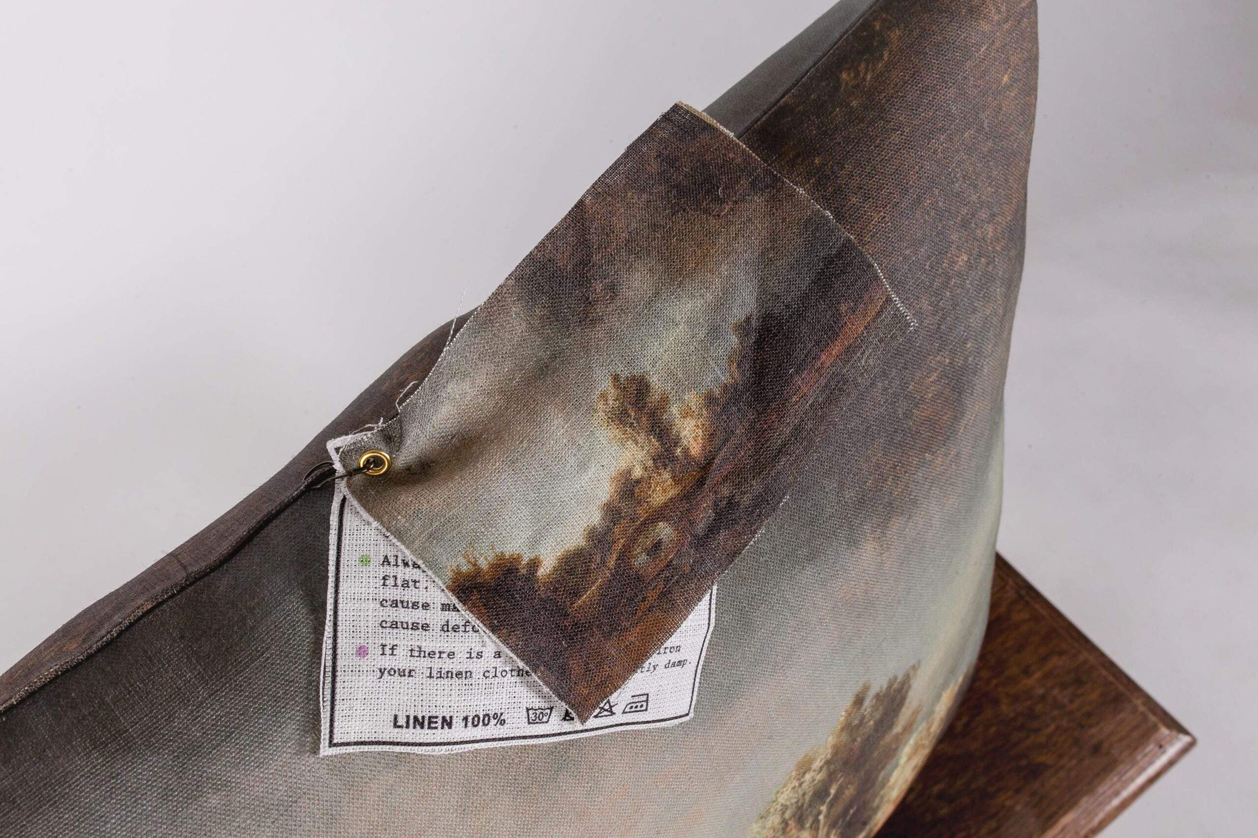 Cushion cover Rembrandt “Landscape with a Stone Bridge”. 100% linen cushion cover. Patter is on both sides. We are making this pillow cases with a zipper, it makes the cover easy to remove.