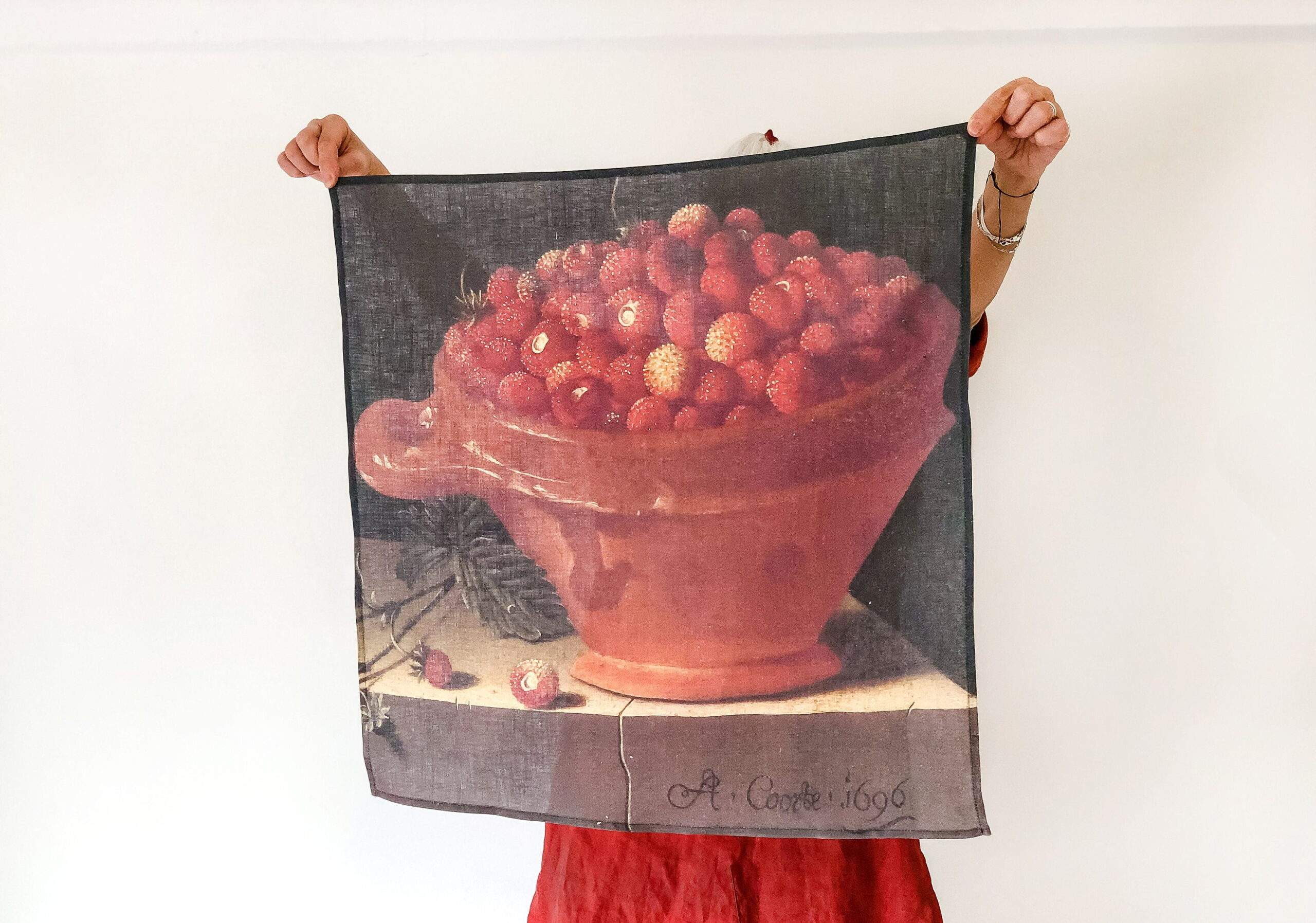 Furoshiki wrap A Bowl of strawberries on Stone Plinth by Adriaen Coorte. is made from 100% linen. We accept custom order request for different sizes.