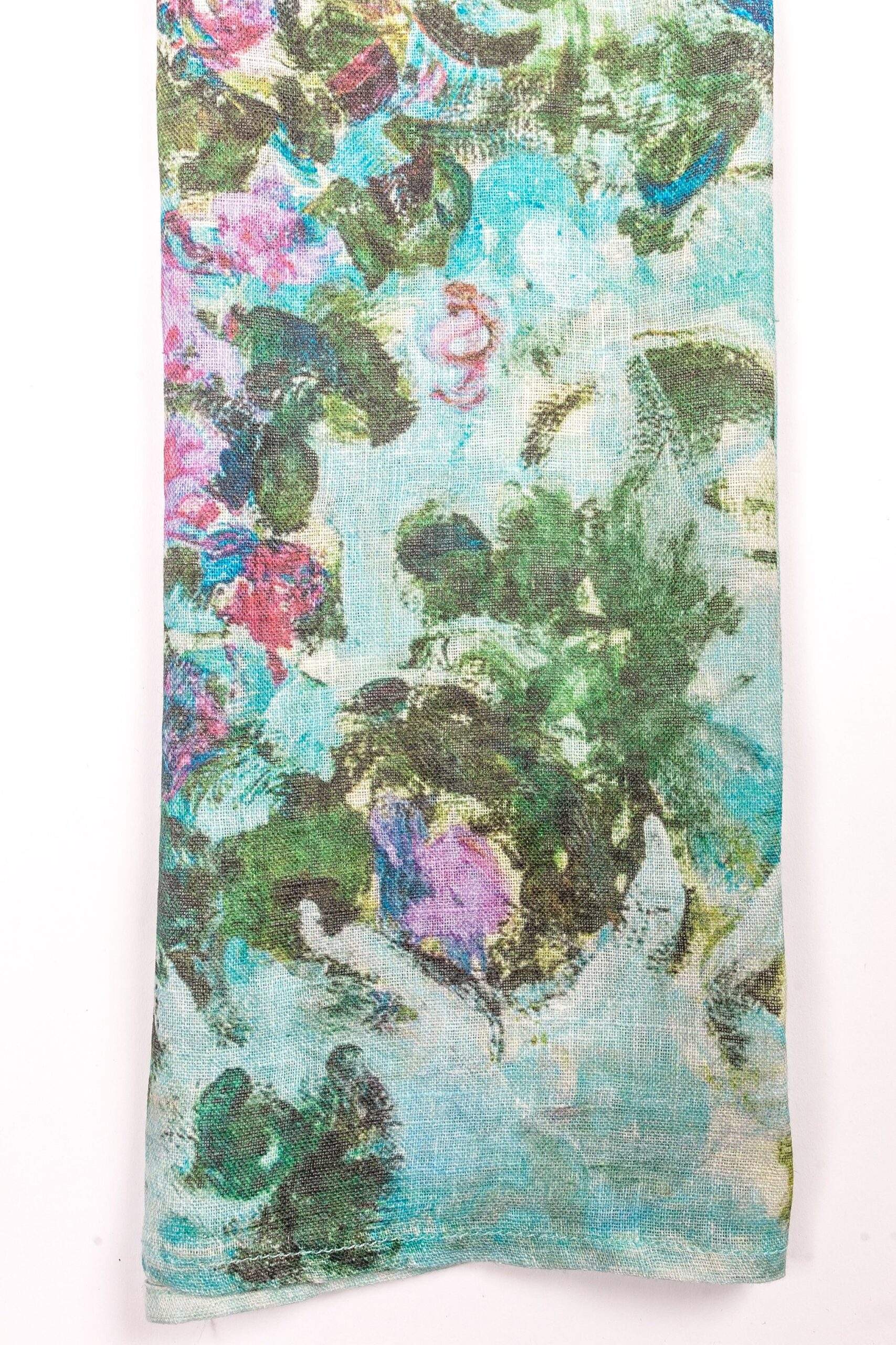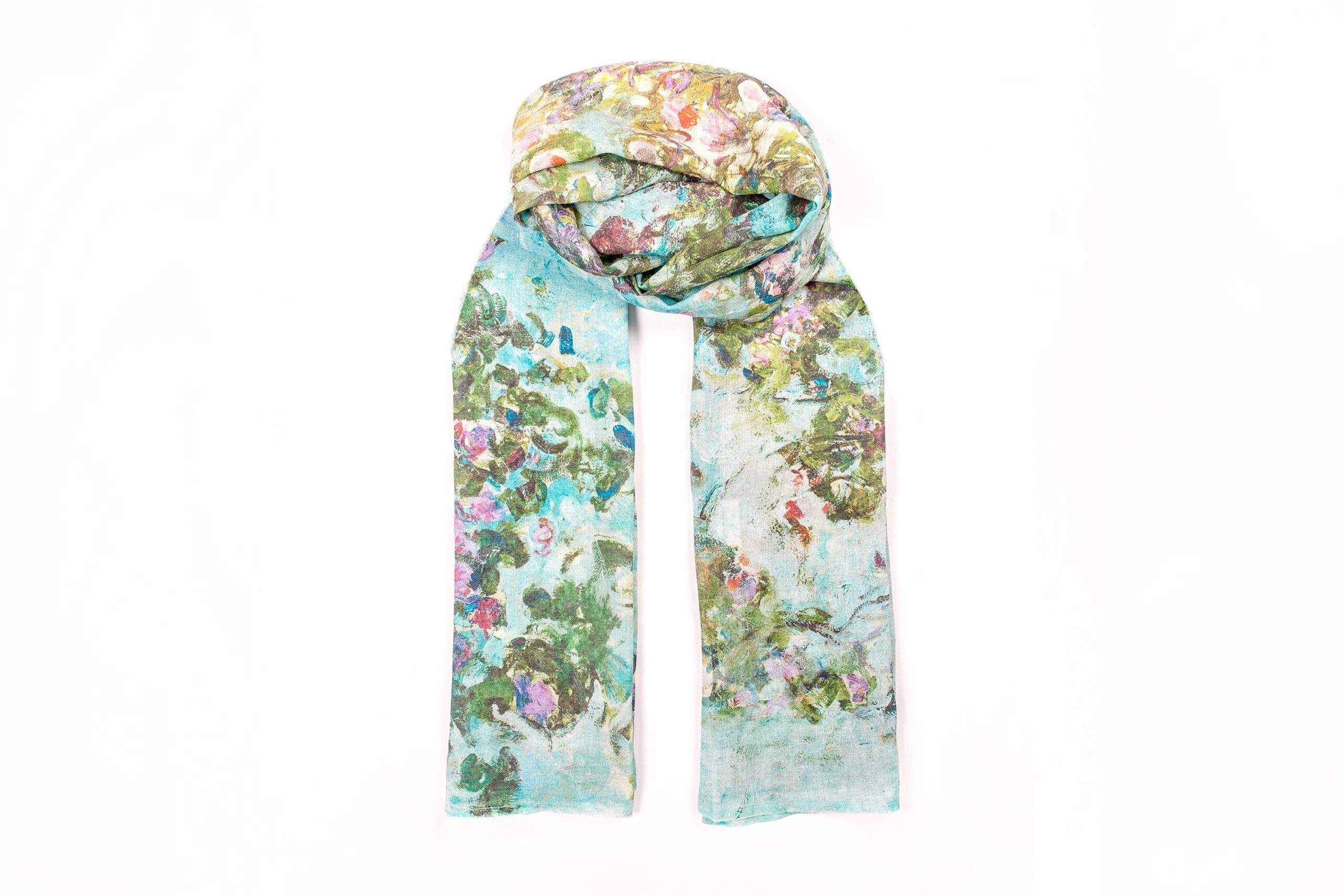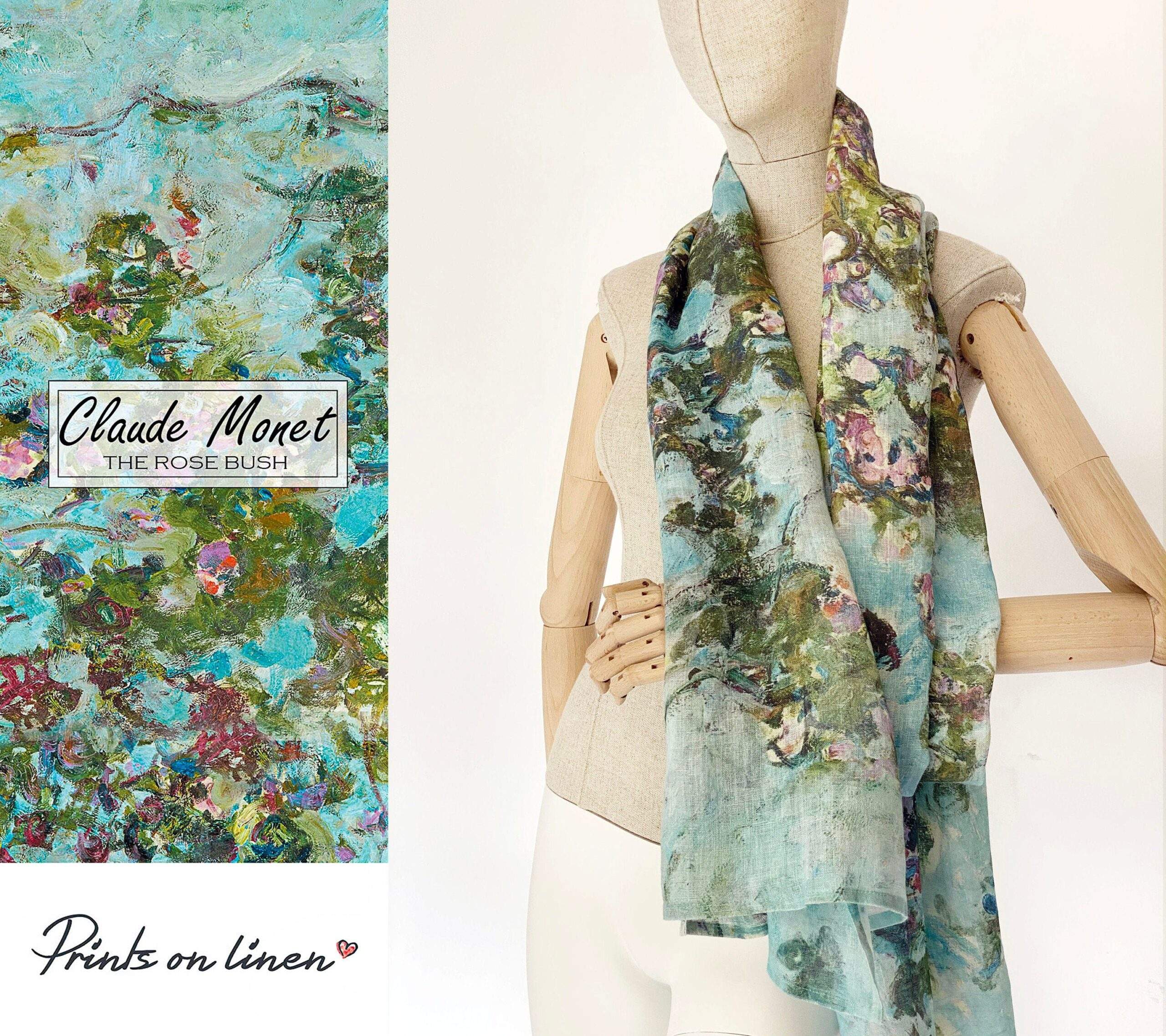 Linen scarf Claude Monet “The Roses Bush”. Oscar-Claude Monet was a French painter, a founder of French Impressionist painting and the most consistent and prolific practitioner of the movement’s philosophy of expressing one’s perceptions before nature, especially as applied to plain air landscape painting.
