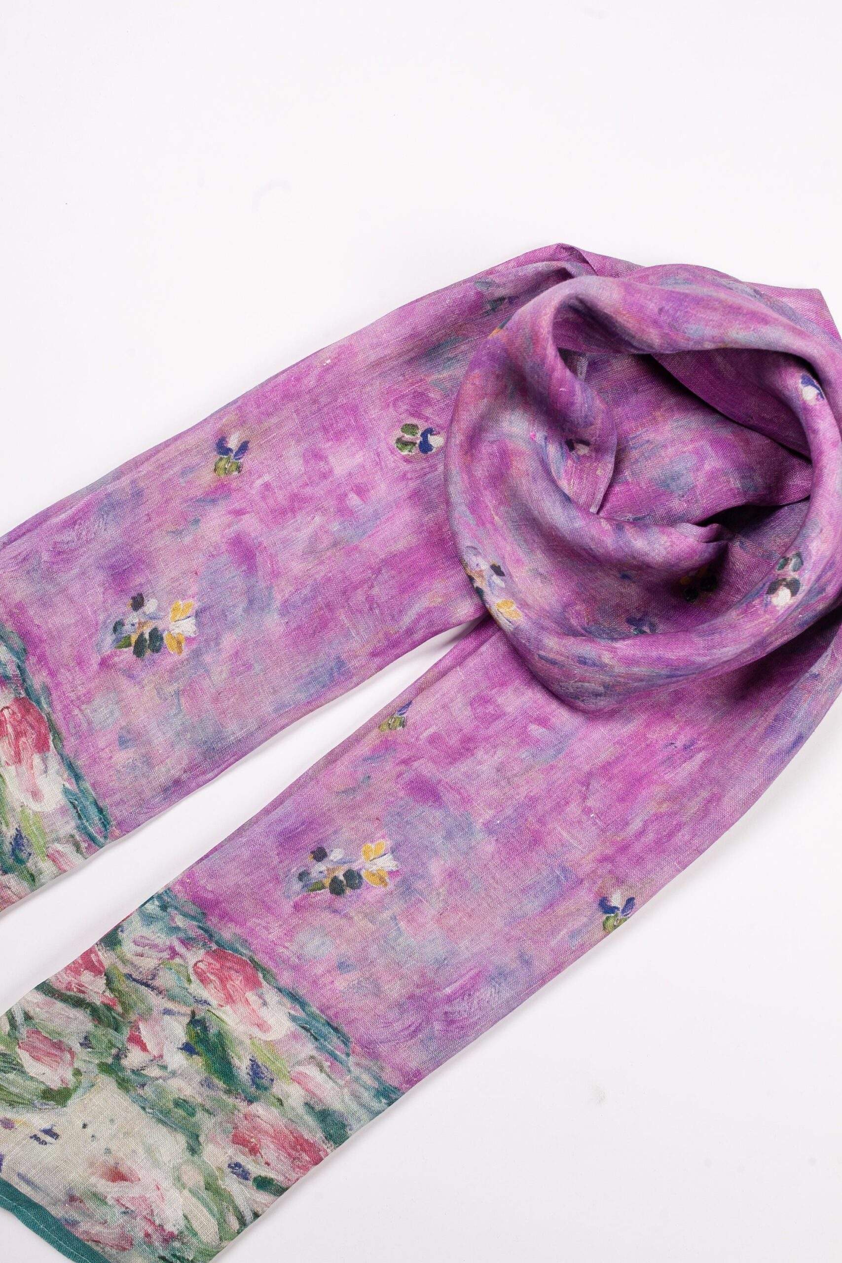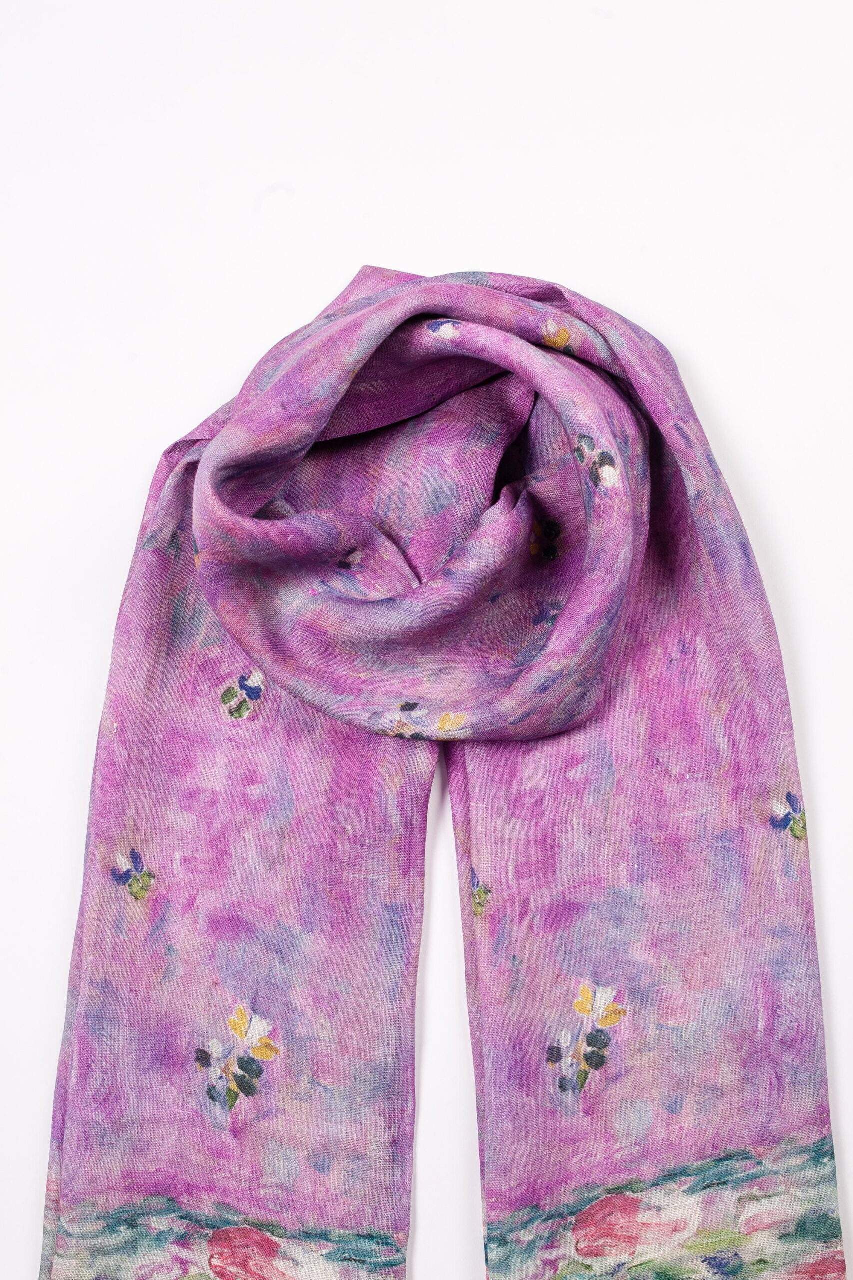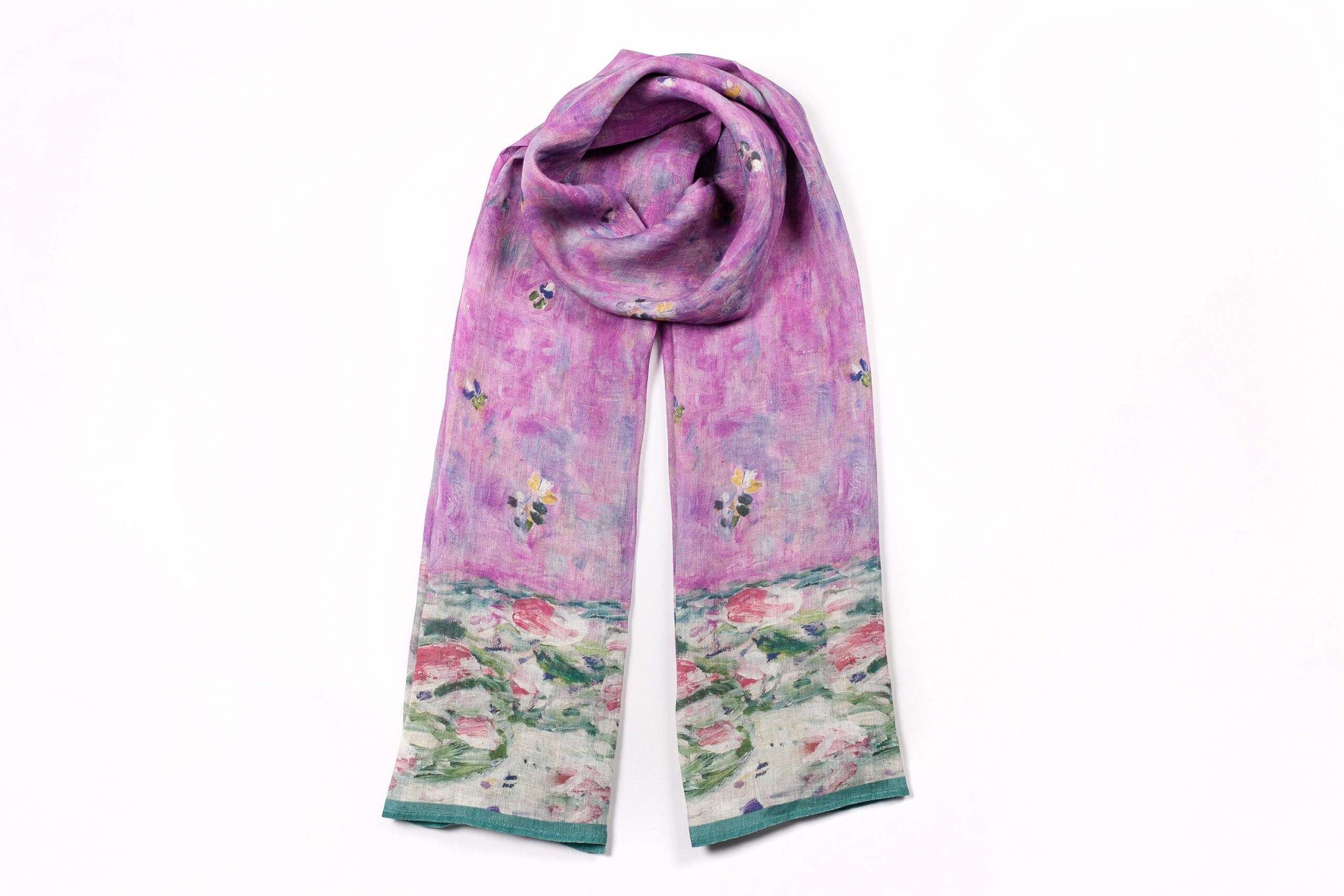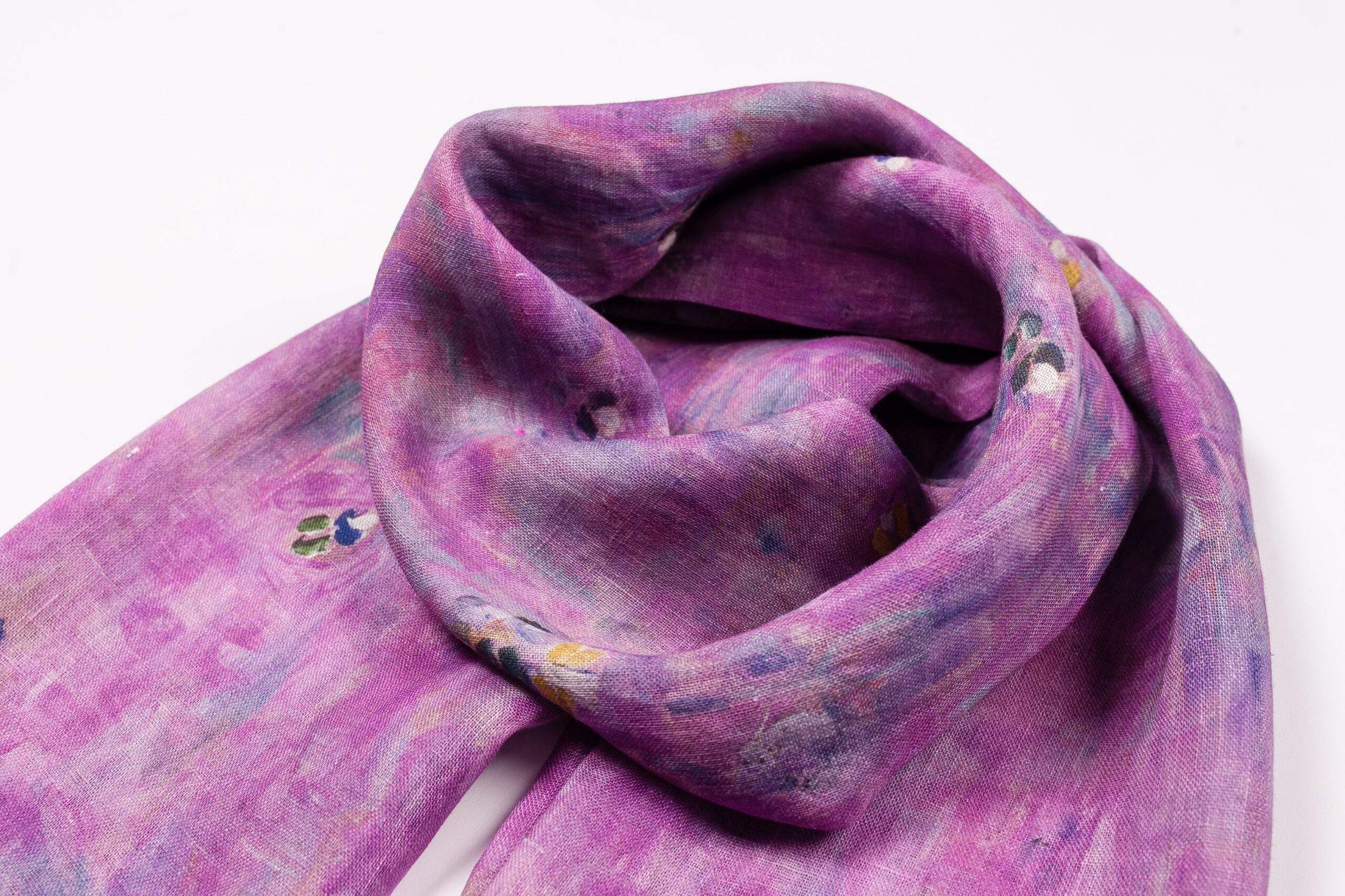 Linen scarf inspired by Gustav Klimt artwork “Mada Primavesi” motives.
