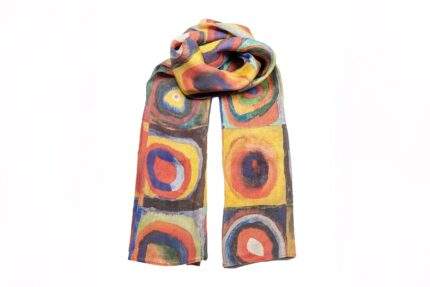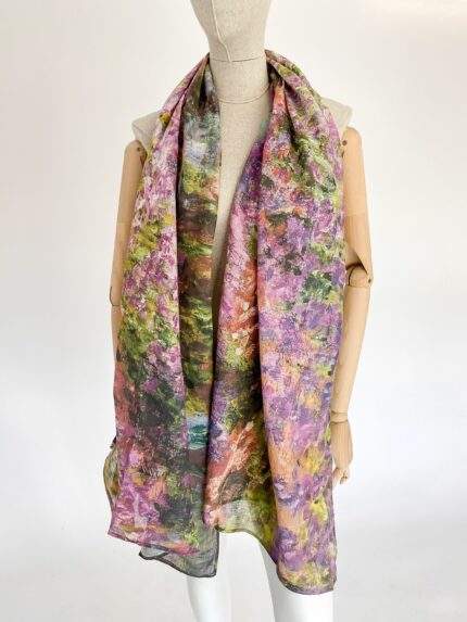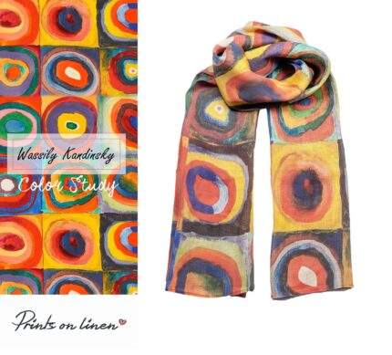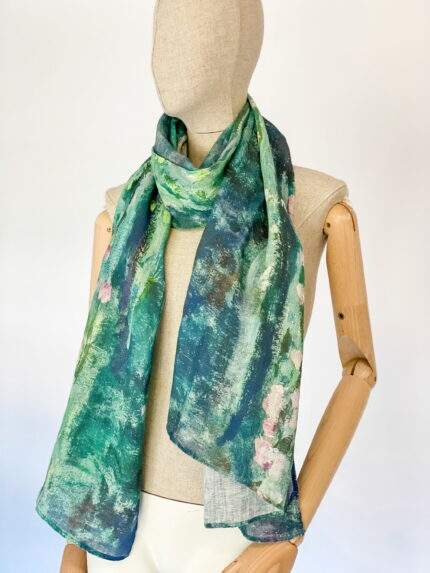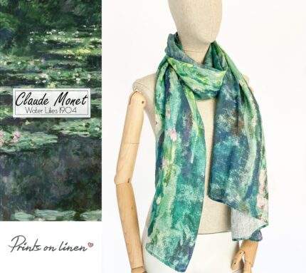 Hand made linen scarf with pastel poppies pattern printed on white natural linen (5 colours available).