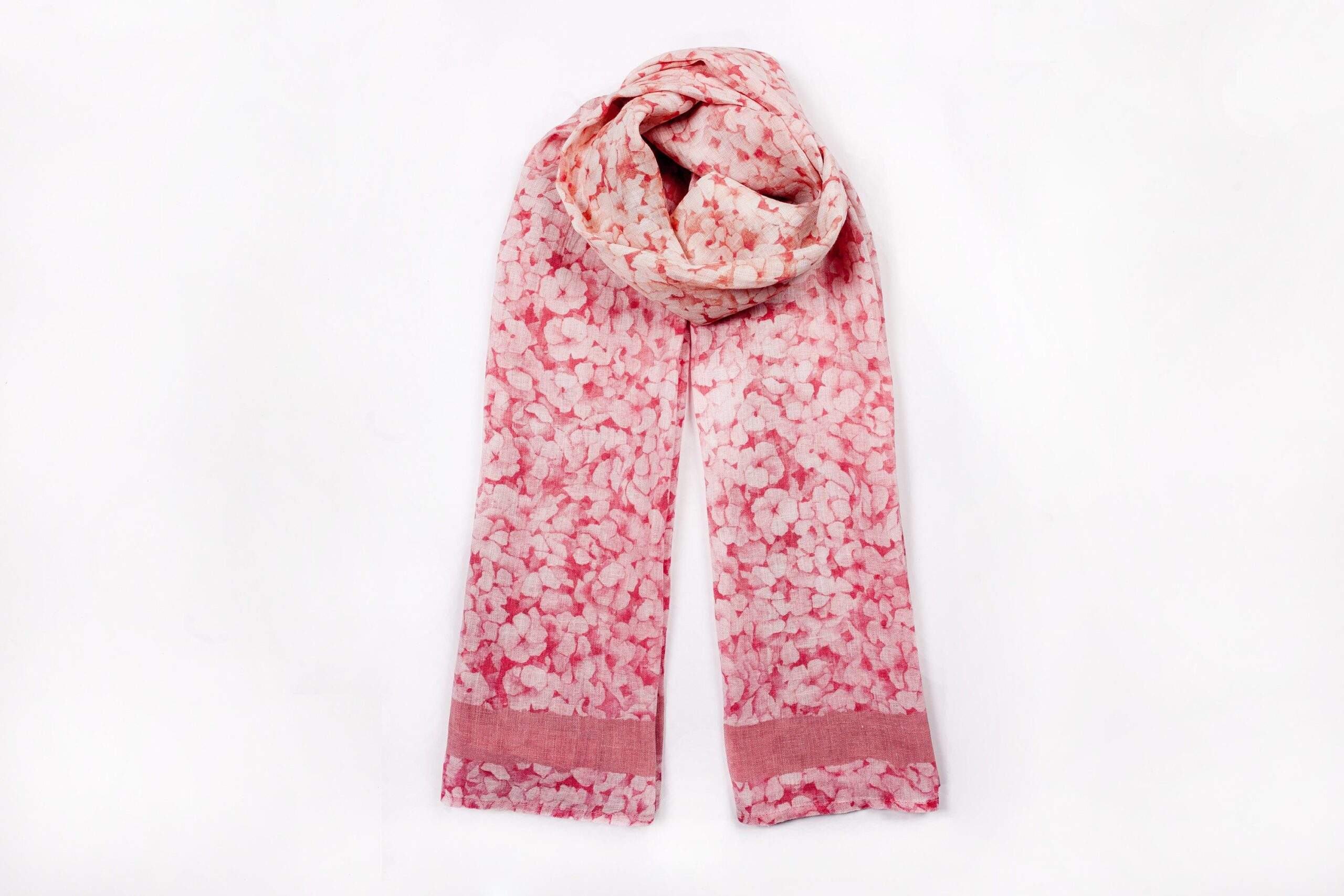 Linen scarf, Hydrangea flowers background. Washed scarf, 100% linen, printed on white natural linen. Linen scarves, holiday accessories, pink linen scarf.