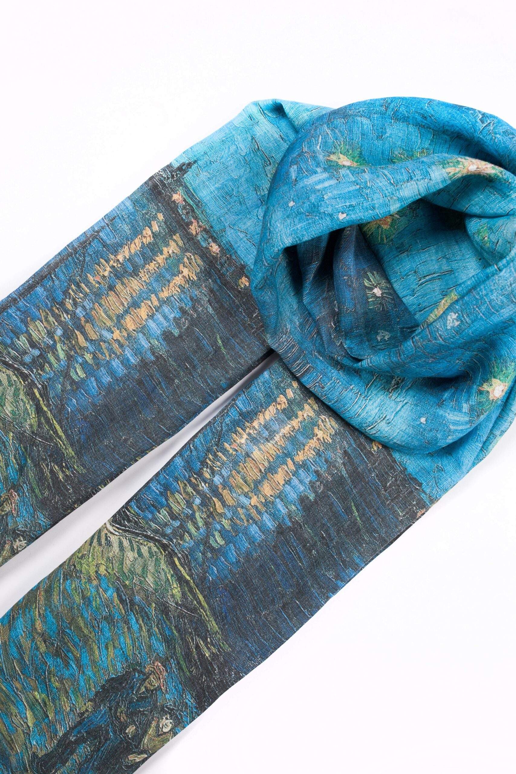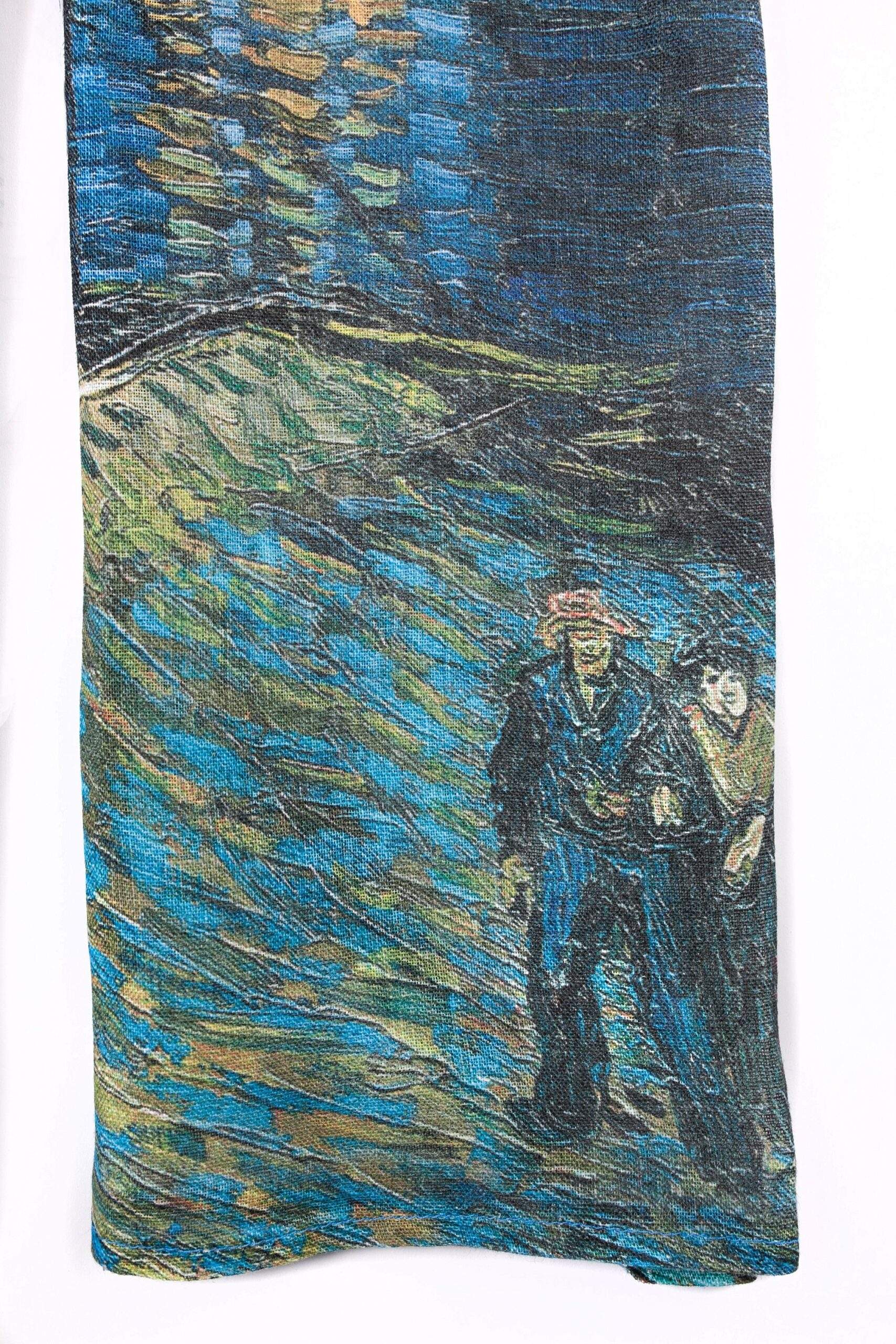 Hand made Linen scarf “Starry night” by Vincent Van Gogh, printed on white natural linen.