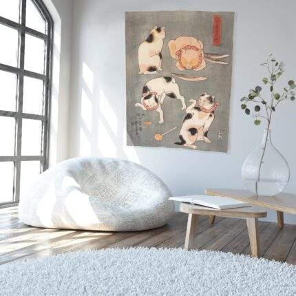 Wall tapestry, Utagawa Kuniyoshi, Cats in poses, fabric tapestry, 100% linen, Japan art print, PR0767