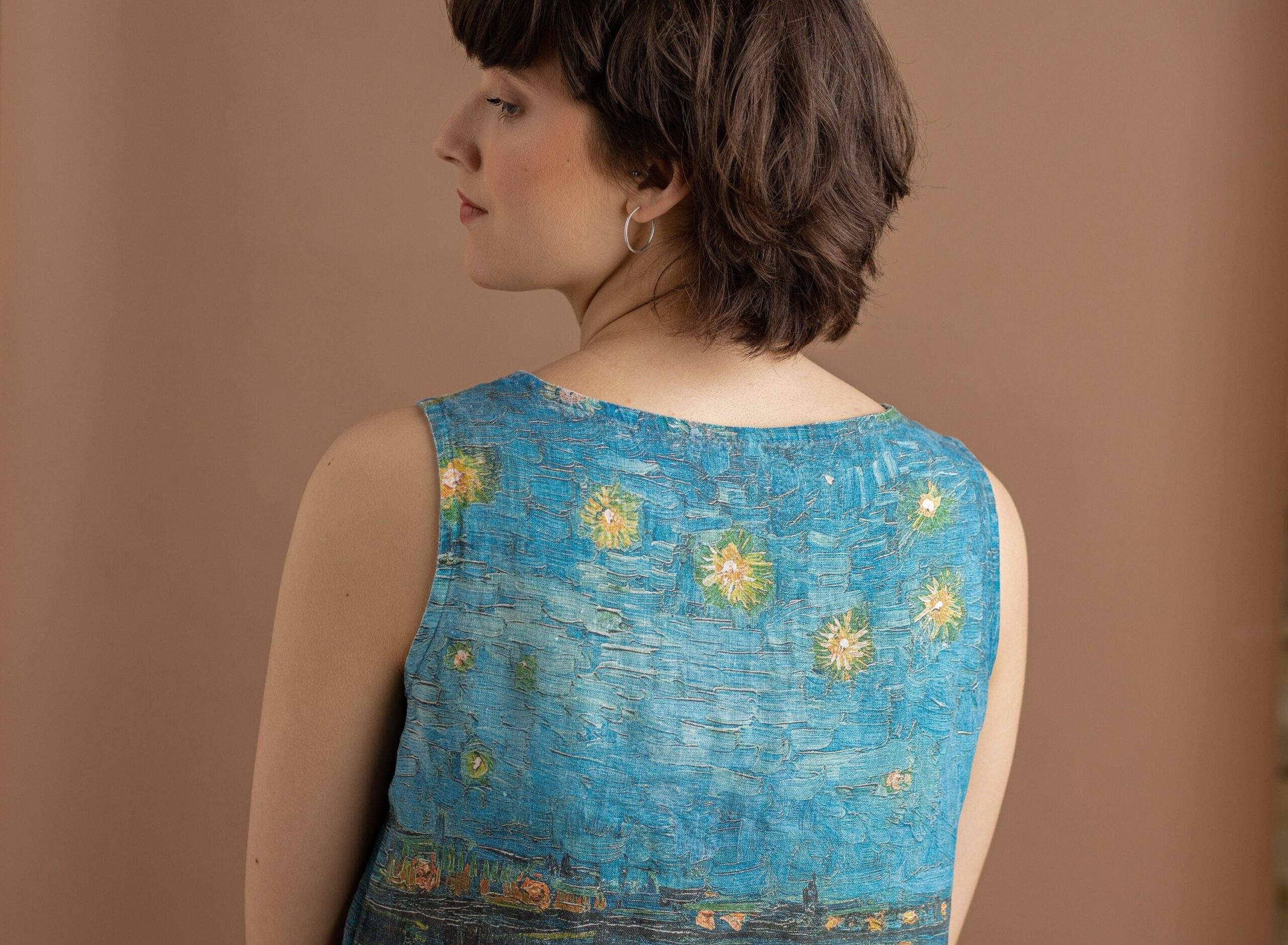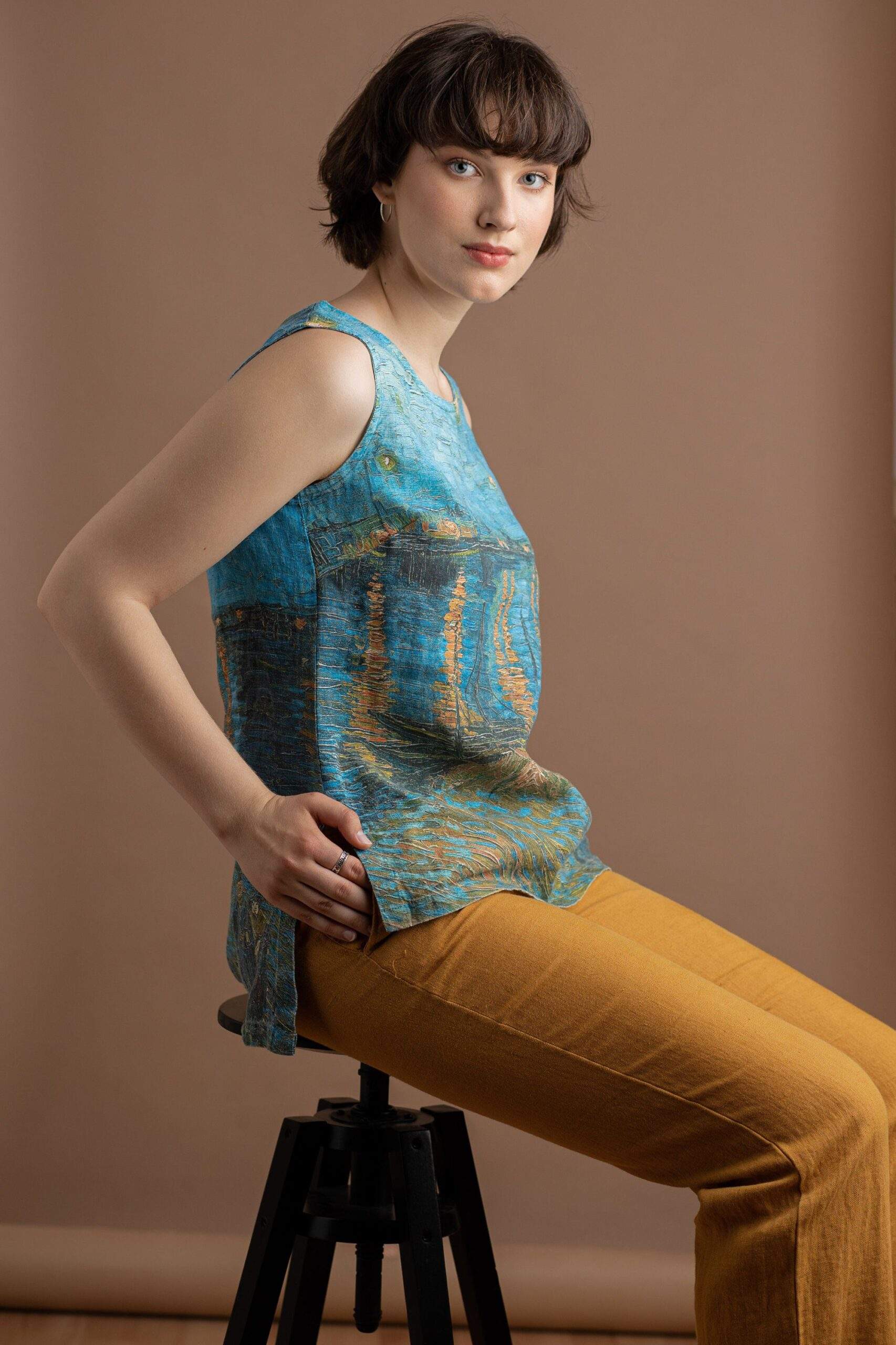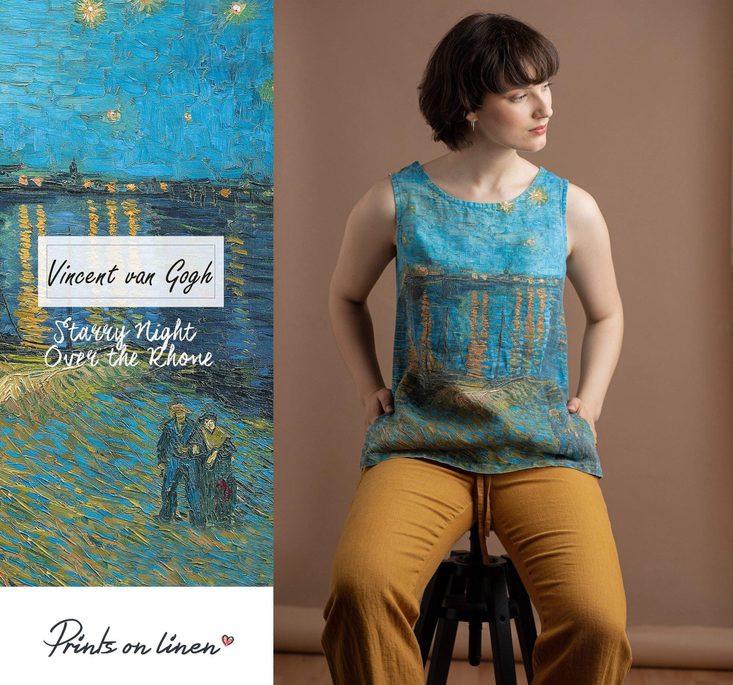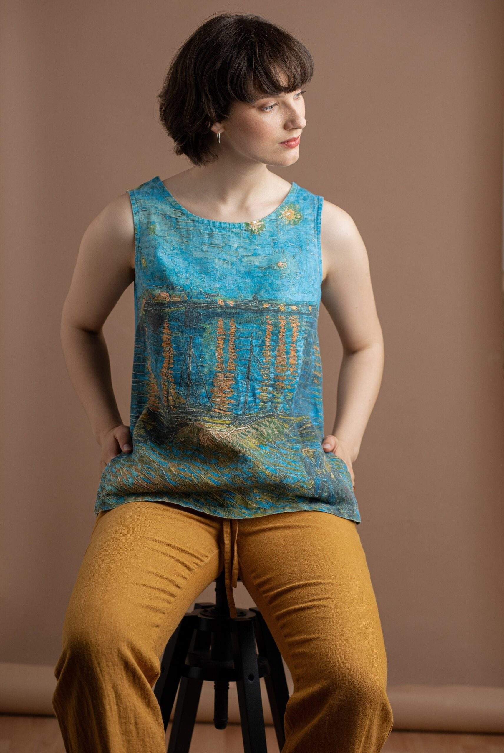 Starry Night Over the Rhône, Vincent van Gogh, Sleeveless linen women shirt, Linen shirt, linen top, PR0387