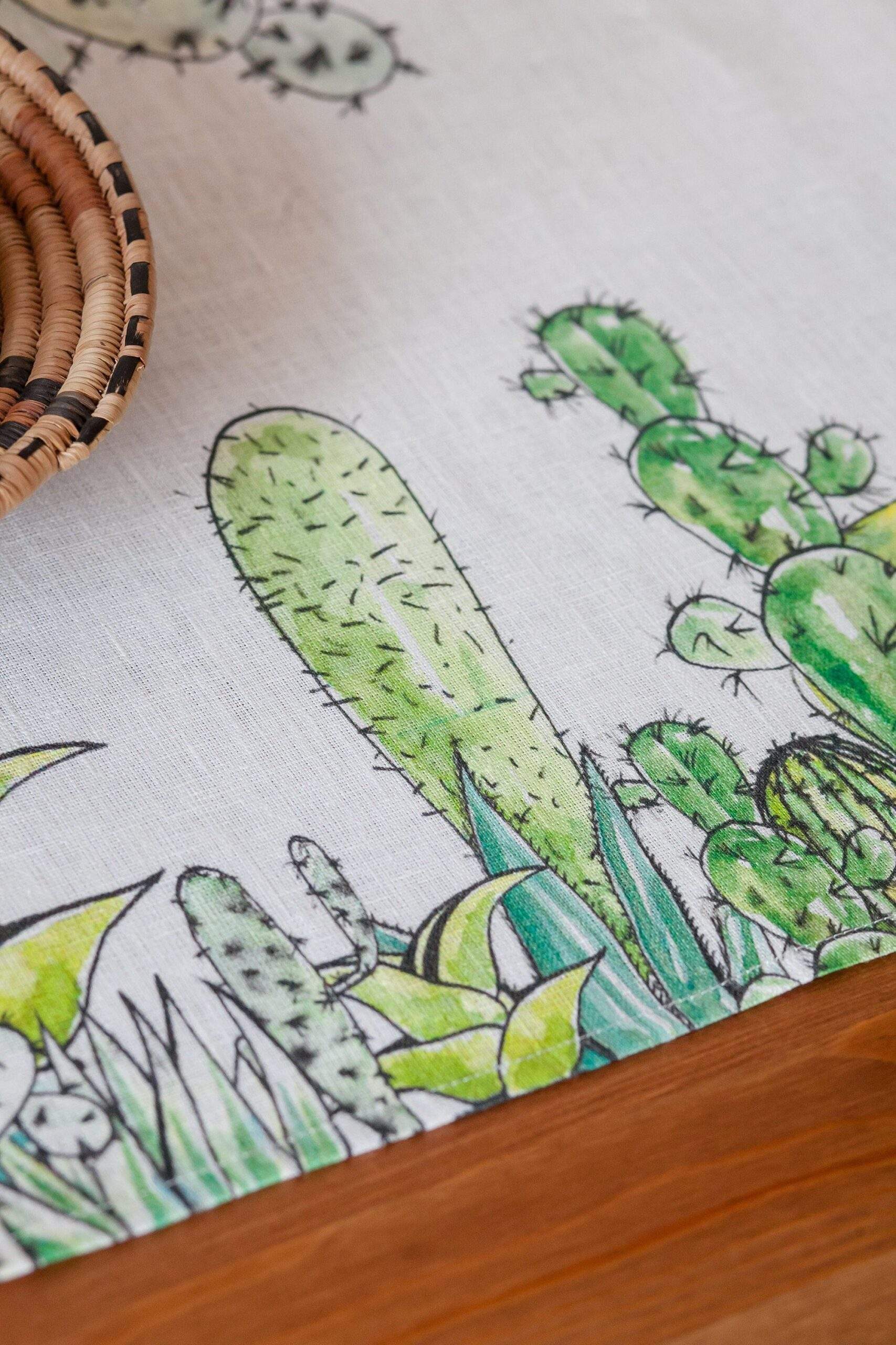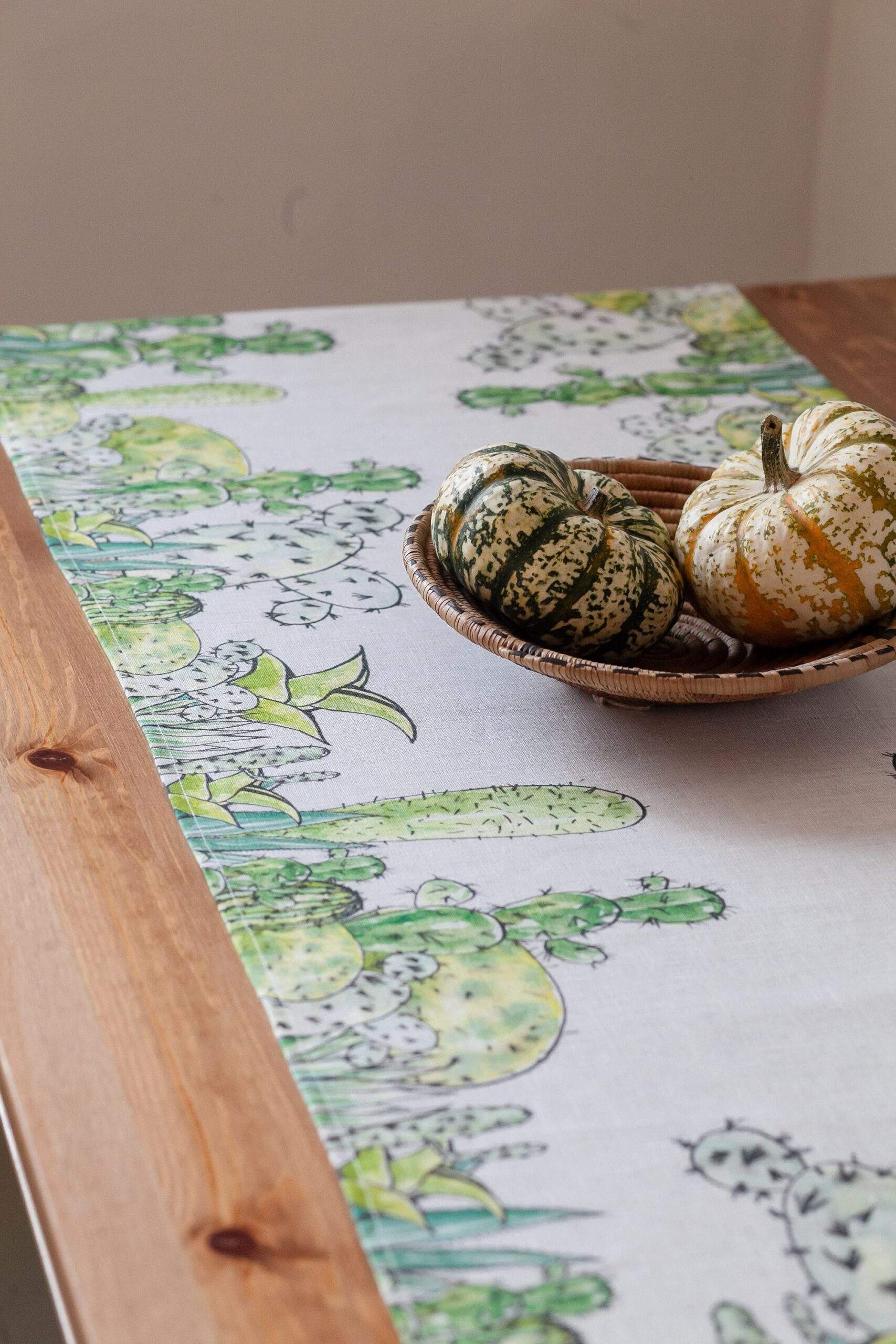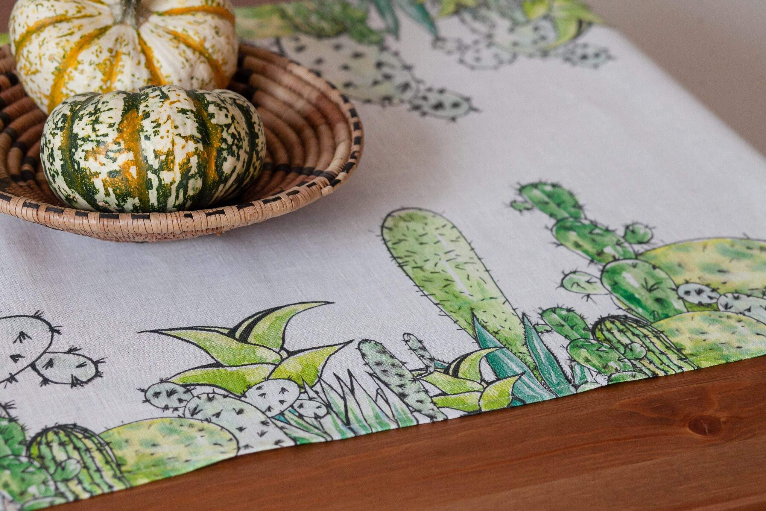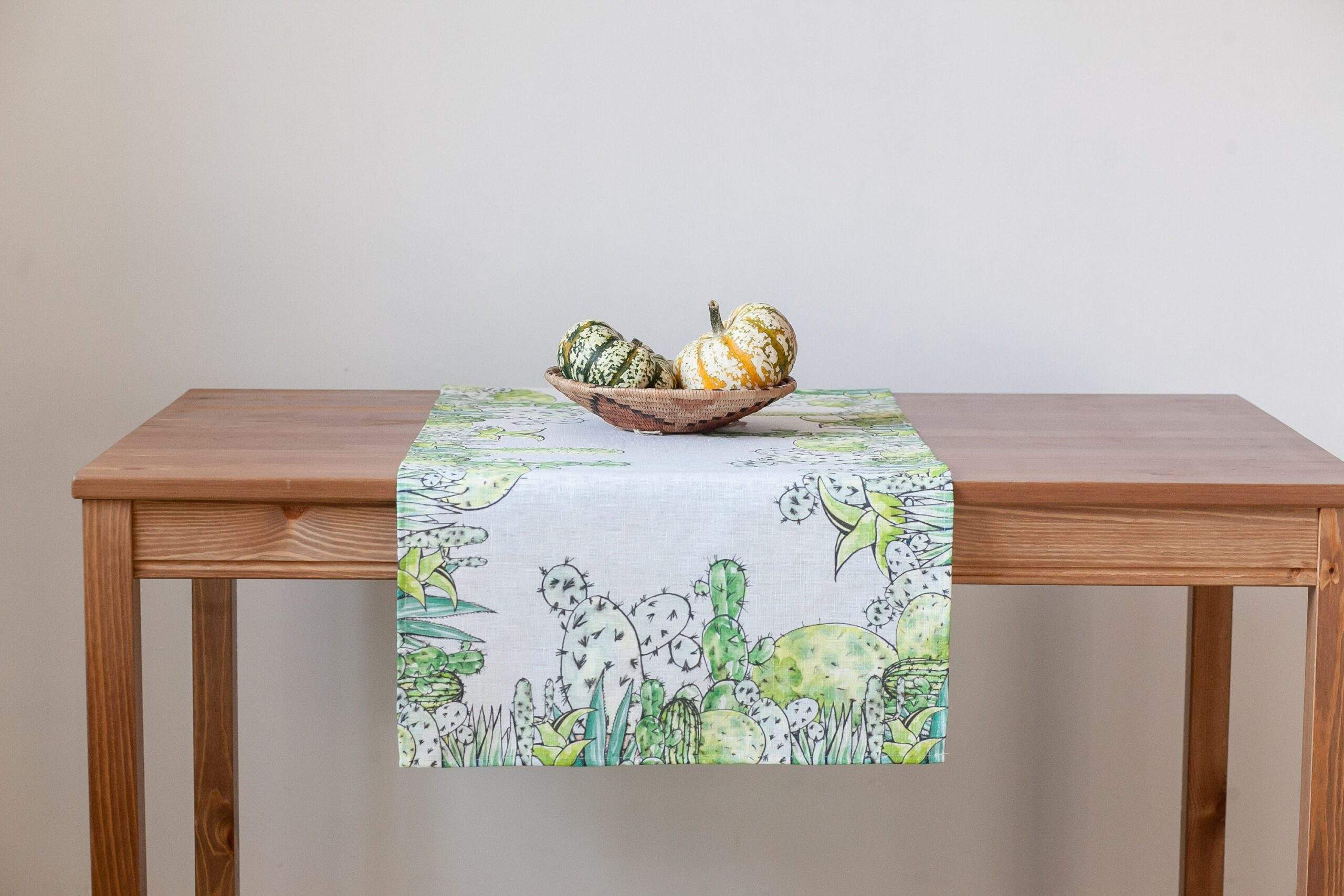 Table runner, Cactus print, printed table runner, linen table runner, hand made table runner, PR0537