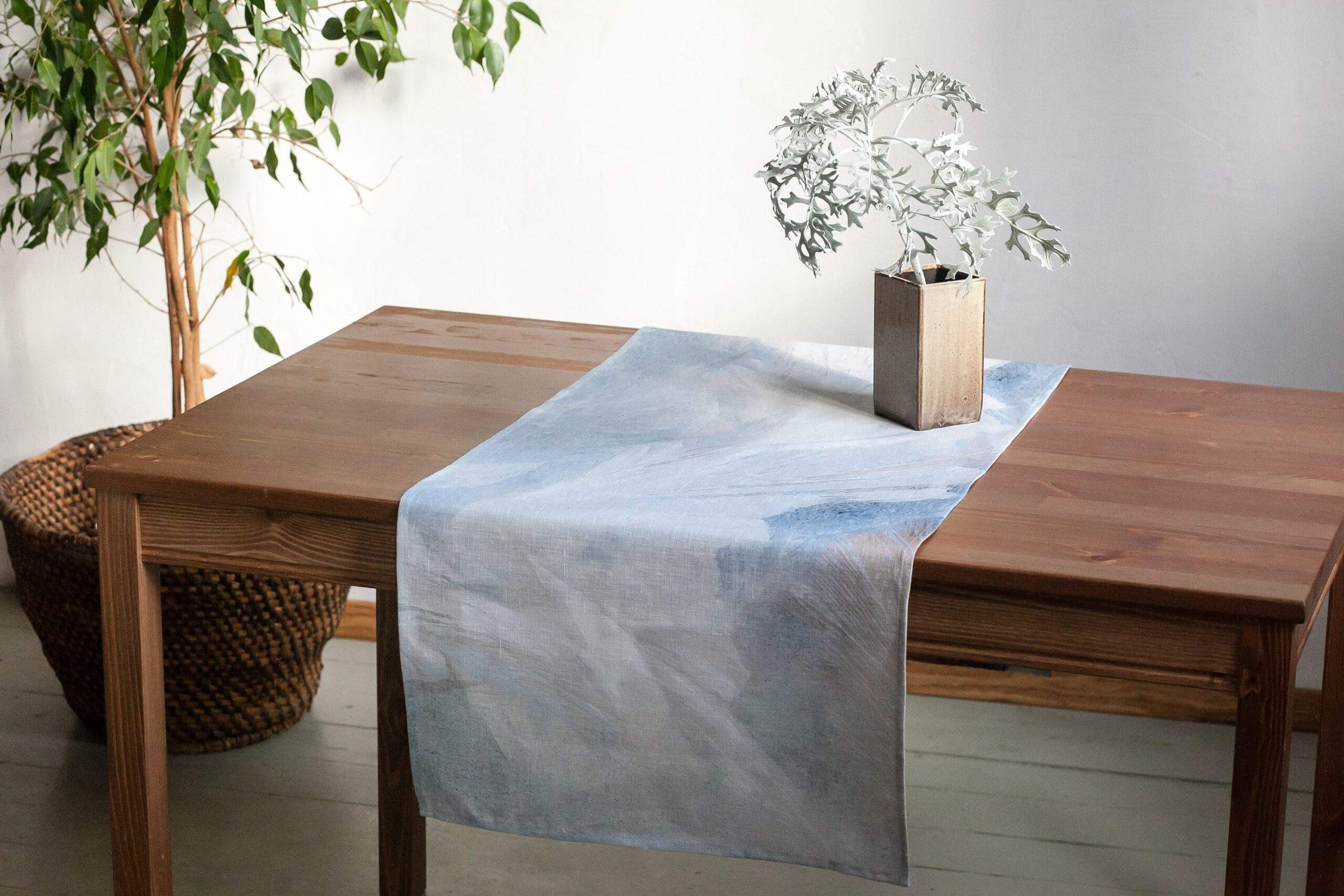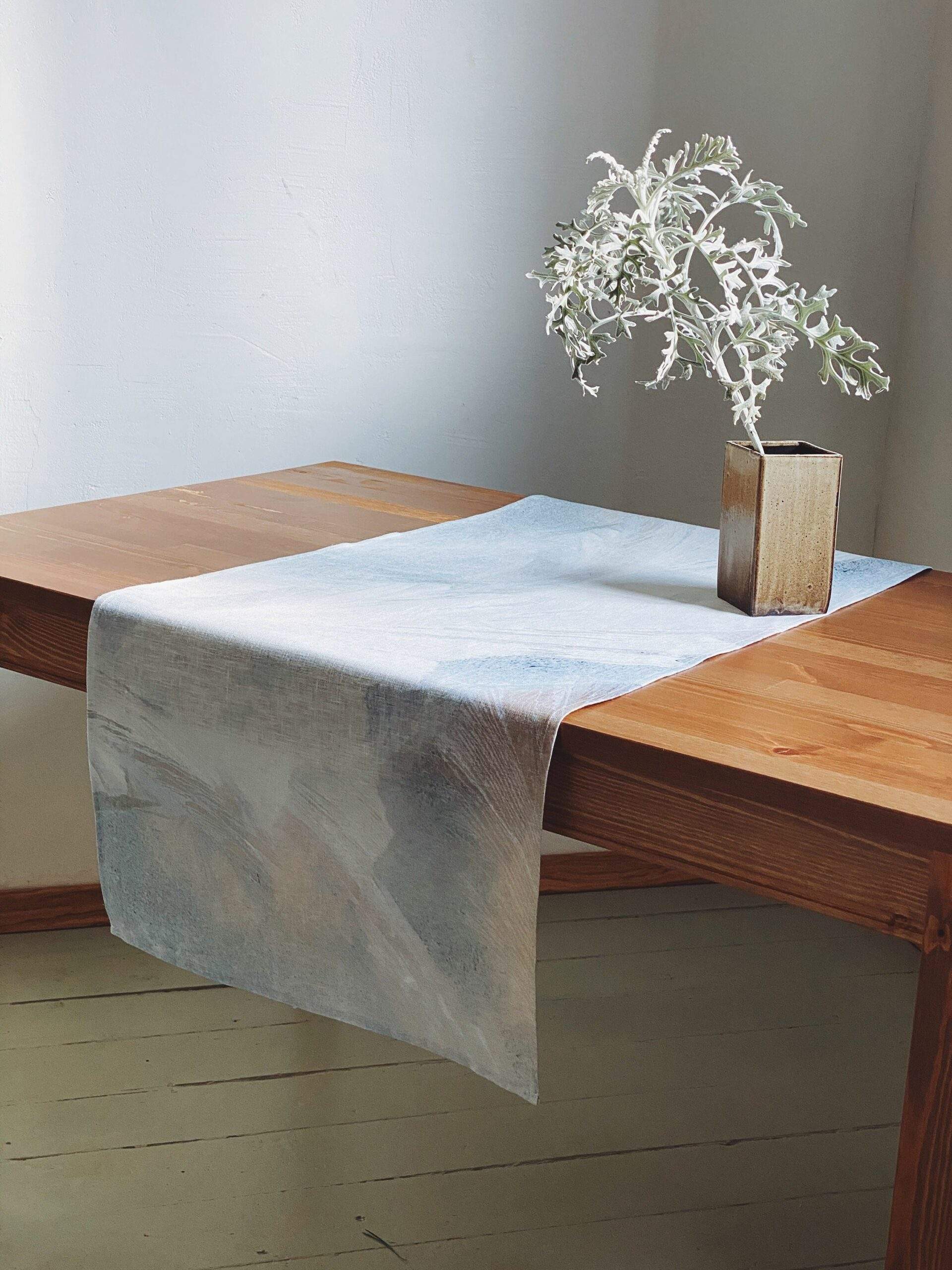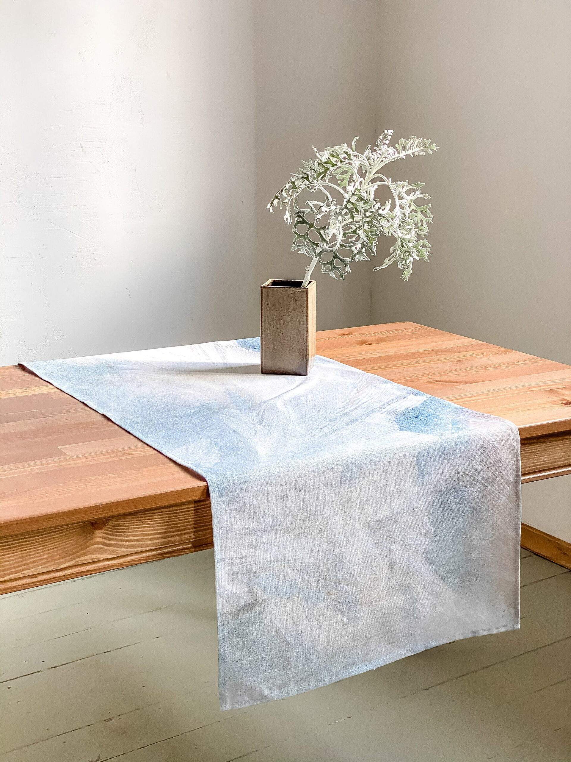 Table runner, linen table runner “Morning Frost” collection. This table runner can be order with same pattern linen table napkins, placemats