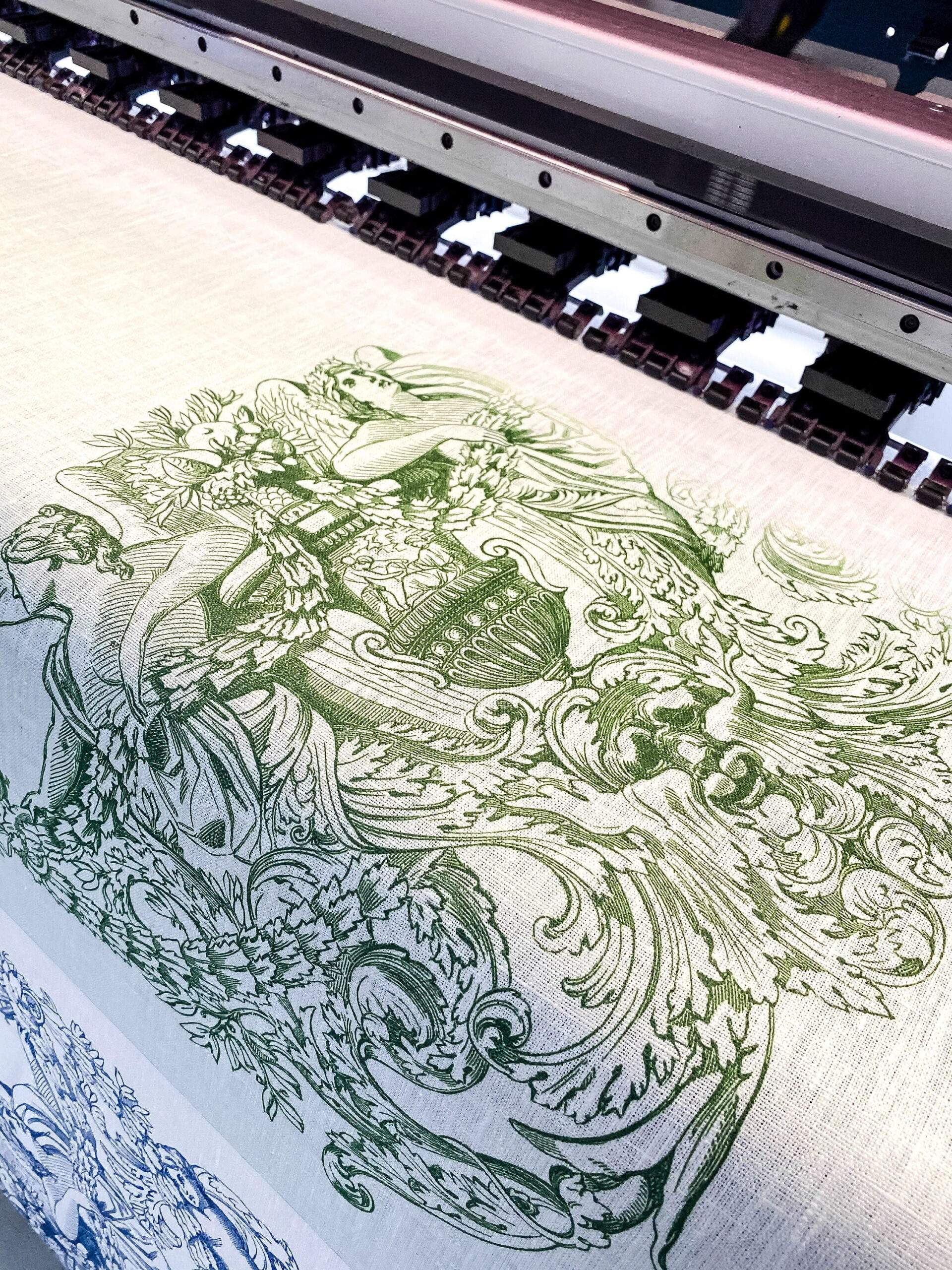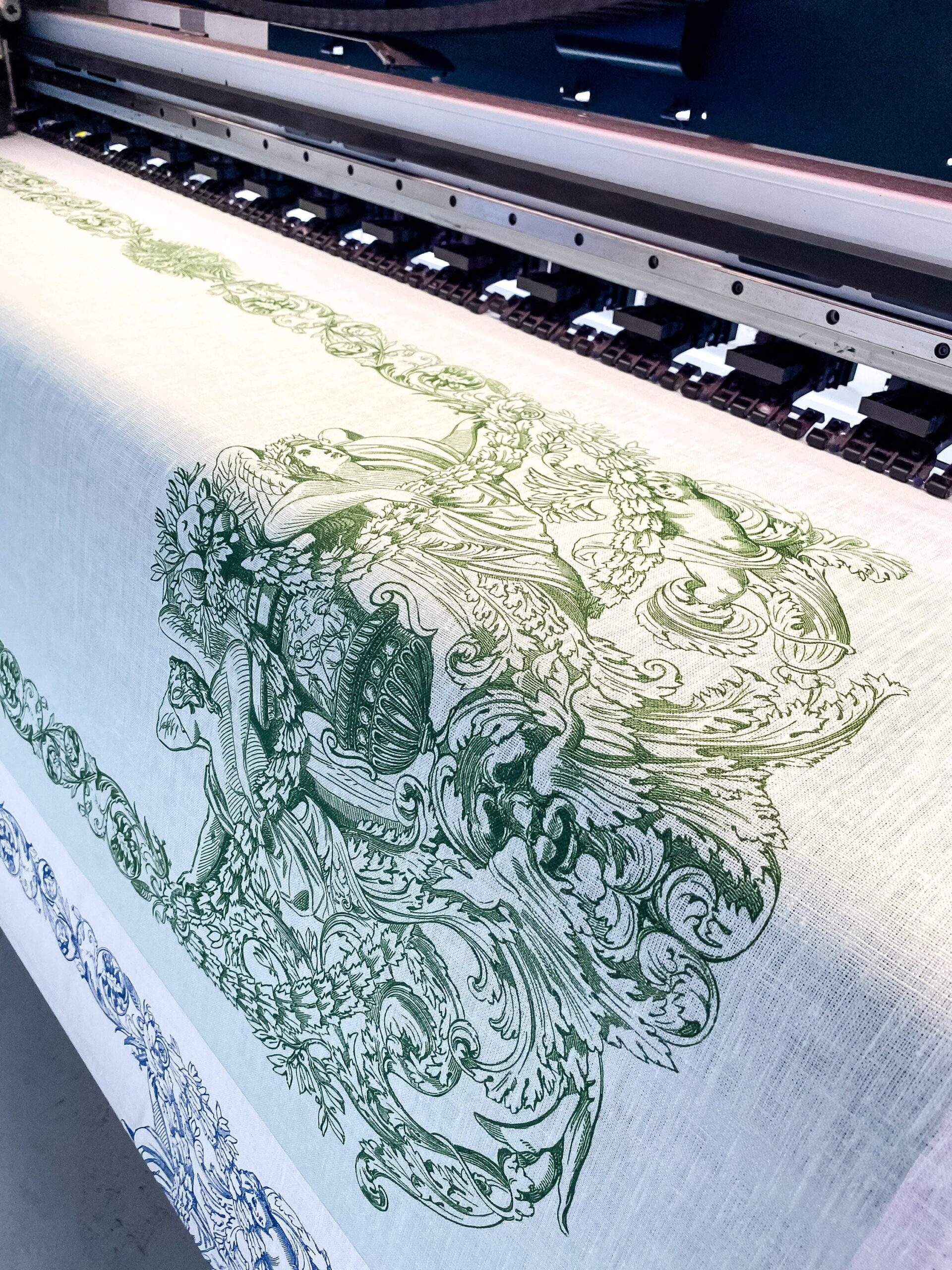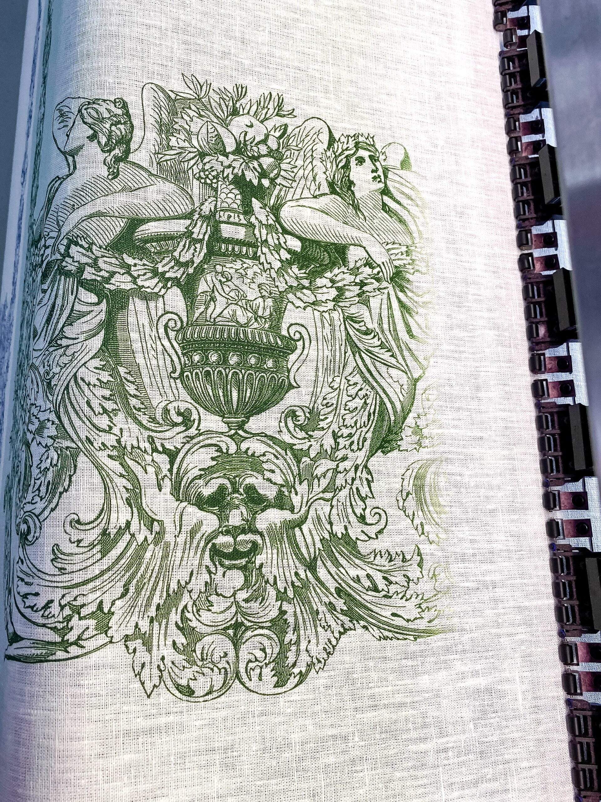 Linen table runner from Toile de Jouy collection. Pattern is made of Owen Jones famous 19th Century Grammar of Ornament.