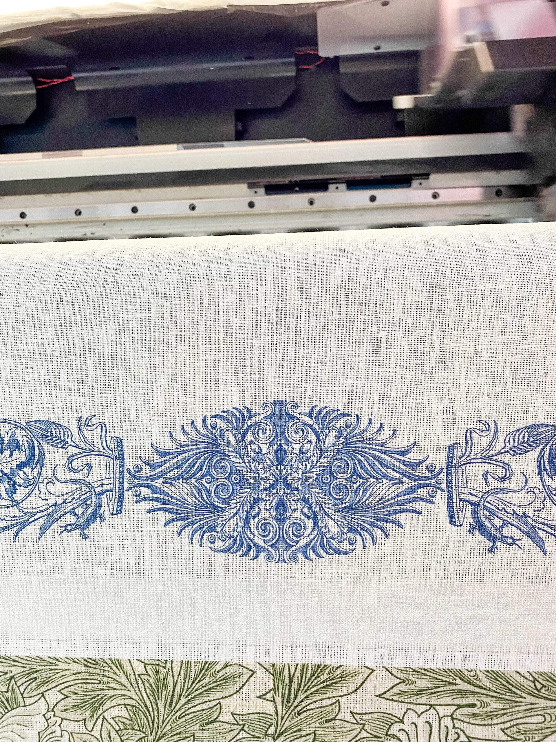 Table runner from Toile de Jouy collection. Pattern is made of Owen Jones famous 19th Century Grammar of Ornament. This table runner can be order with matching pattern linen placemats.