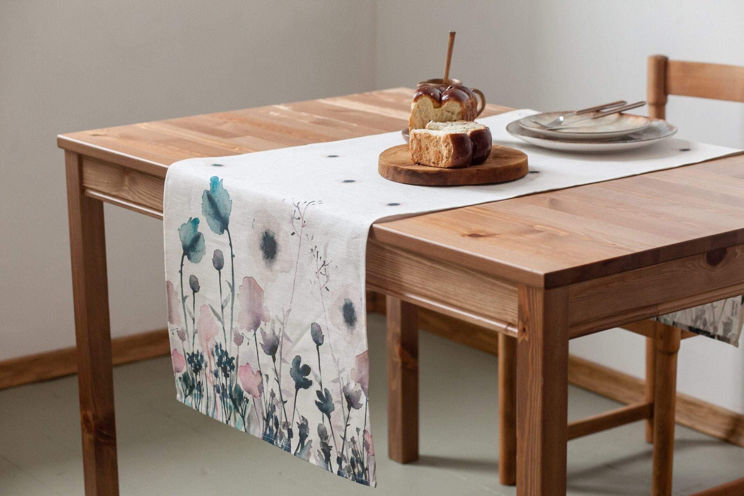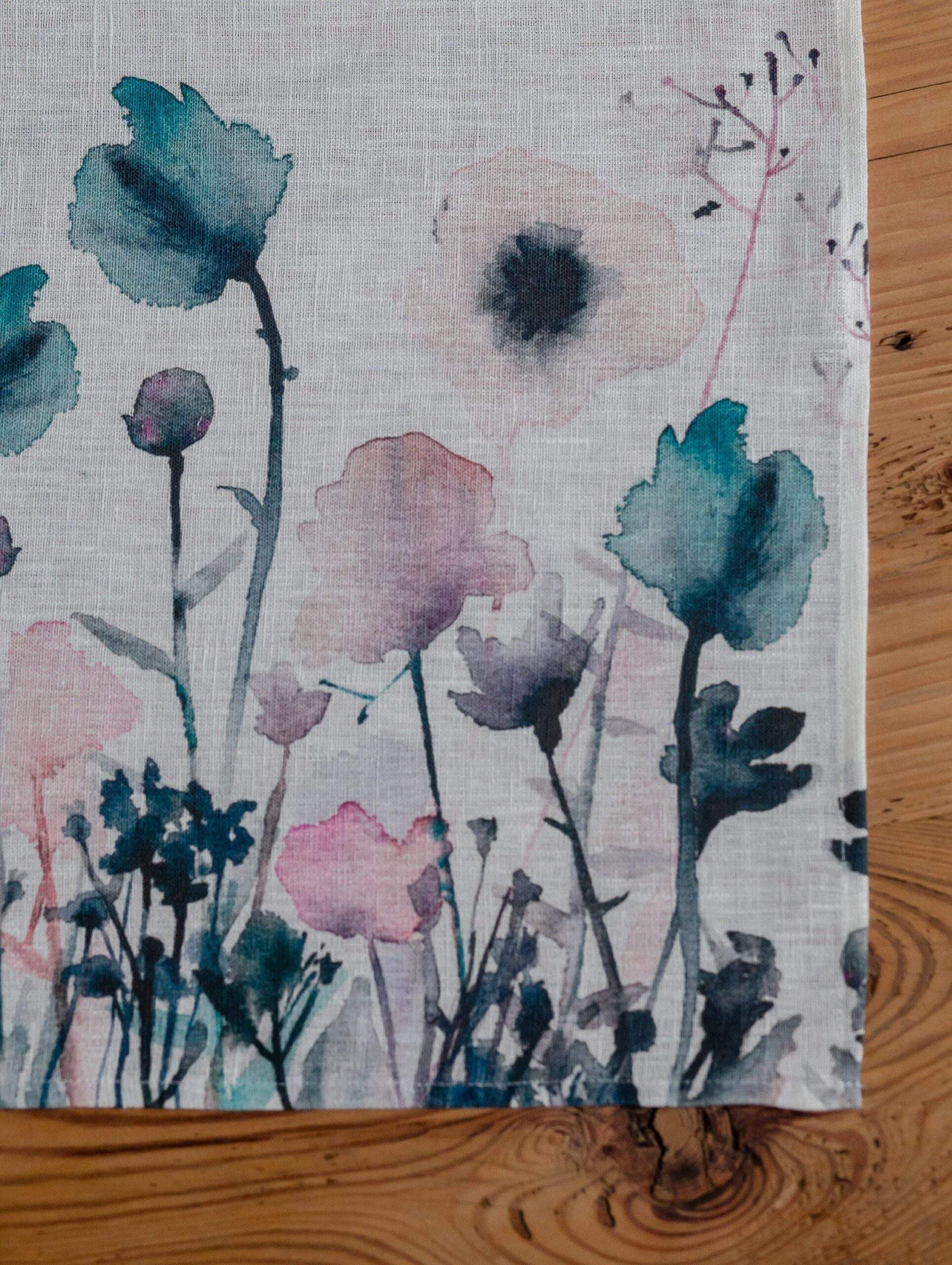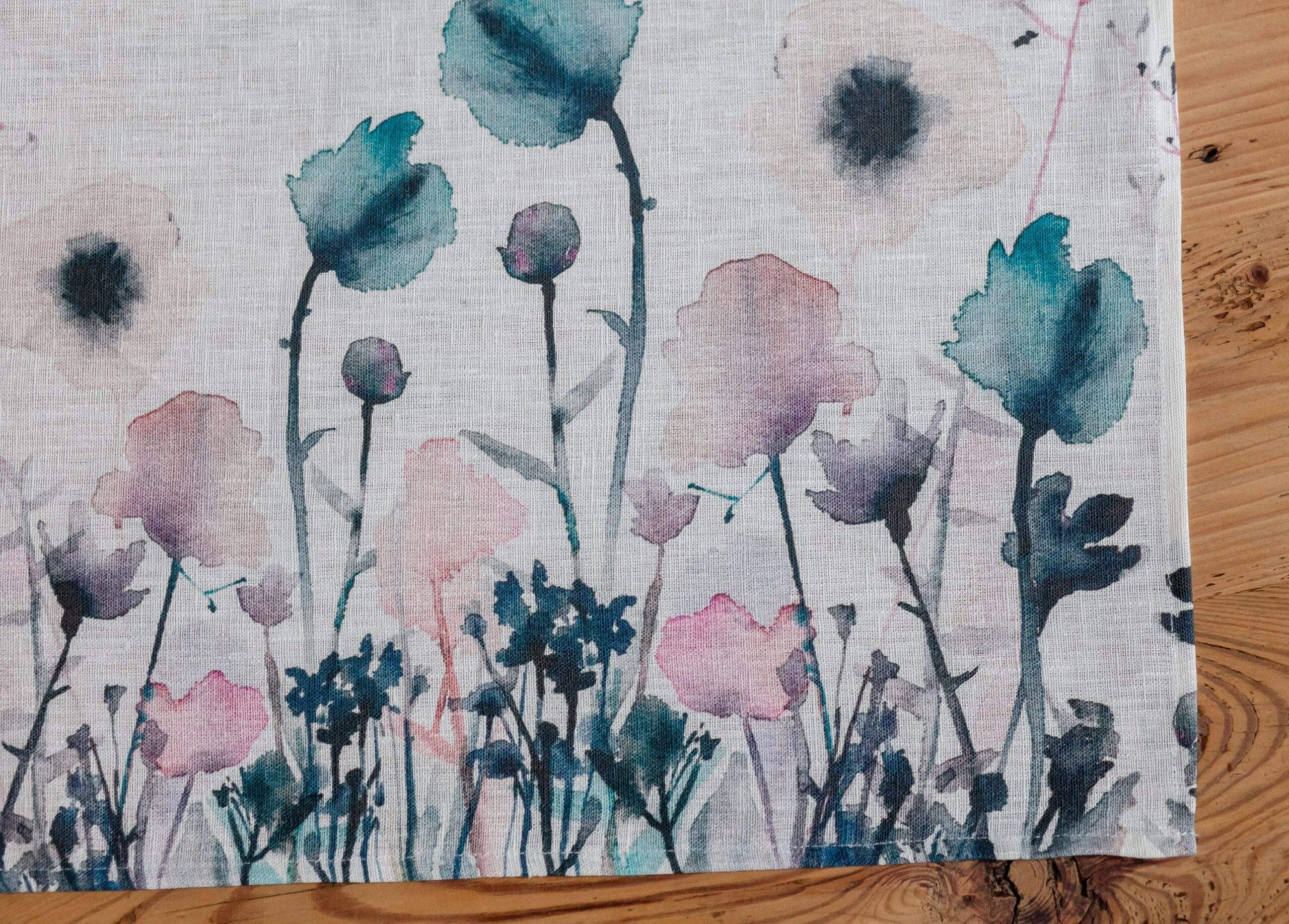 Linen table runner “Pastel Poppies”