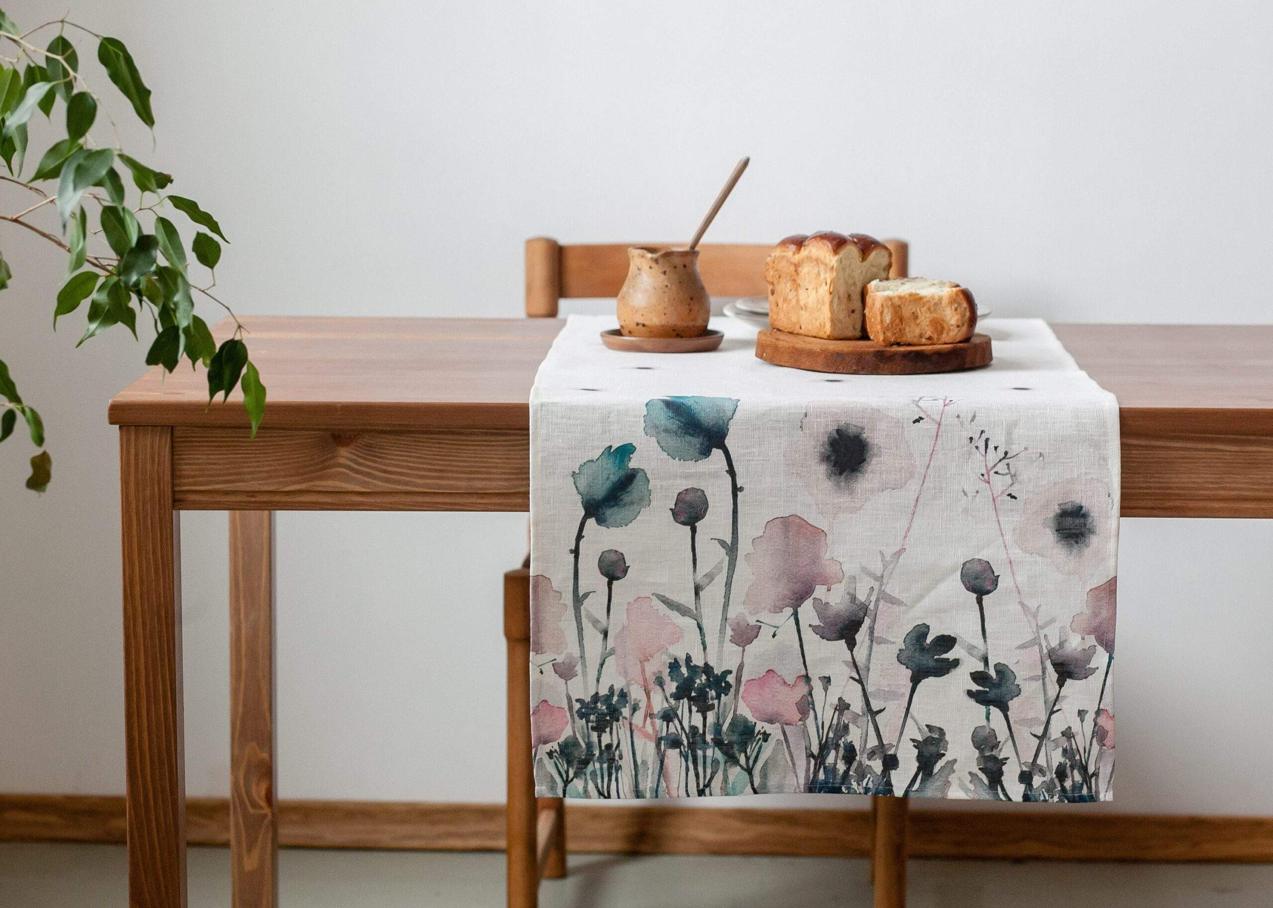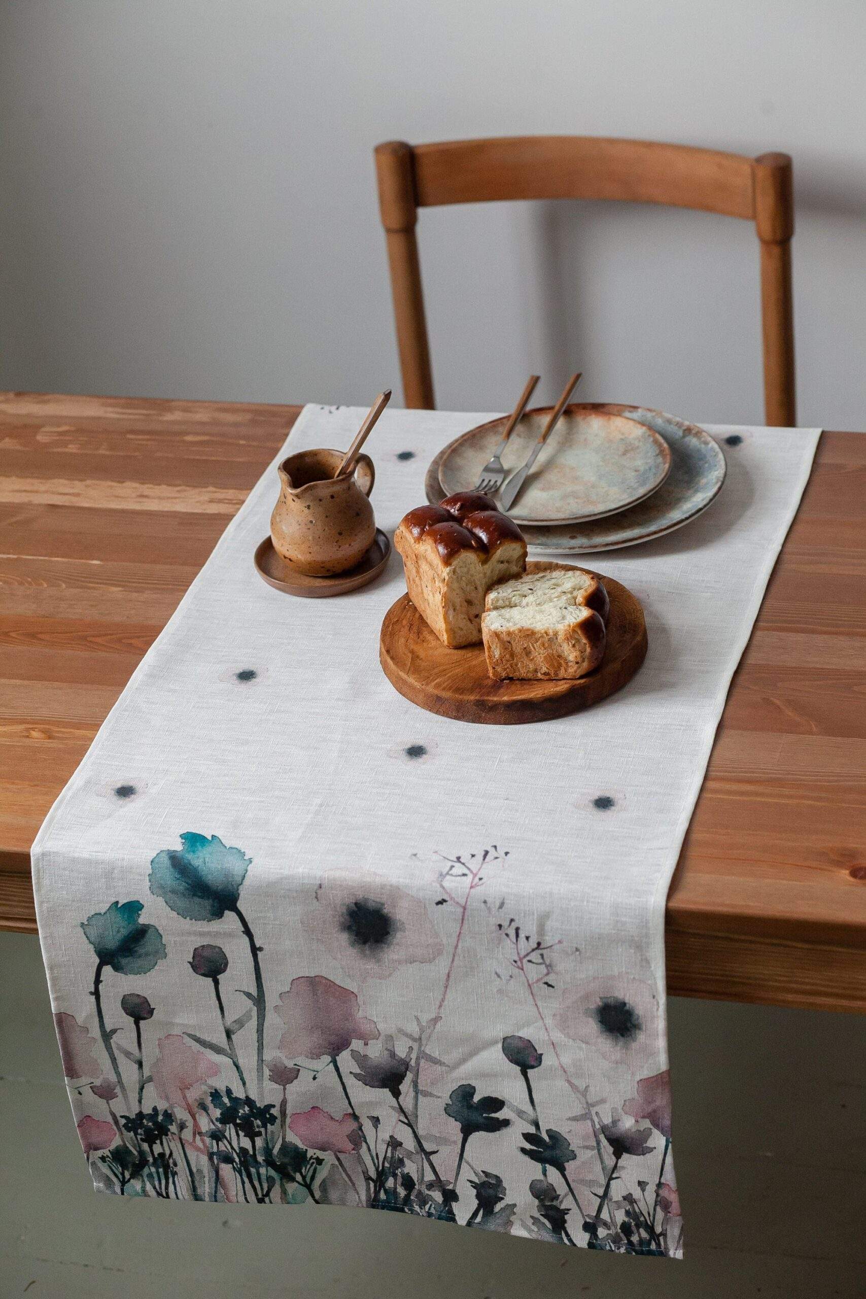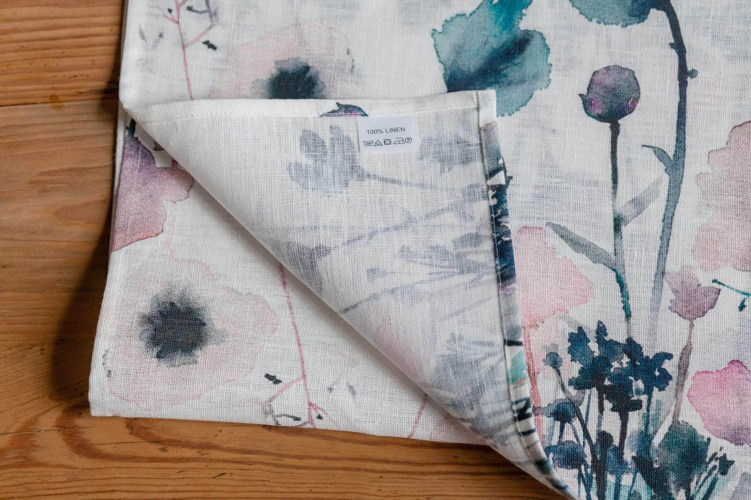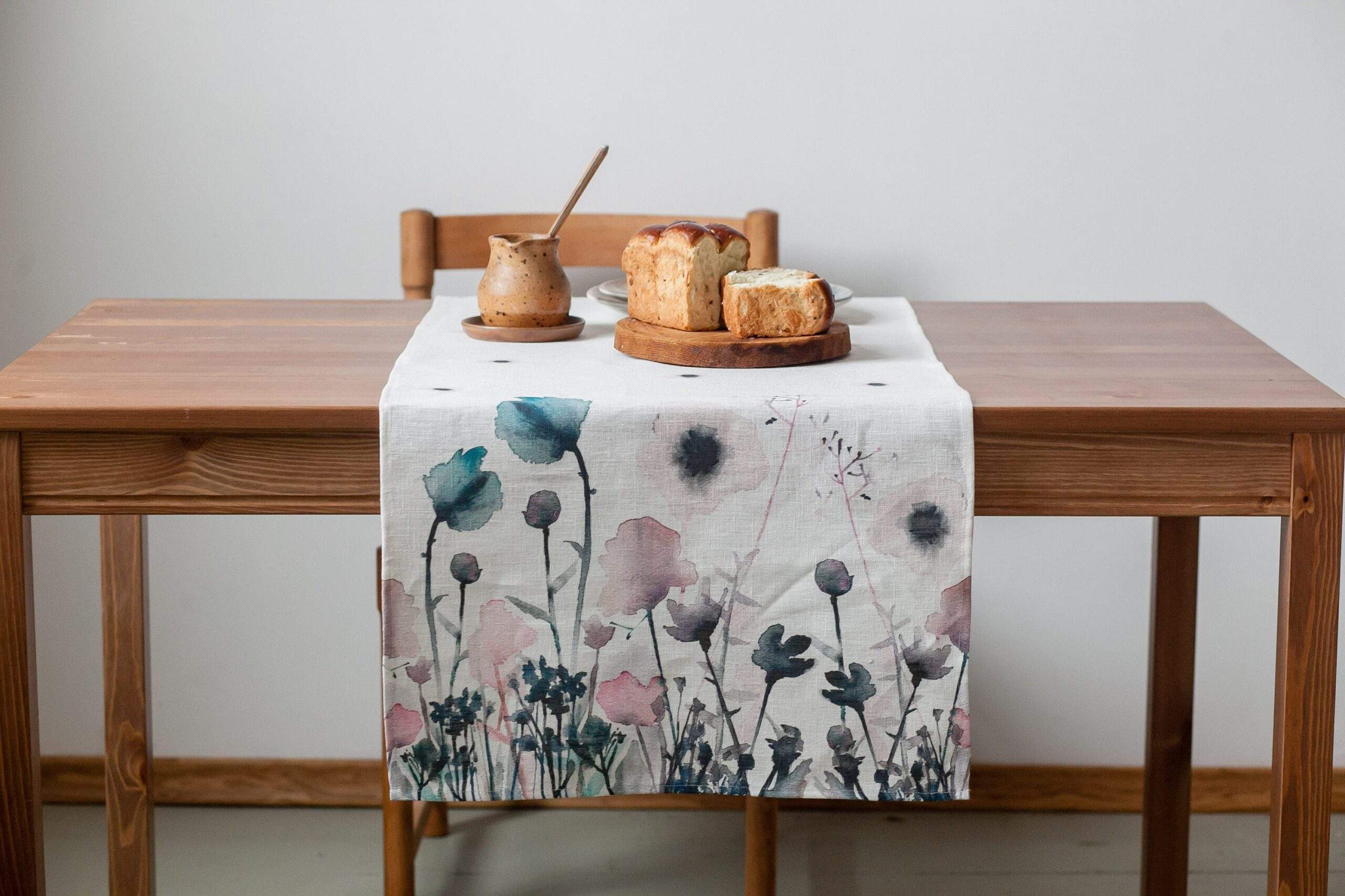 Linen table runner “Pastel Poppies”