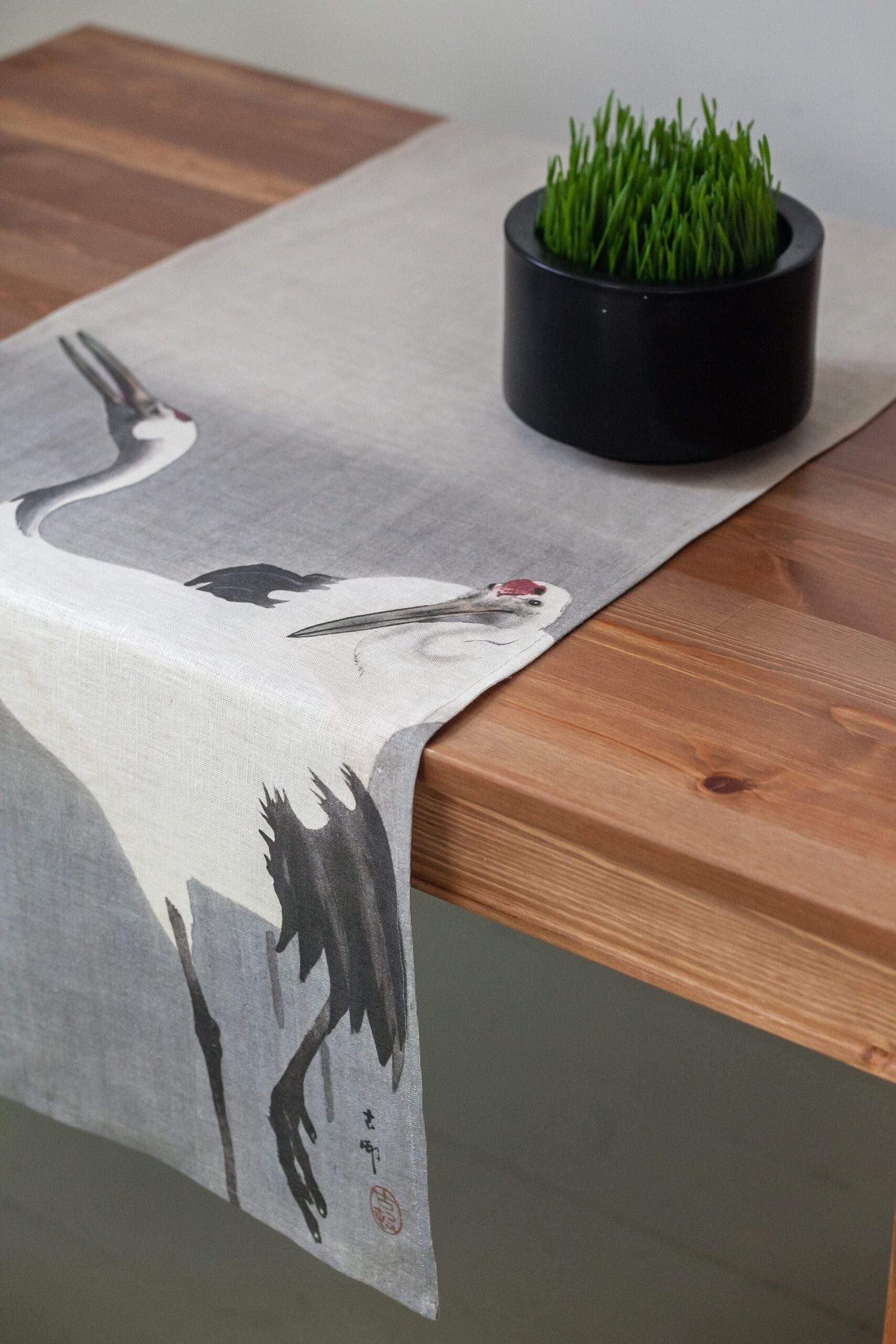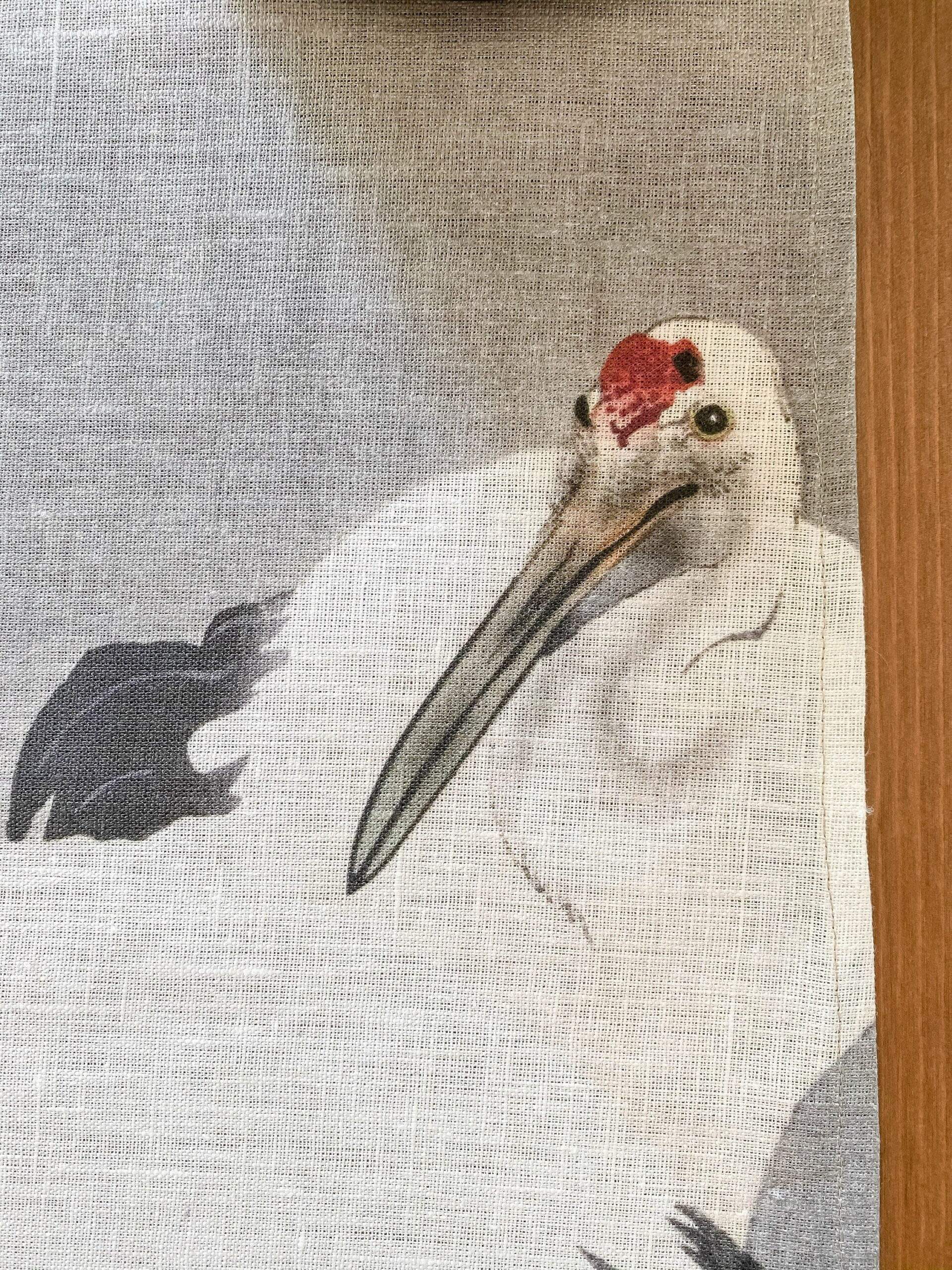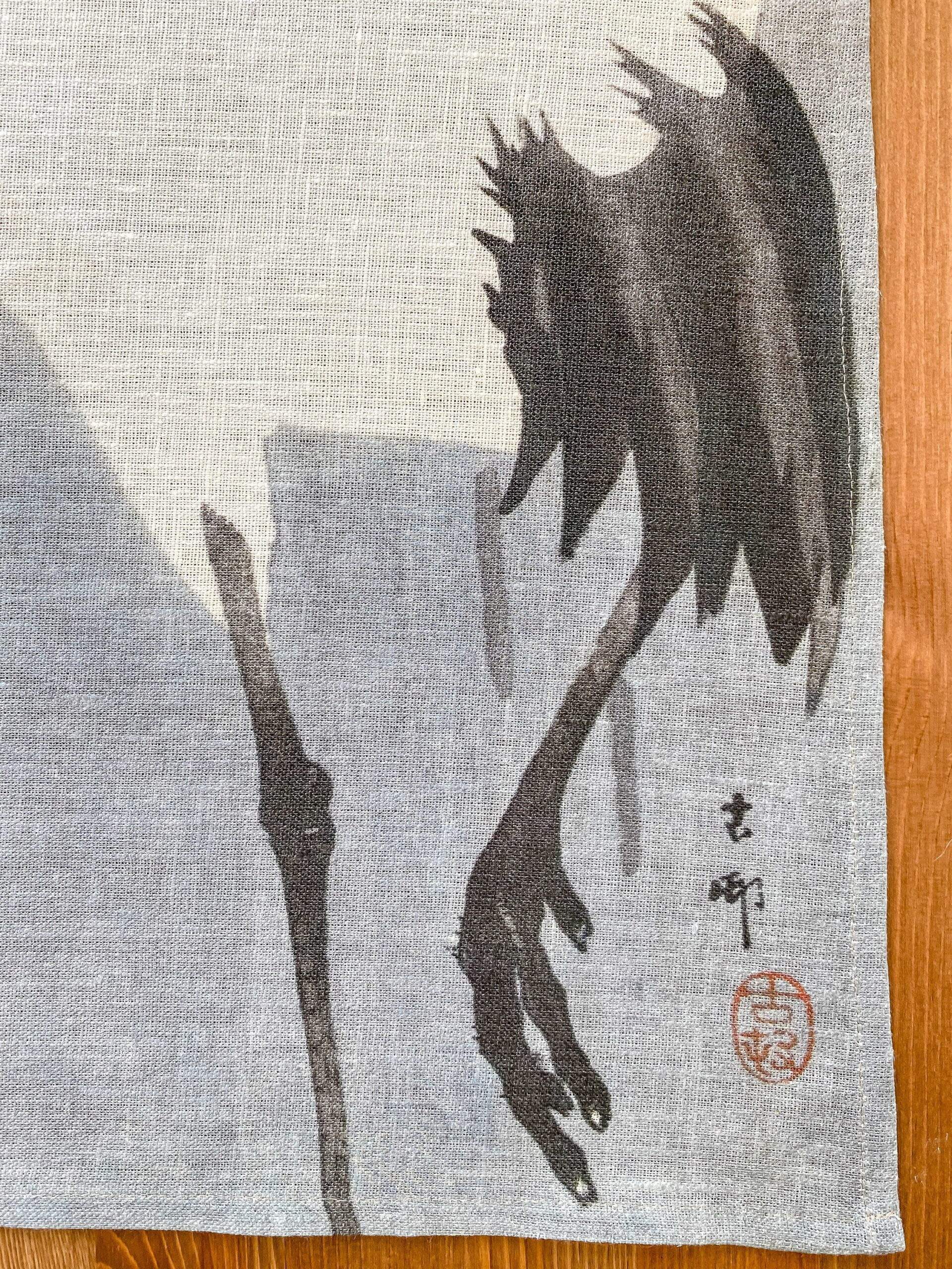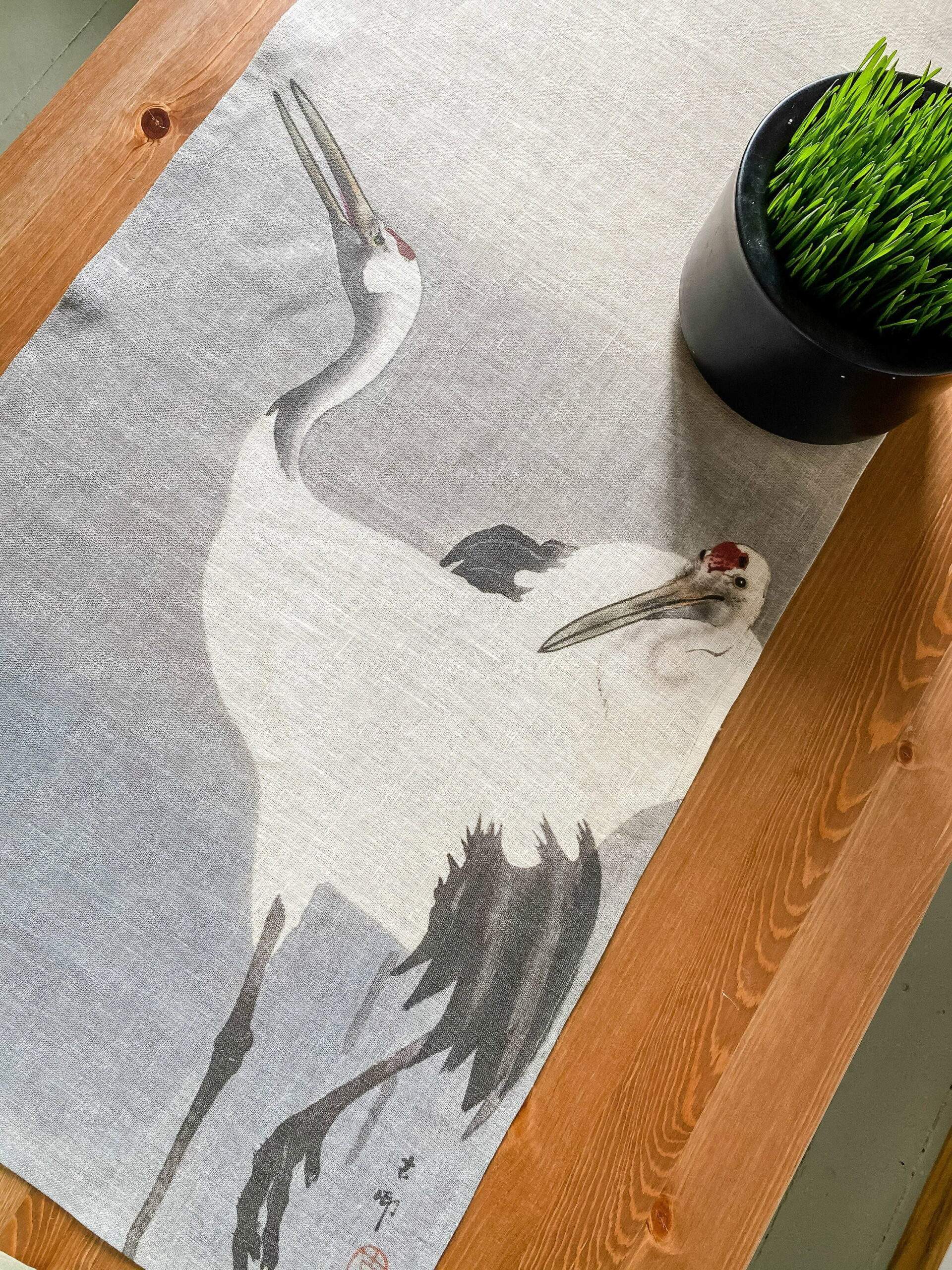 Linen table runner “Twee kraanvogels” by Ohara Koson.