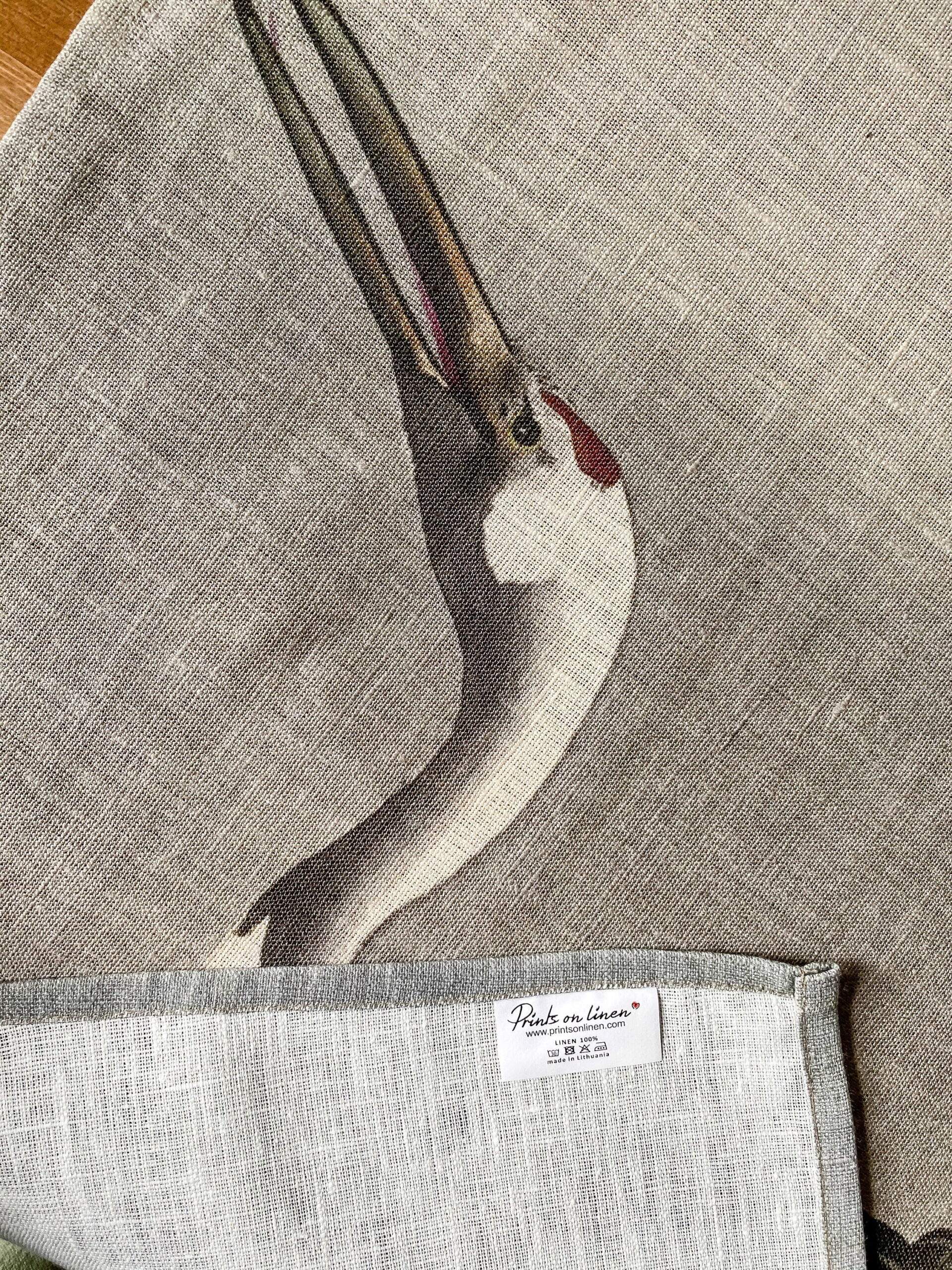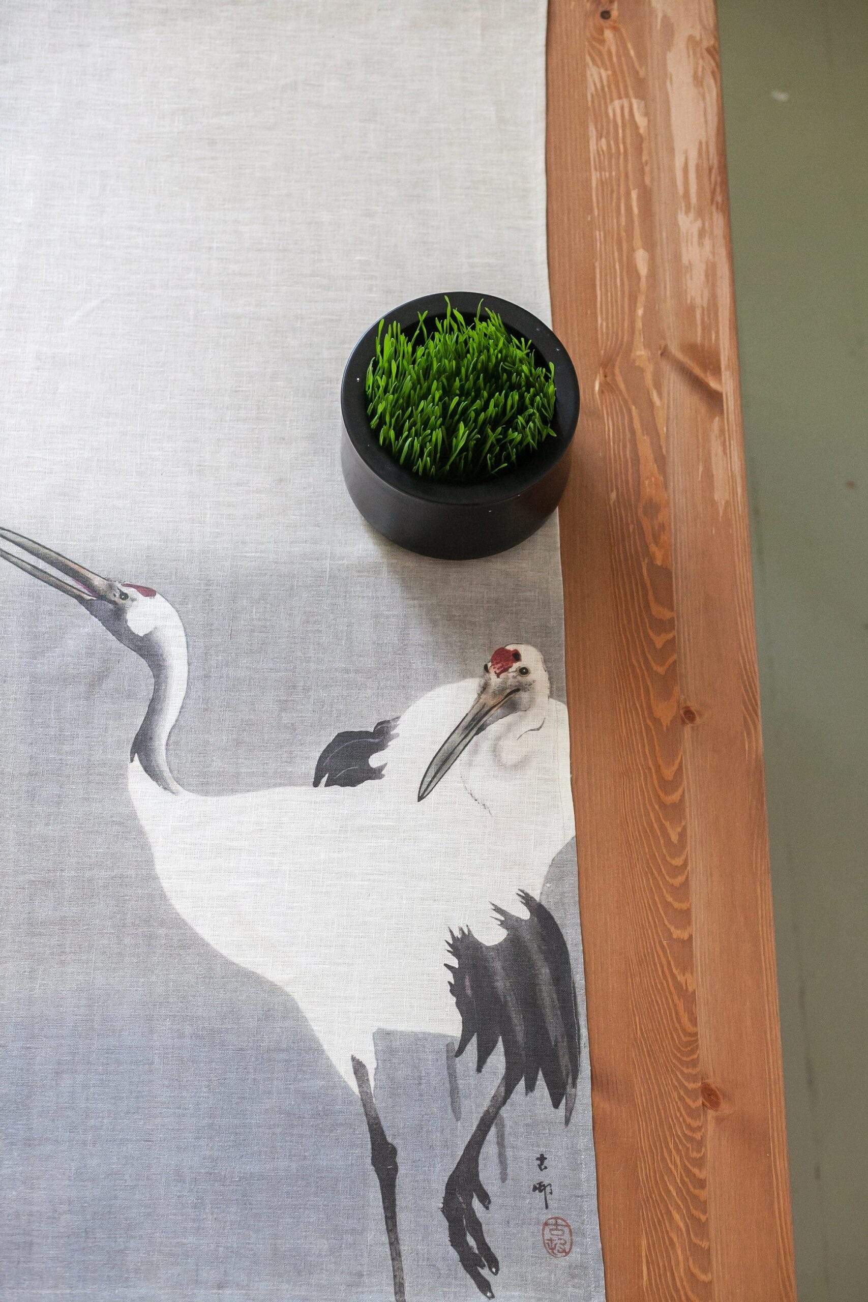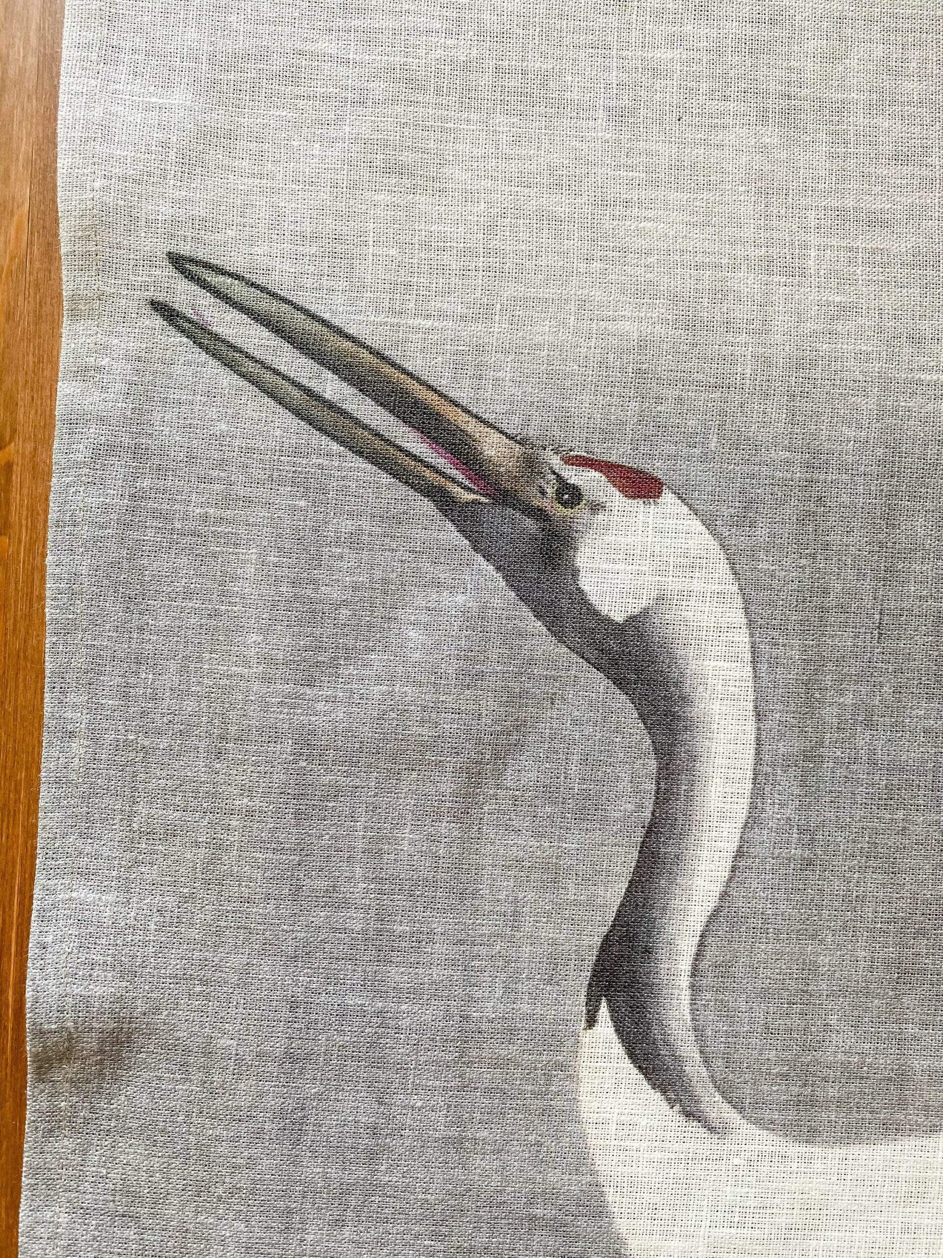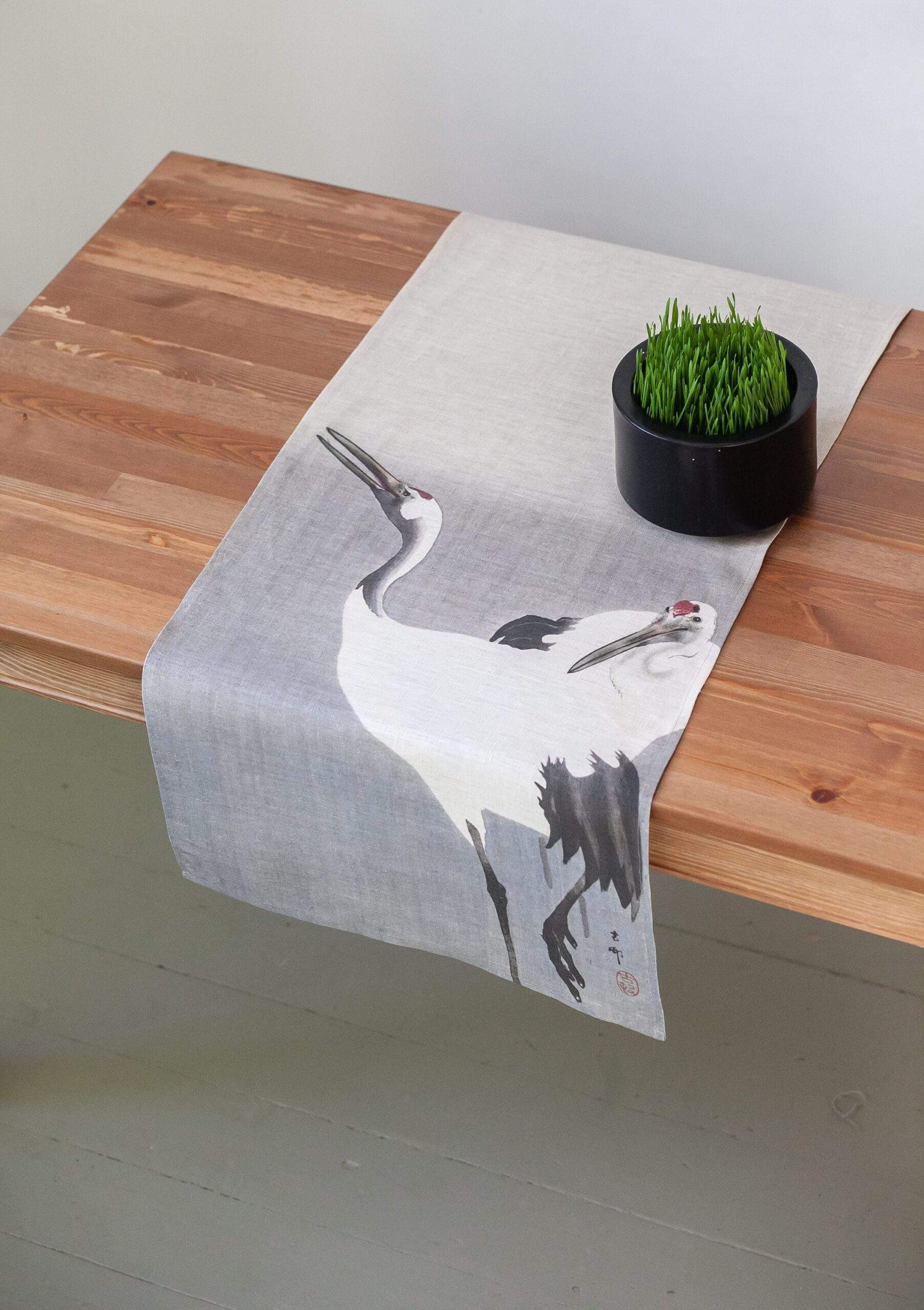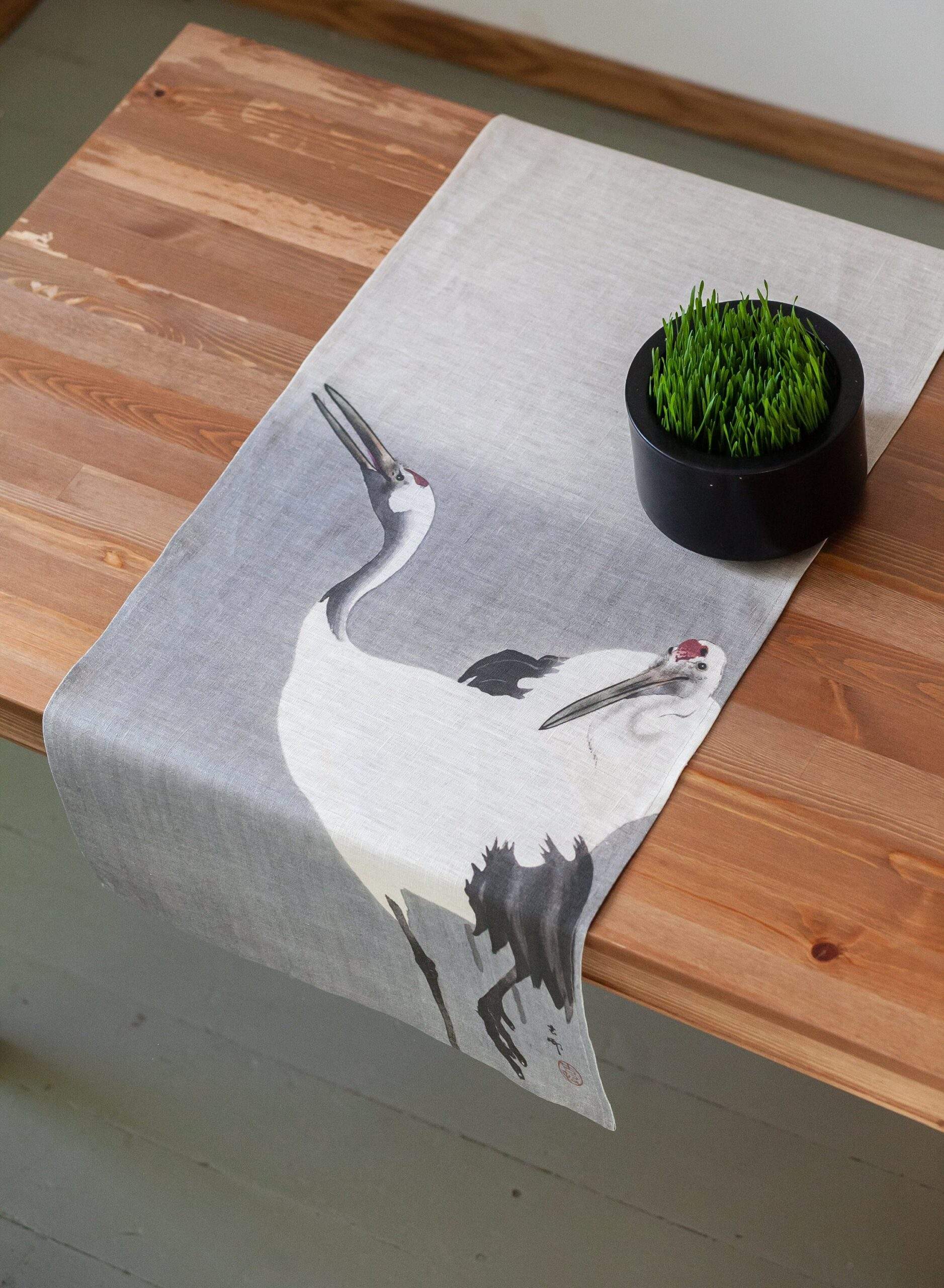 Linen table runner “Twee kraanvogels” by Ohara Koson.