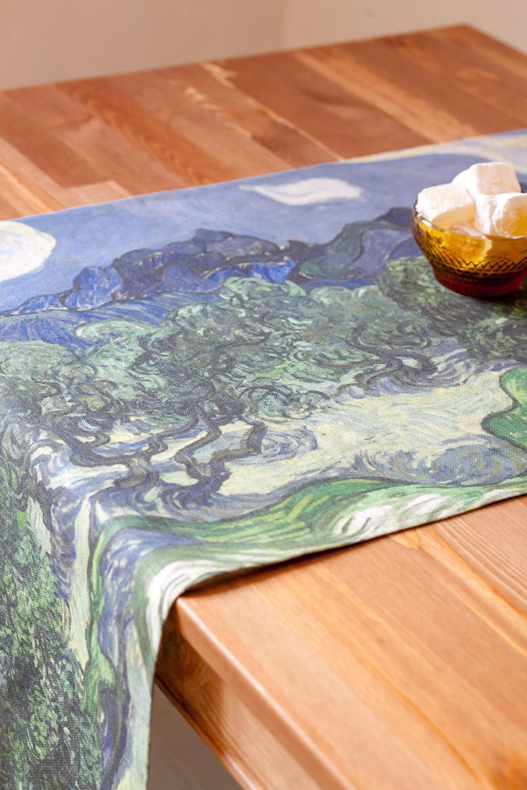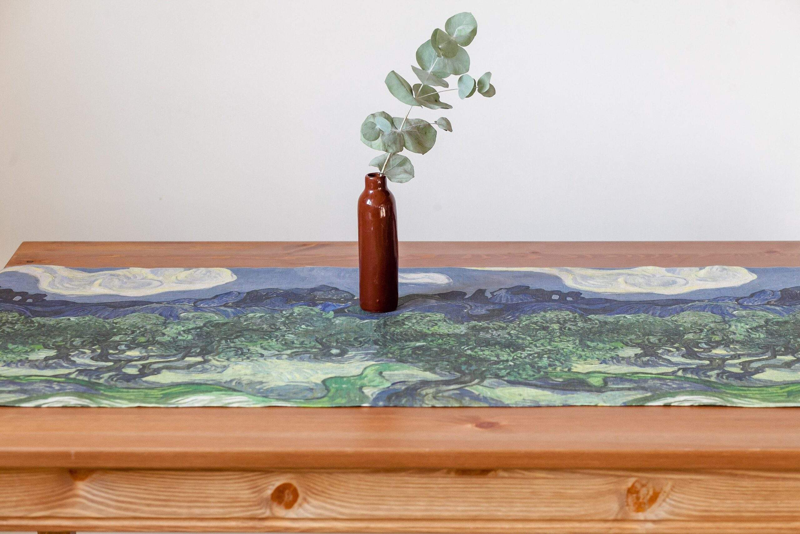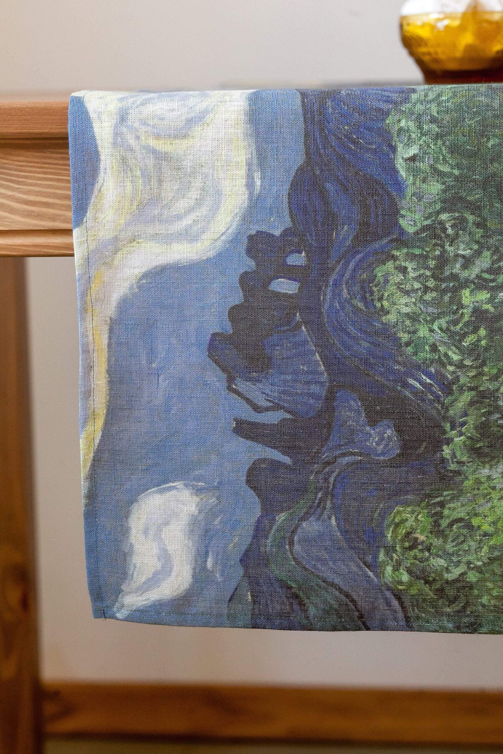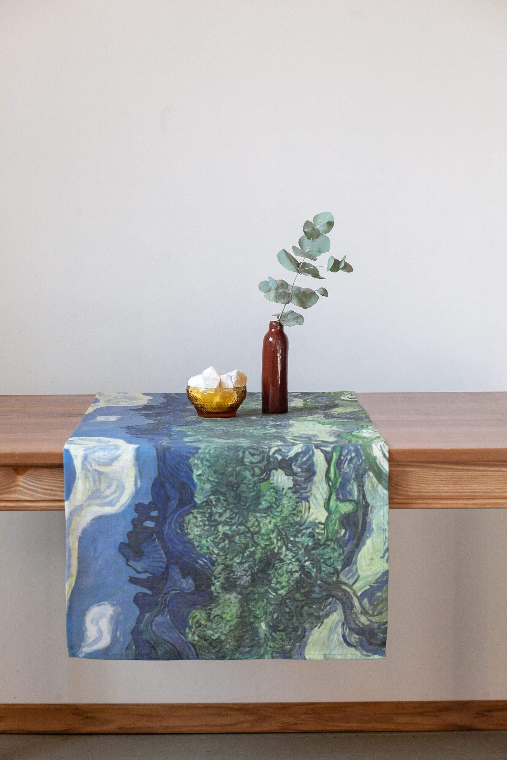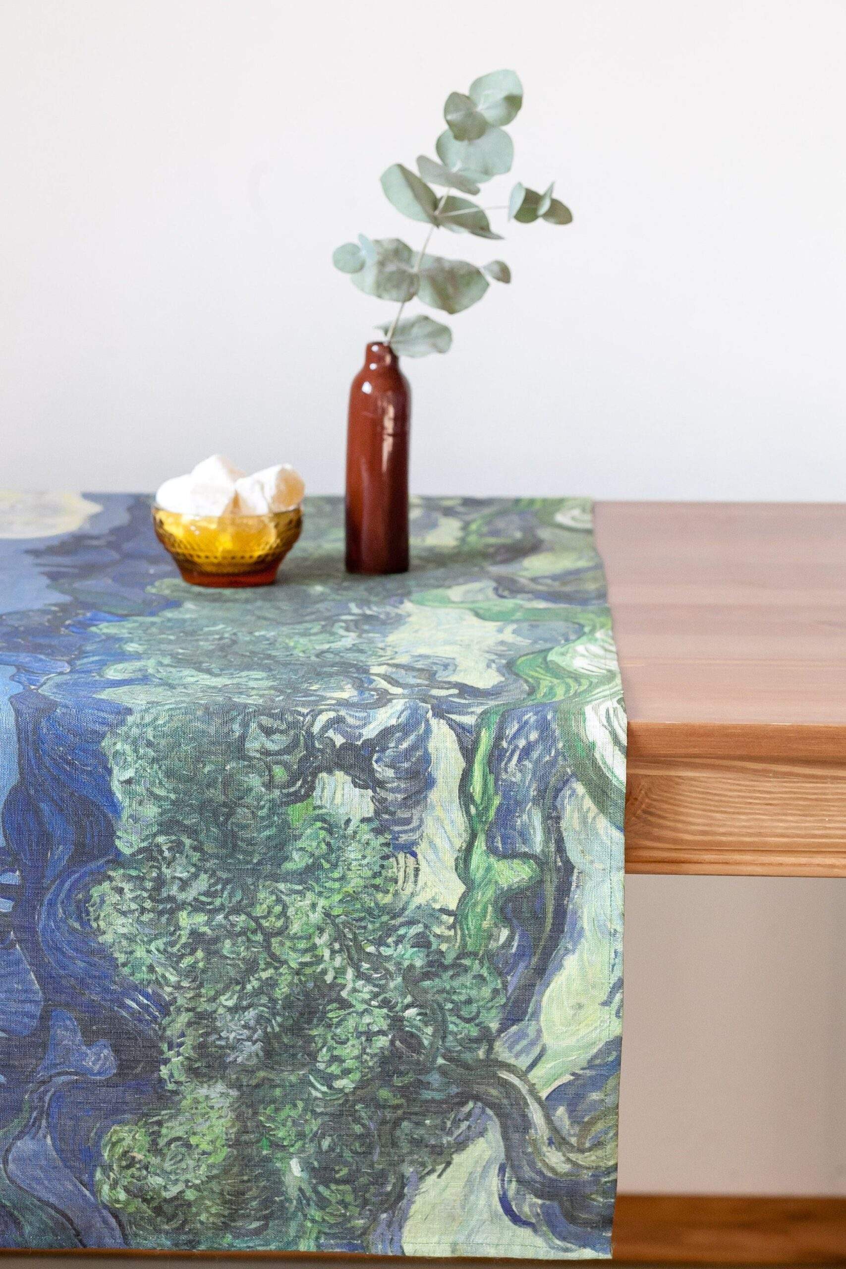 Table runner “Olive Trees” by Vincent van Gogh. Linen table runner hand made in Lithuania. We have matching linen napkins and placemats sets.