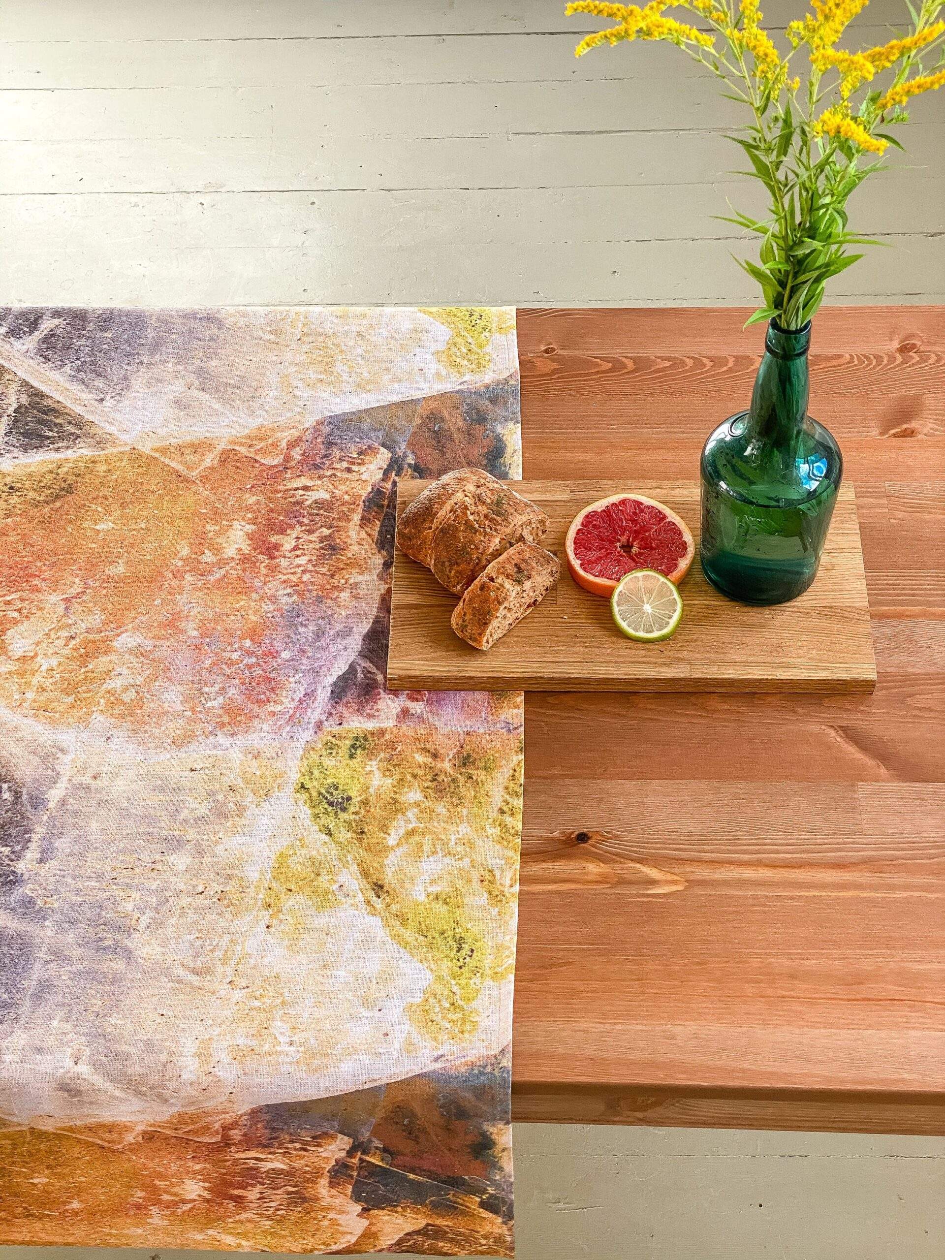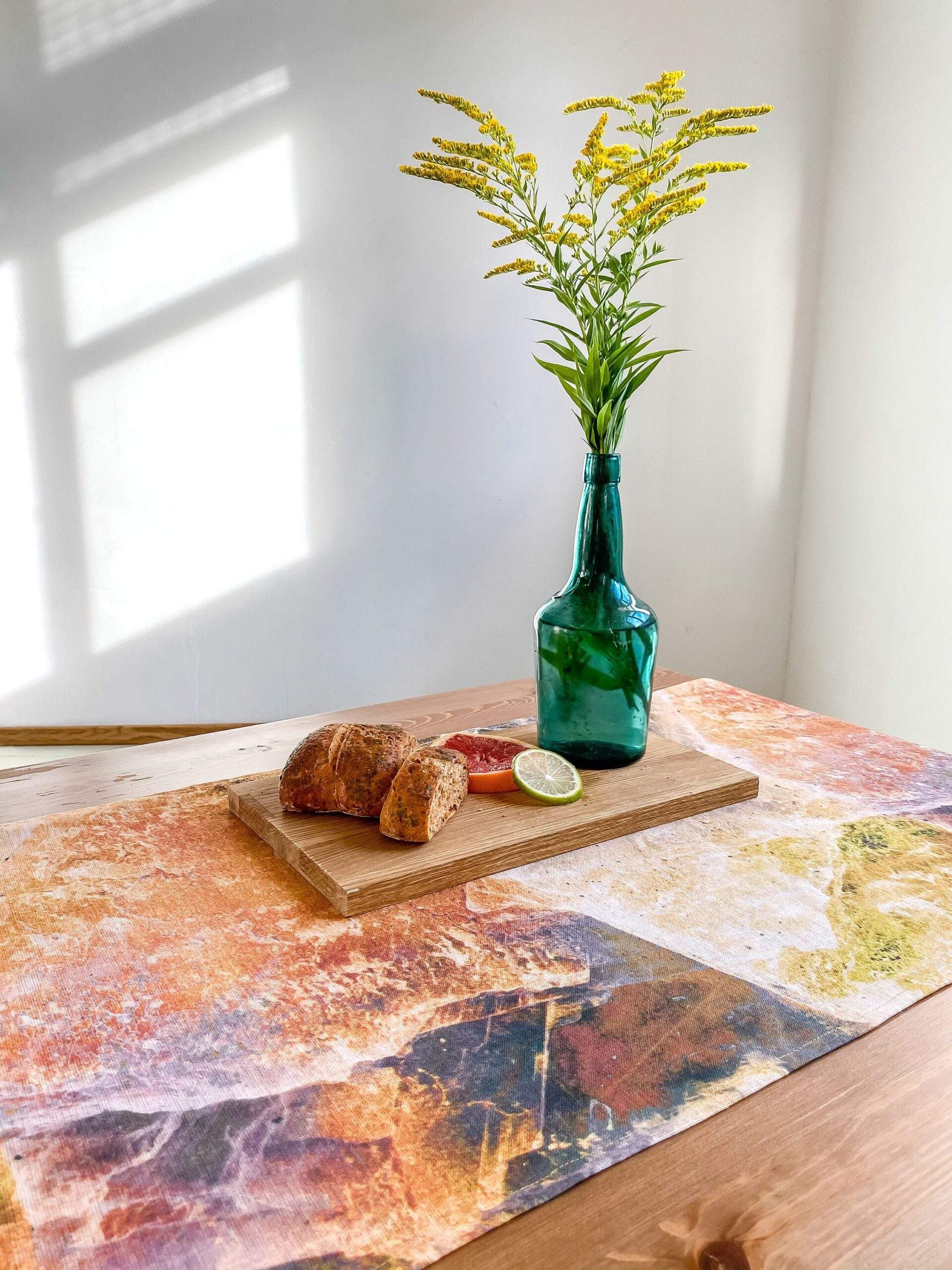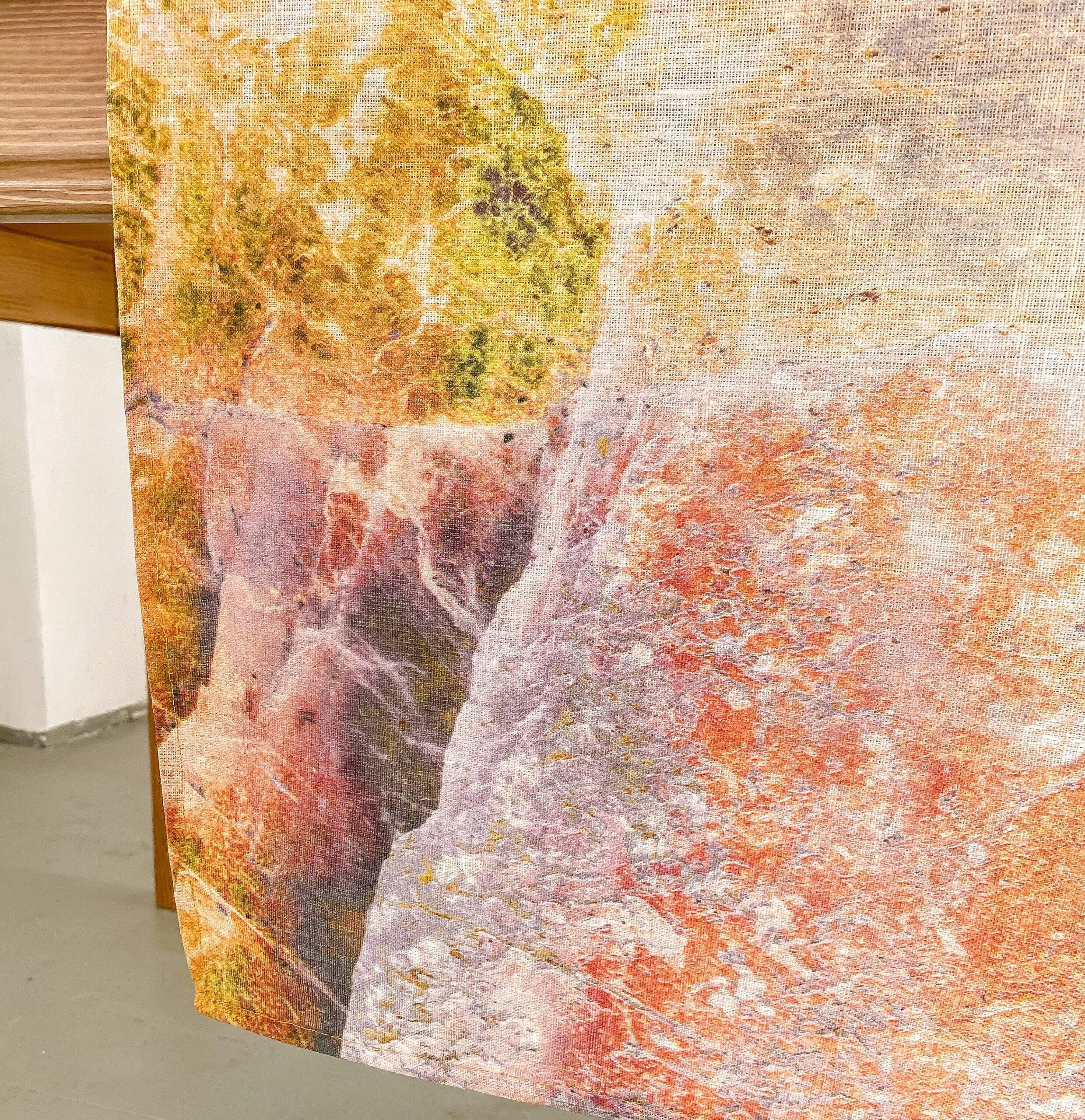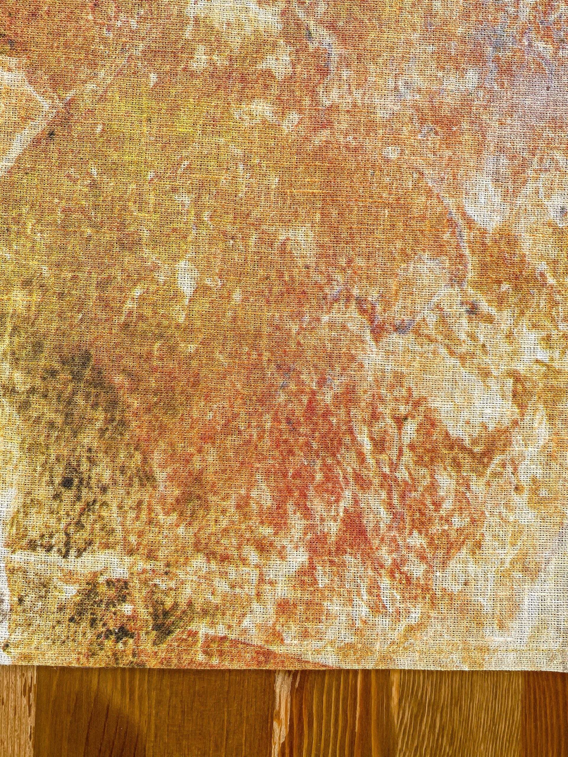 Linen table runner with WABI SABI pattern made of 100 % natural linen. Unique home decor, party decor. Idea for VINTAGE wedding table decor. This linen table runner can be printed on white linen fabric. This table runner can be order with same pattern linen table napkins, placemats. or tablecloths (different size).