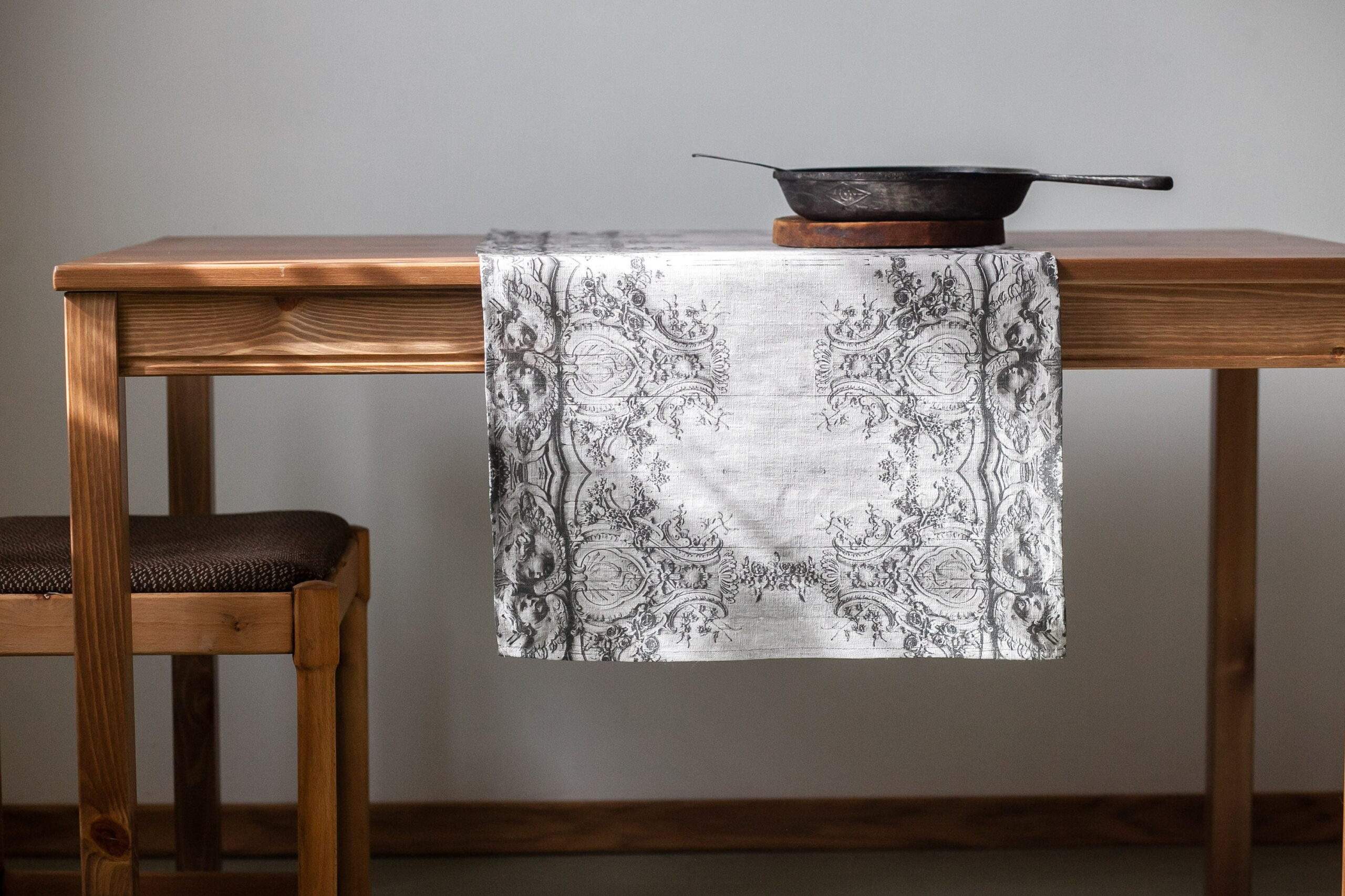 Toile de Jouy, Table runner, Linen table runner, 100% linen, custom table runner, Hand made in Lithuania, PR0093