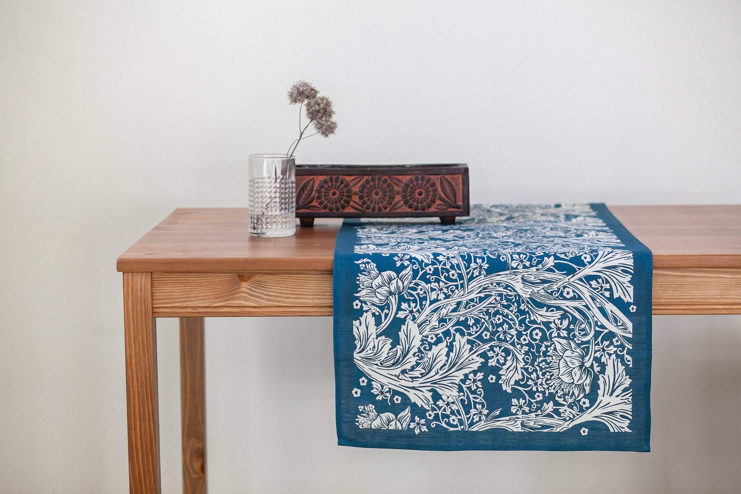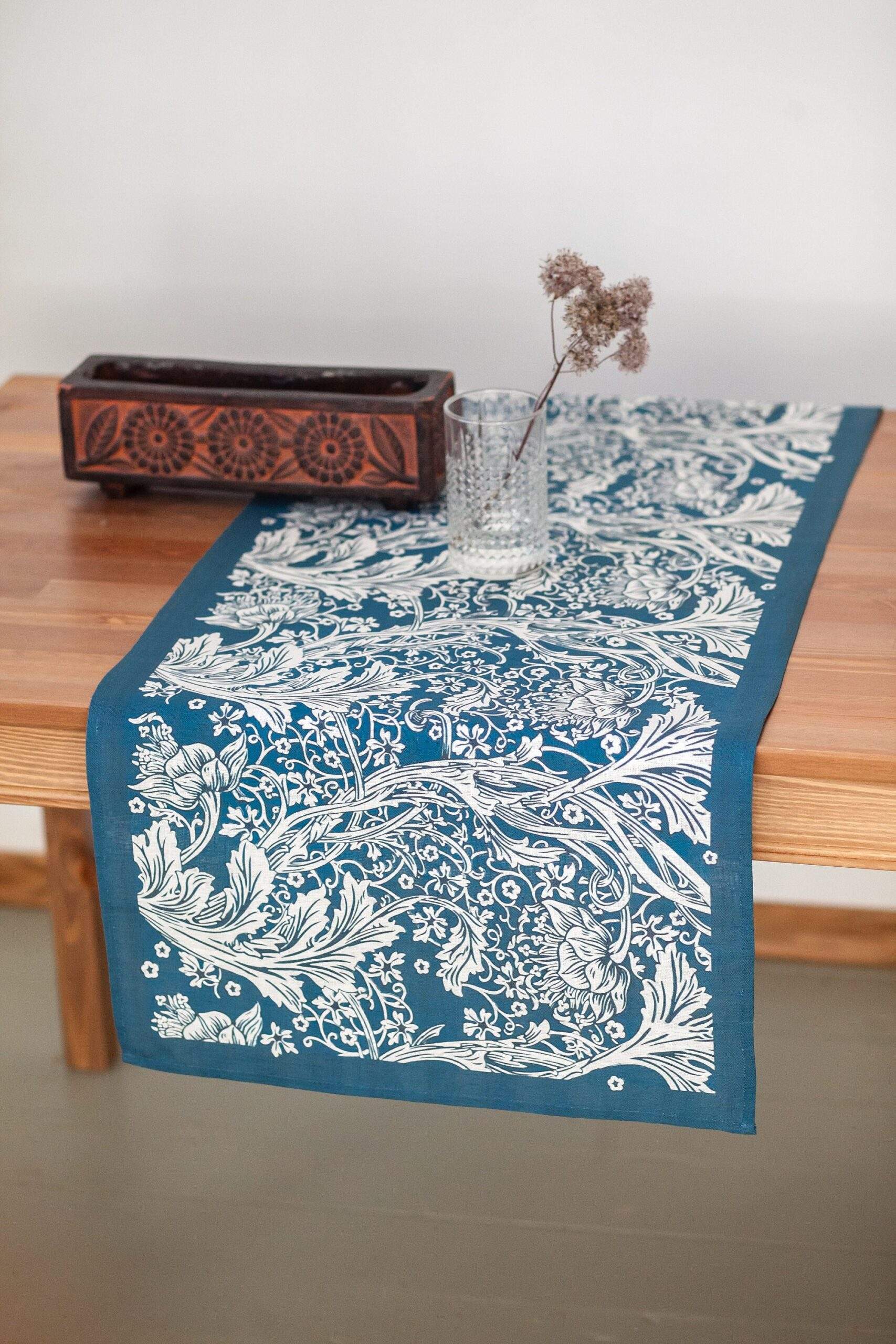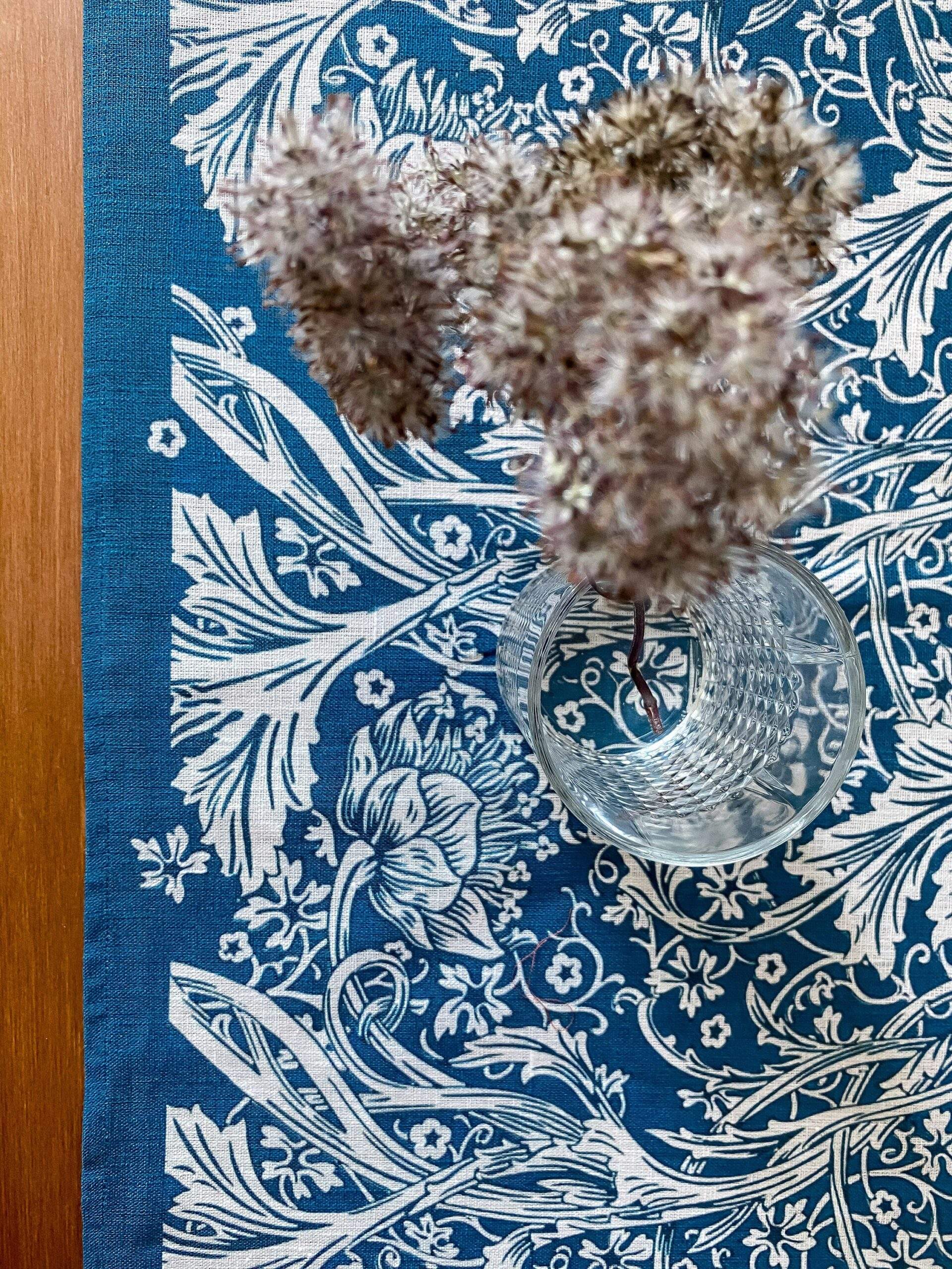 Linen table runner is made by using William Morris artwork “Sidewall Arcadia”. William Morris was a British textile designer, poet, novelist, translator, and socialist activist associated with the British Arts and Crafts Movement.