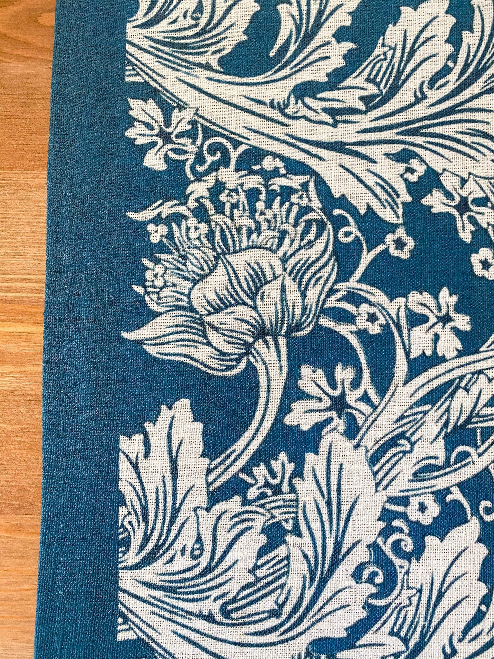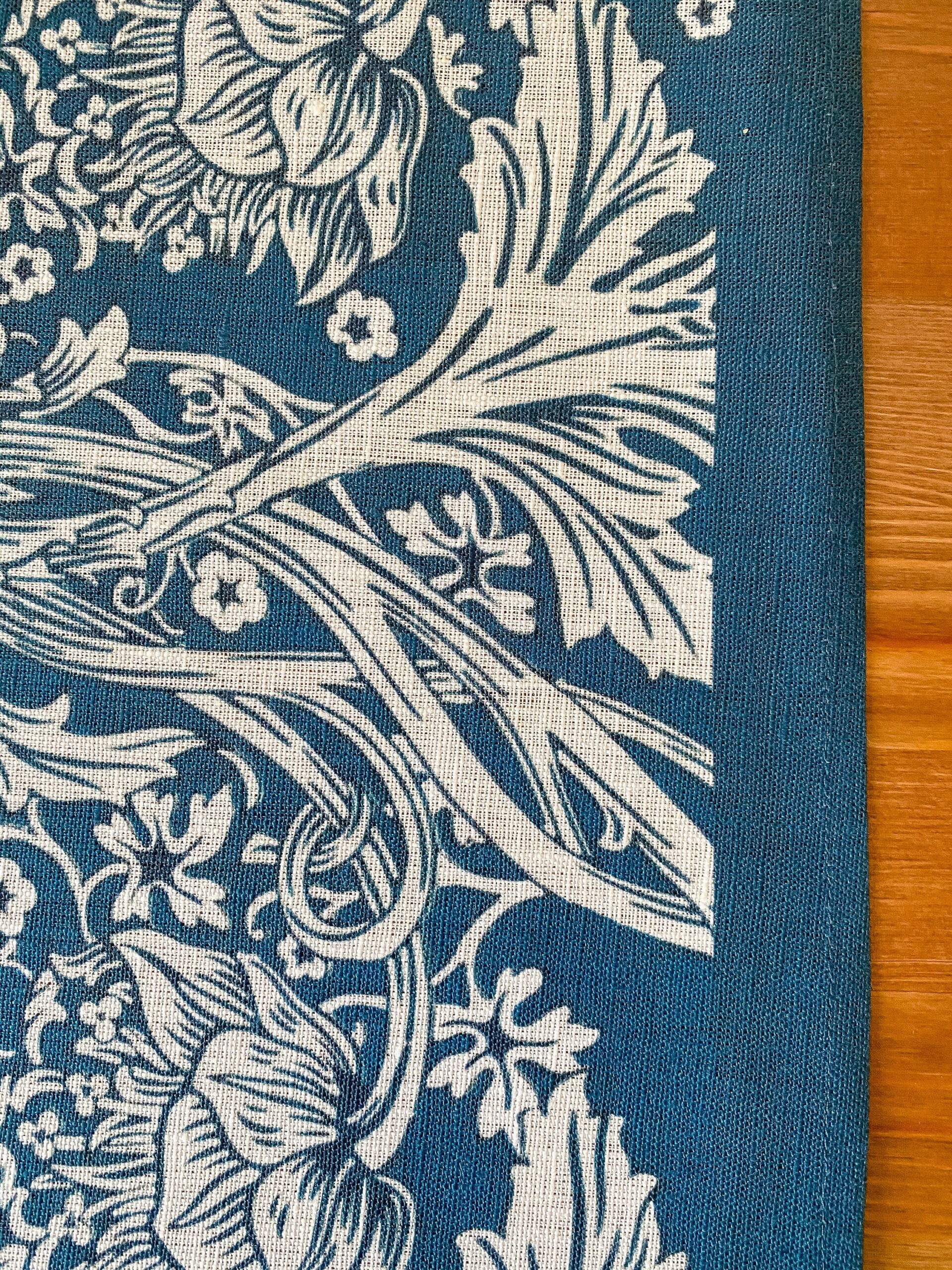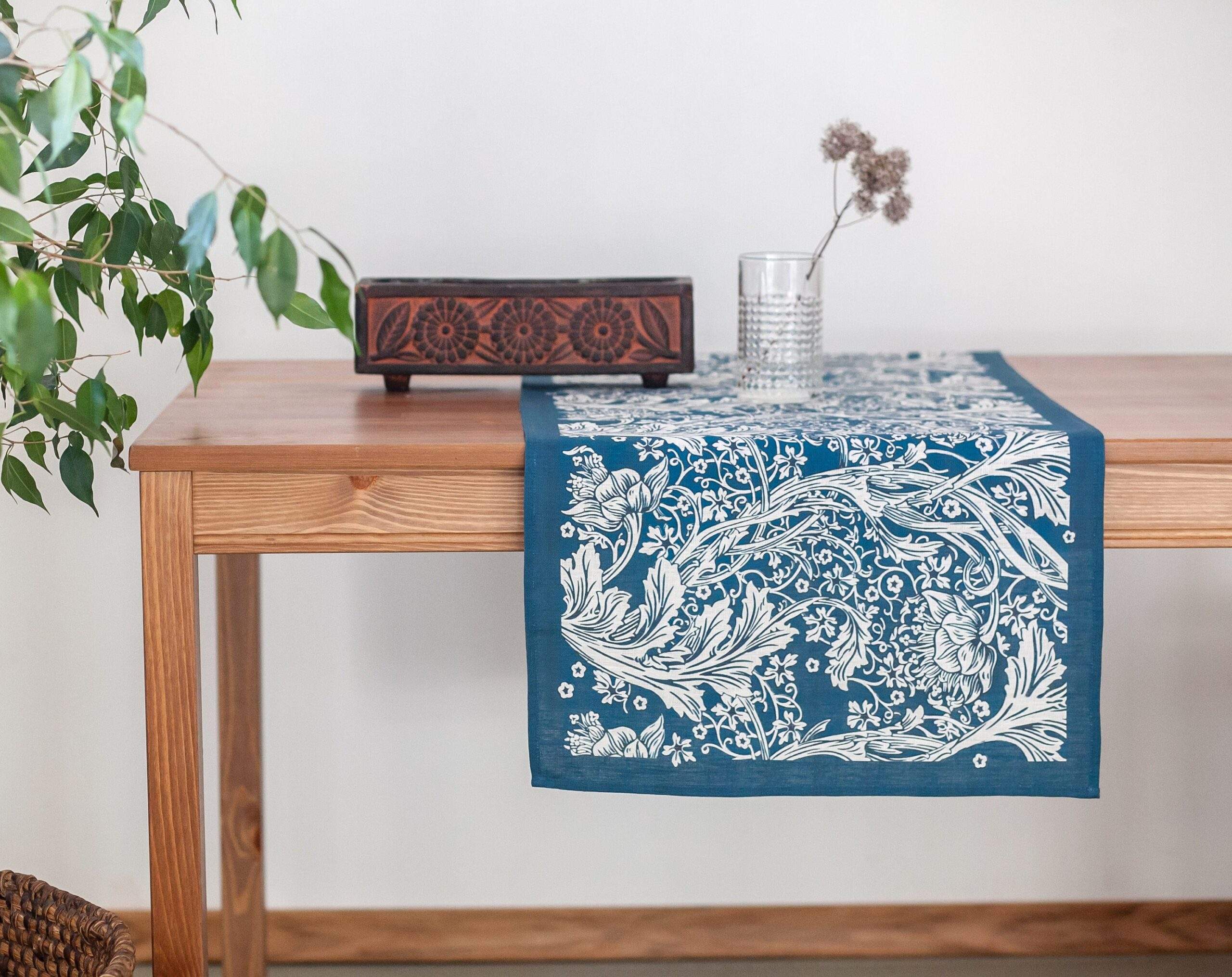 Linen table runner is made by using William Morris artwork “Sidewall Arcadia”. William Morris was a British textile designer, poet, novelist, translator, and socialist activist associated with the British Arts and Crafts Movement.