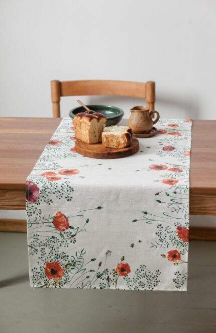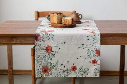Linen table runner is made by using William Morris artwork “Sidewall Arcadia”. William Morris was a British textile designer, poet, novelist, translator, and socialist activist associated with the British Arts and Crafts Movement.