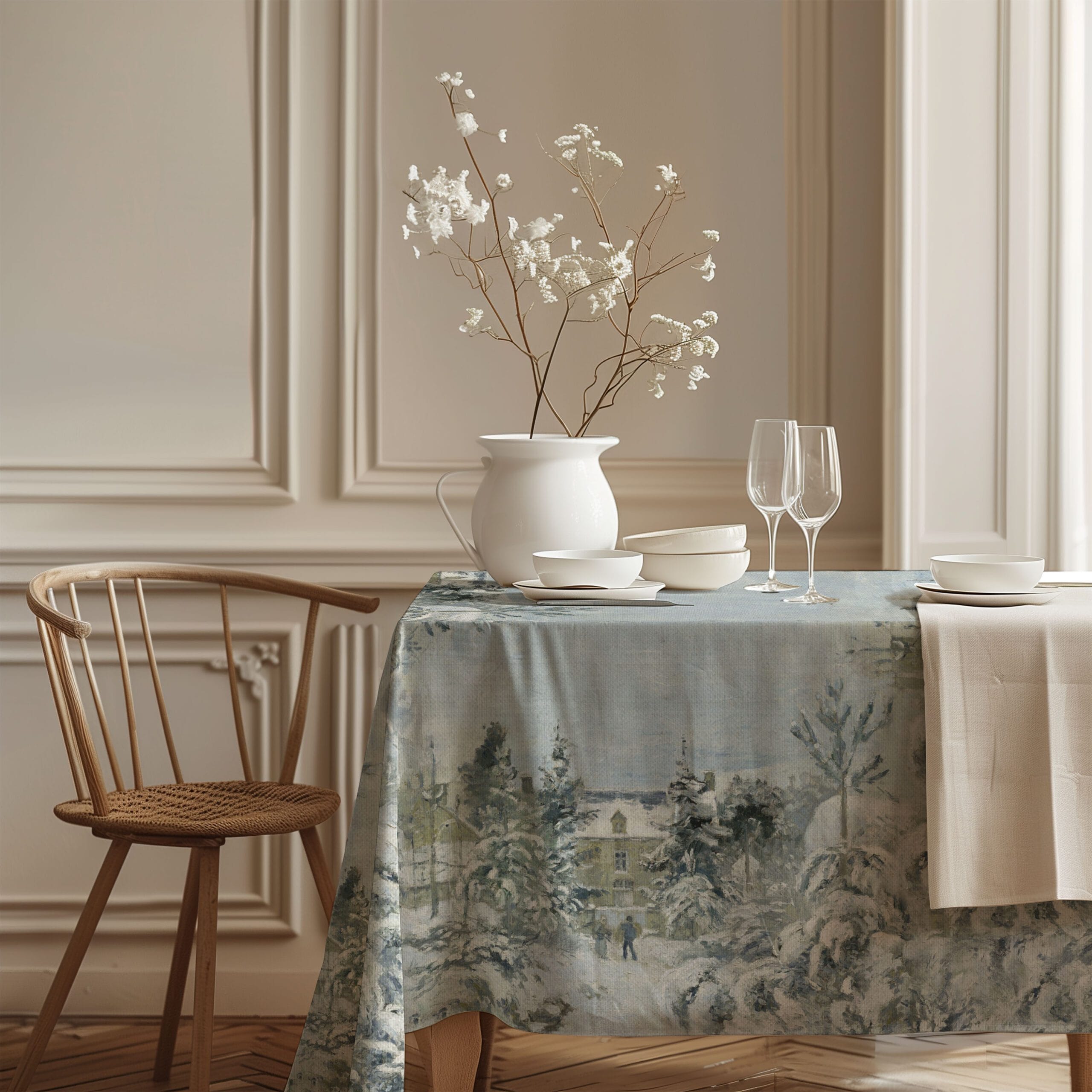 Tablecloth, White Silhouettes of Pine Trees in Snow, 100% linen, PR4075