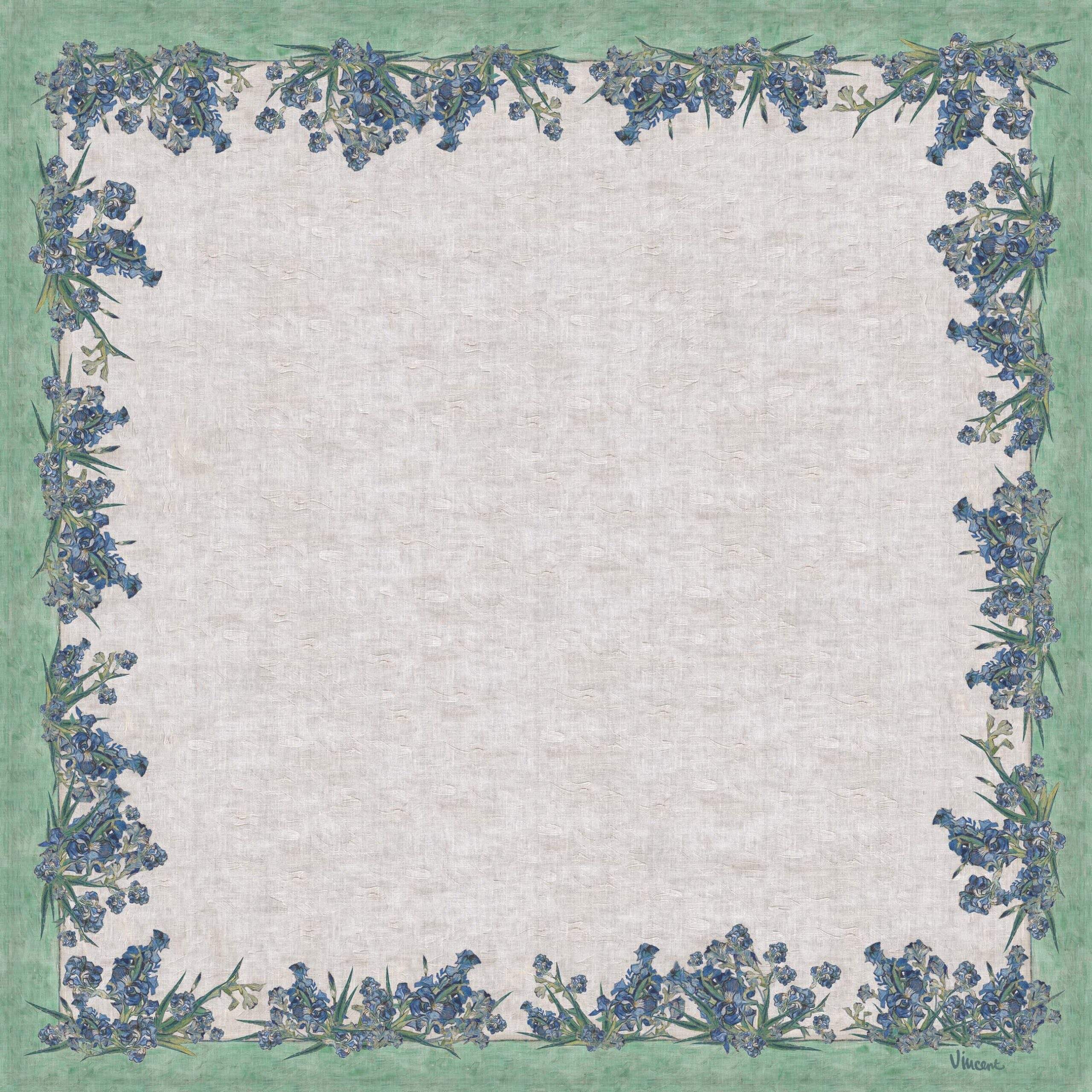 Linen tablecloths Vincent van Gogh “Irises” pattern. This tablecloth can be order with matching pattern linen table runners, placemats or napkins sets.