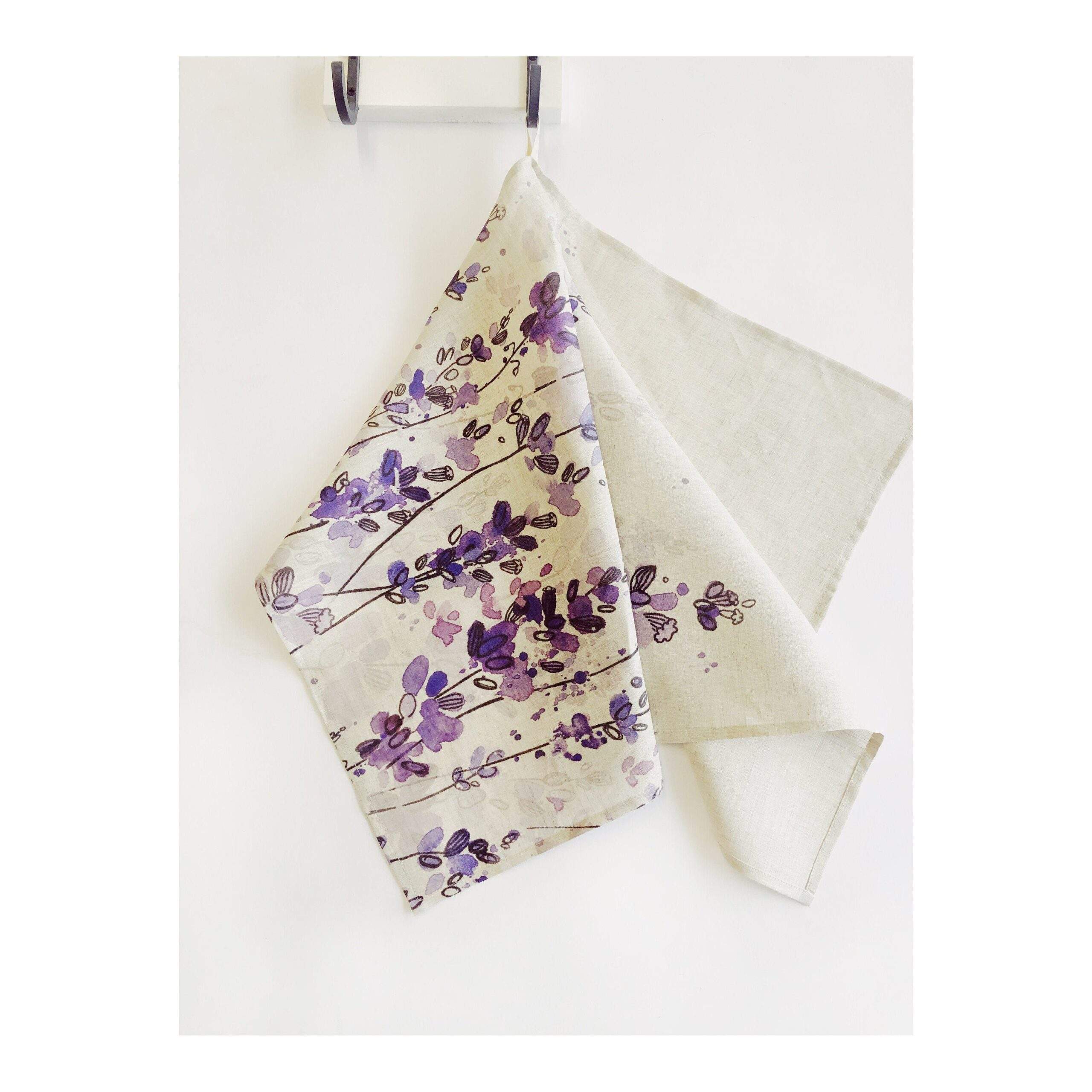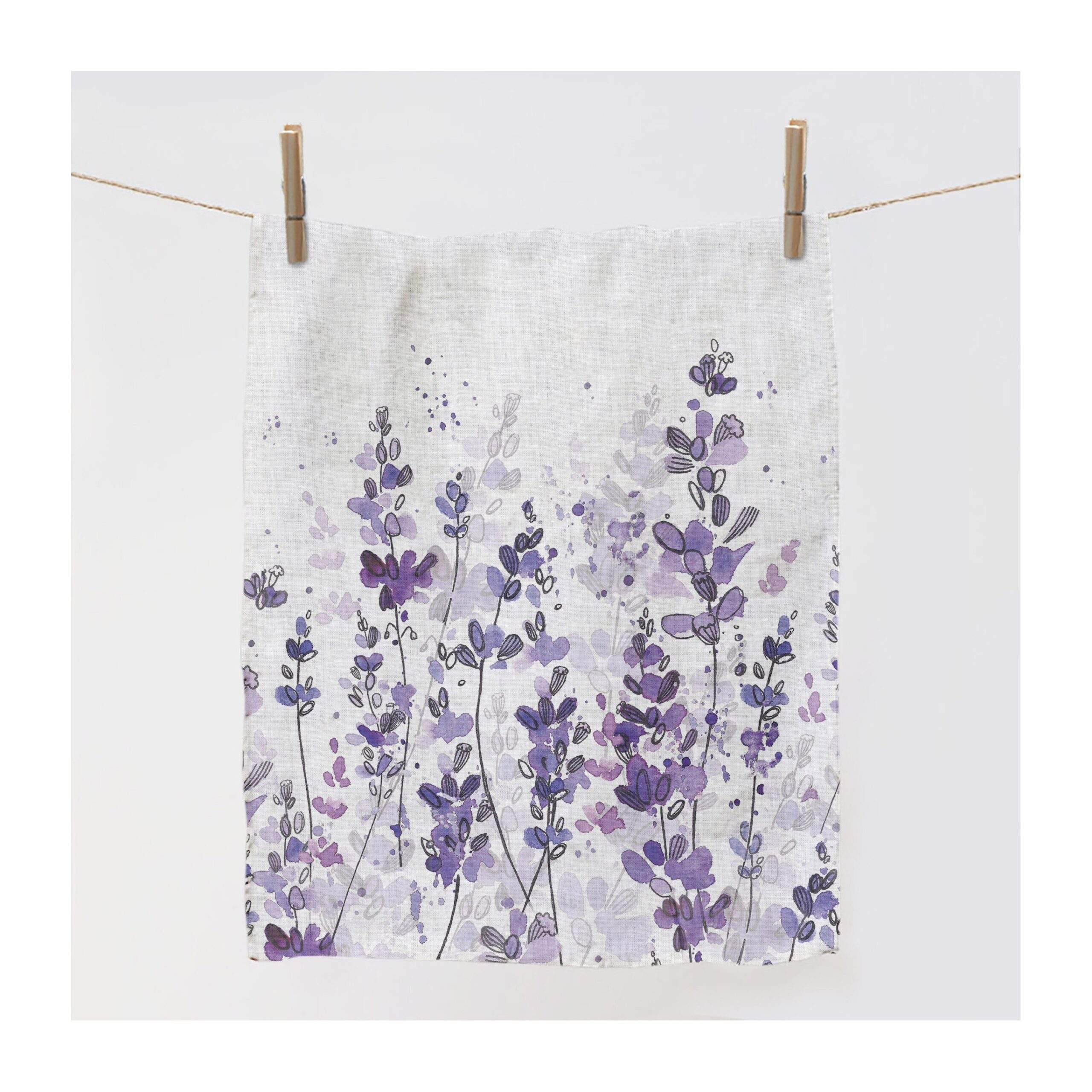 Tea towel, linen kitchen towel watercolour “Lavenders”.