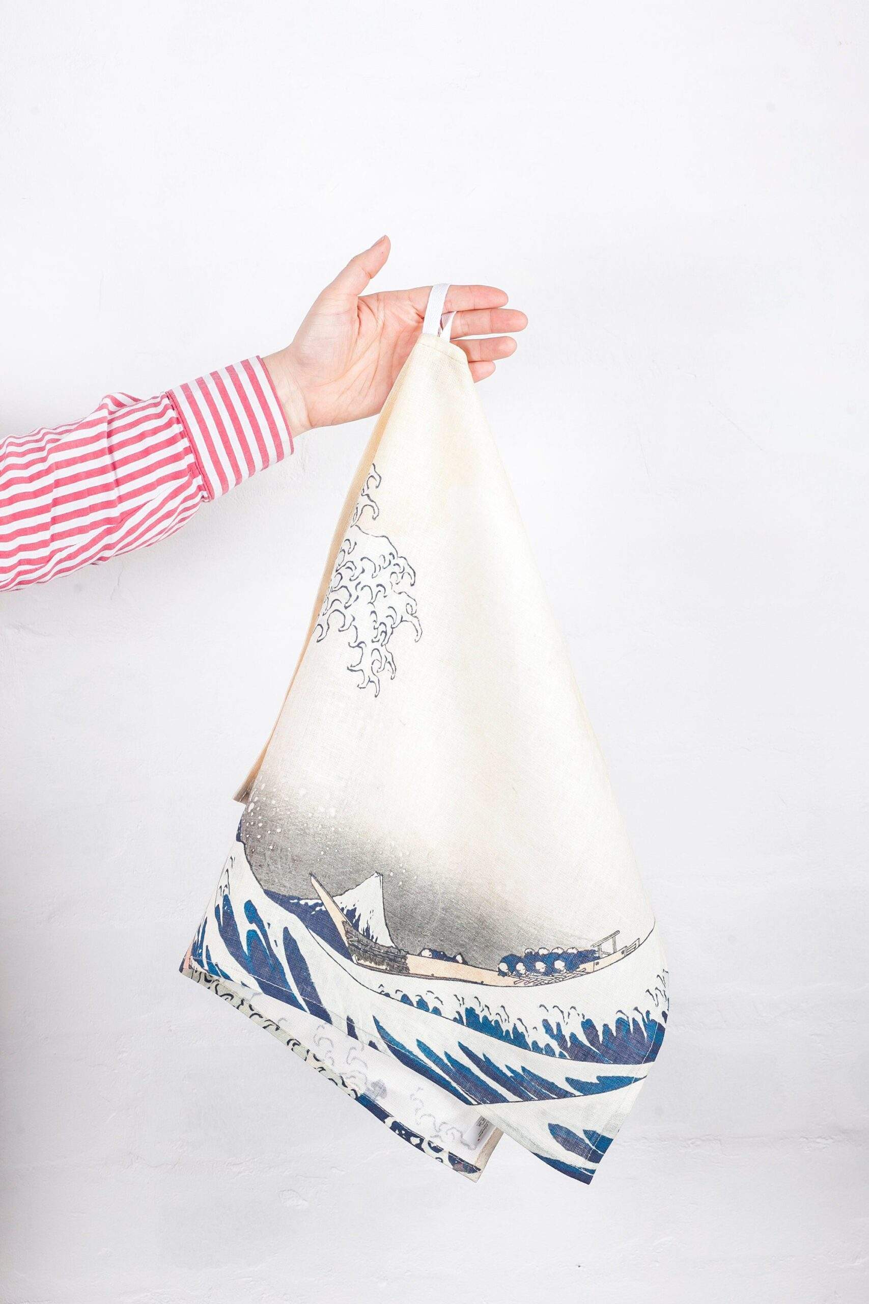 The great wave, apron, plus towel, Hokusai, Japan, 100% linen, hand made apron, kitchen decor, housewarming gift, PR1271