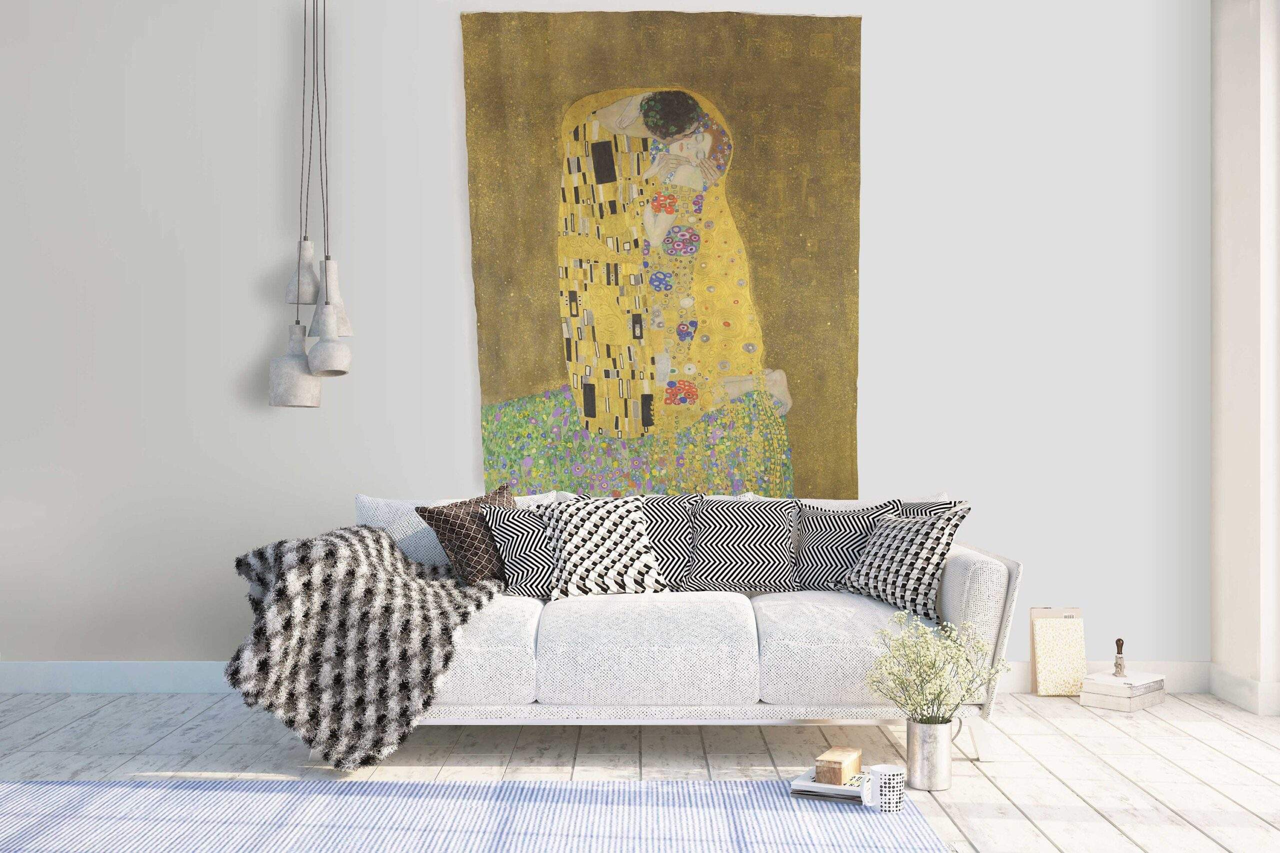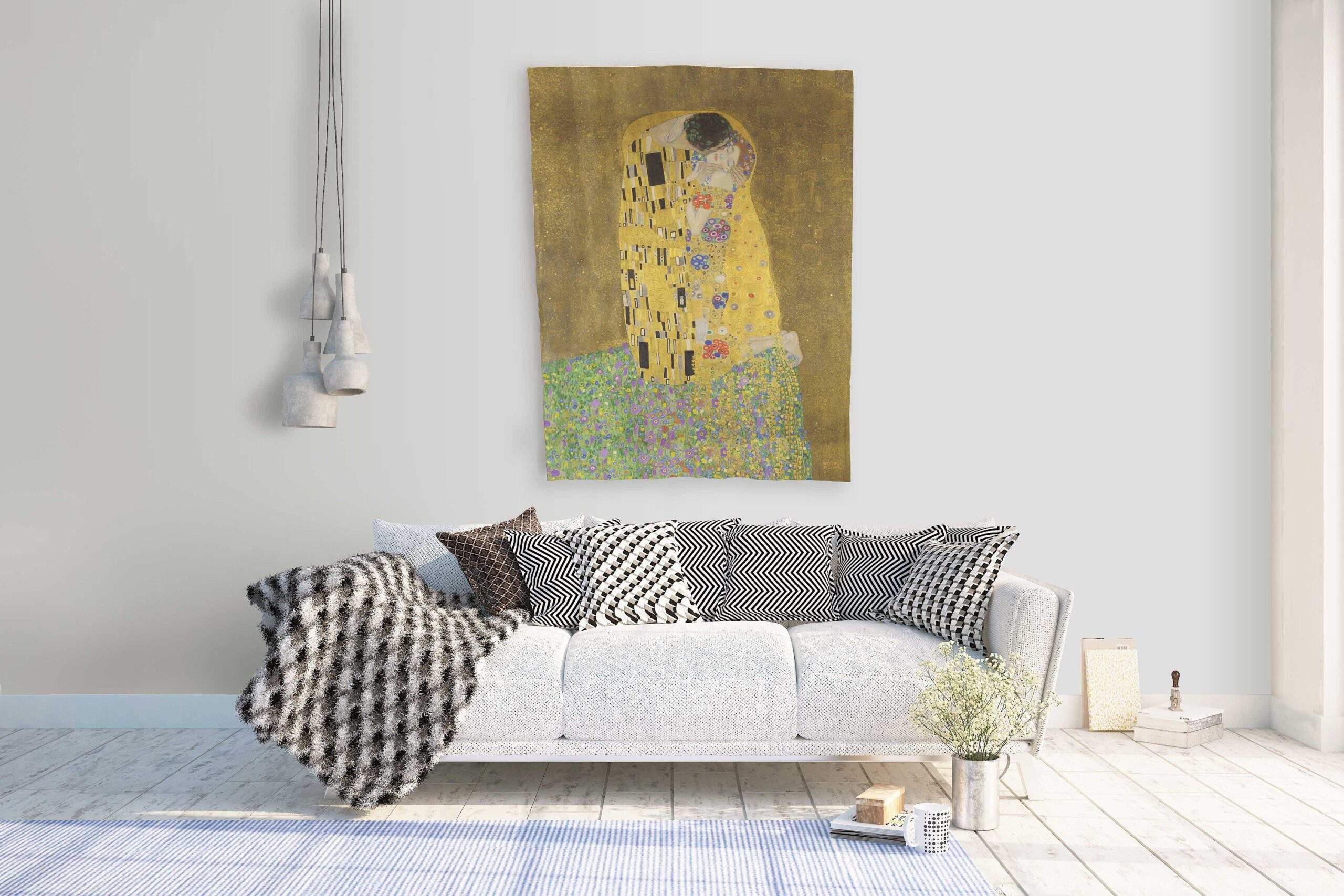 The Kiss by Gustav Klimt, Linen Tapestry, Wall Art Hanging, Golden Period Romantic Masterpiece, 100% linen, Europe.
