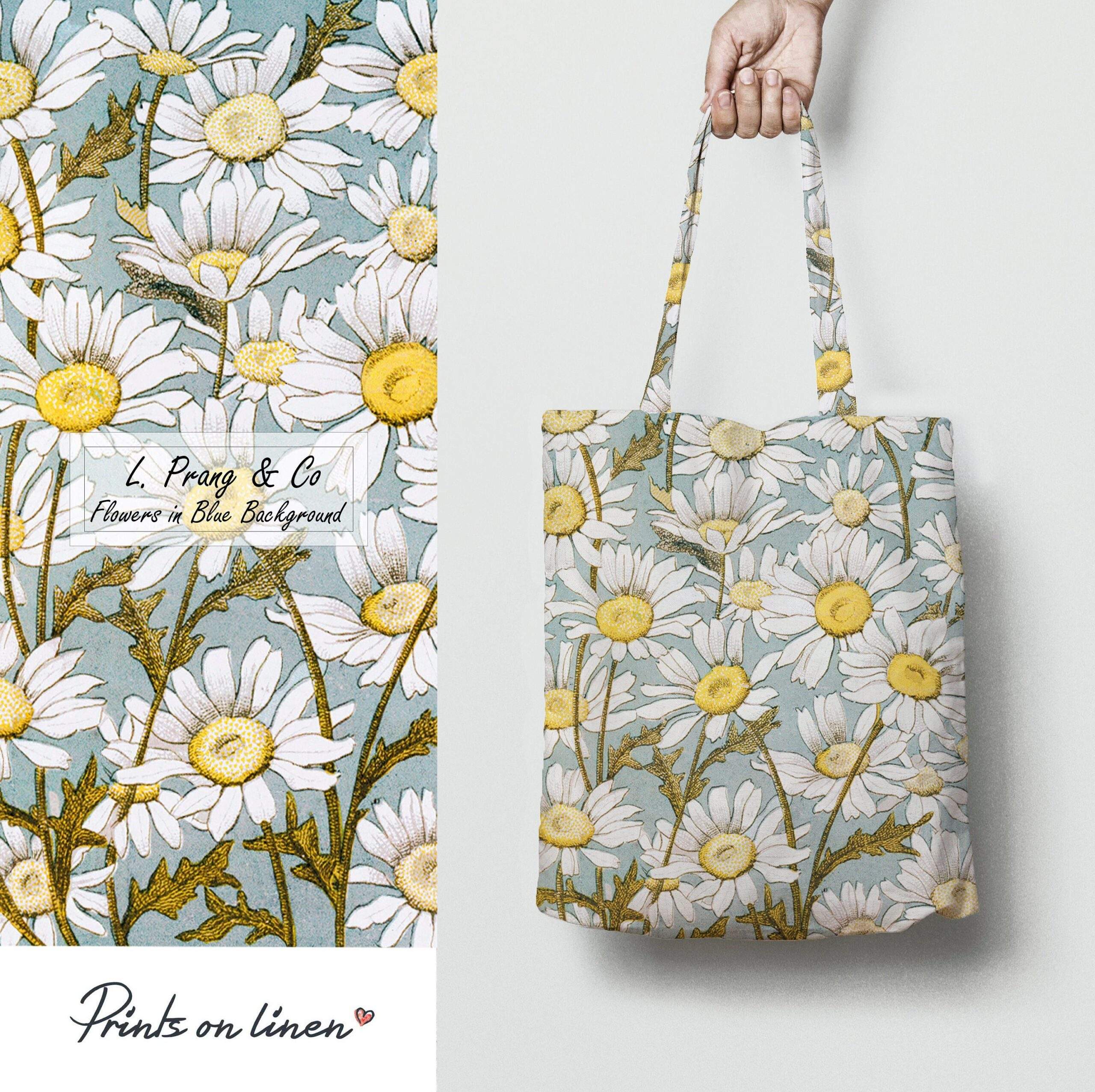 Tote bag Flowers In Blue Background By L Prang And Co.