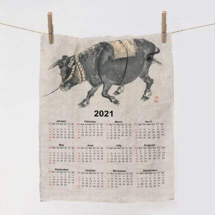 Linen kitchen towel “Spring Bouquet” by Pierre-Auguste Renoir. Unique kitchen decor, housewarming gift, farmhouse decor. Towel with hook. Hand made in Lithuania.
