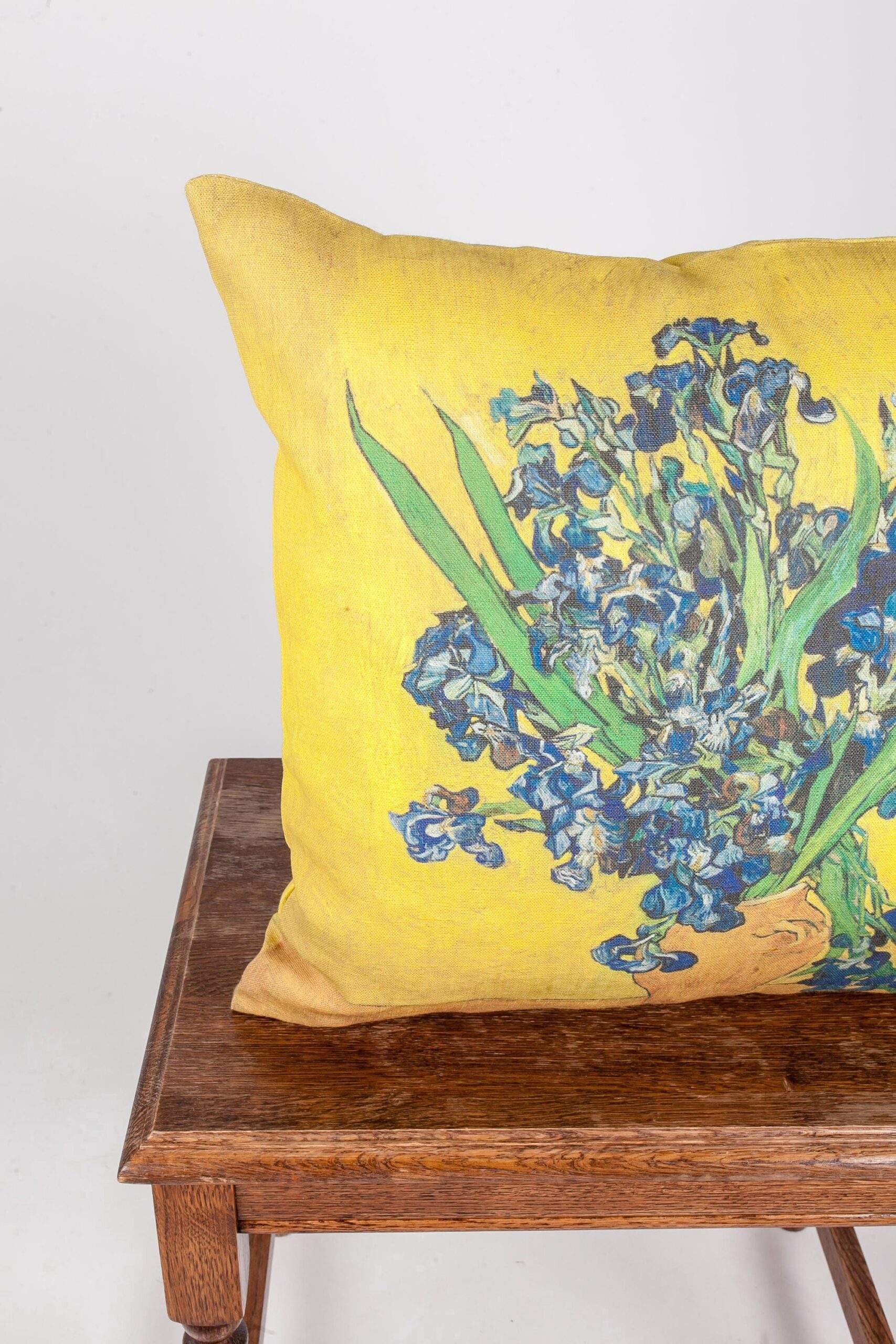 Cushion cover Vincent van Gogh Vase with “Irises”. Modern art, Post-Impressionism.