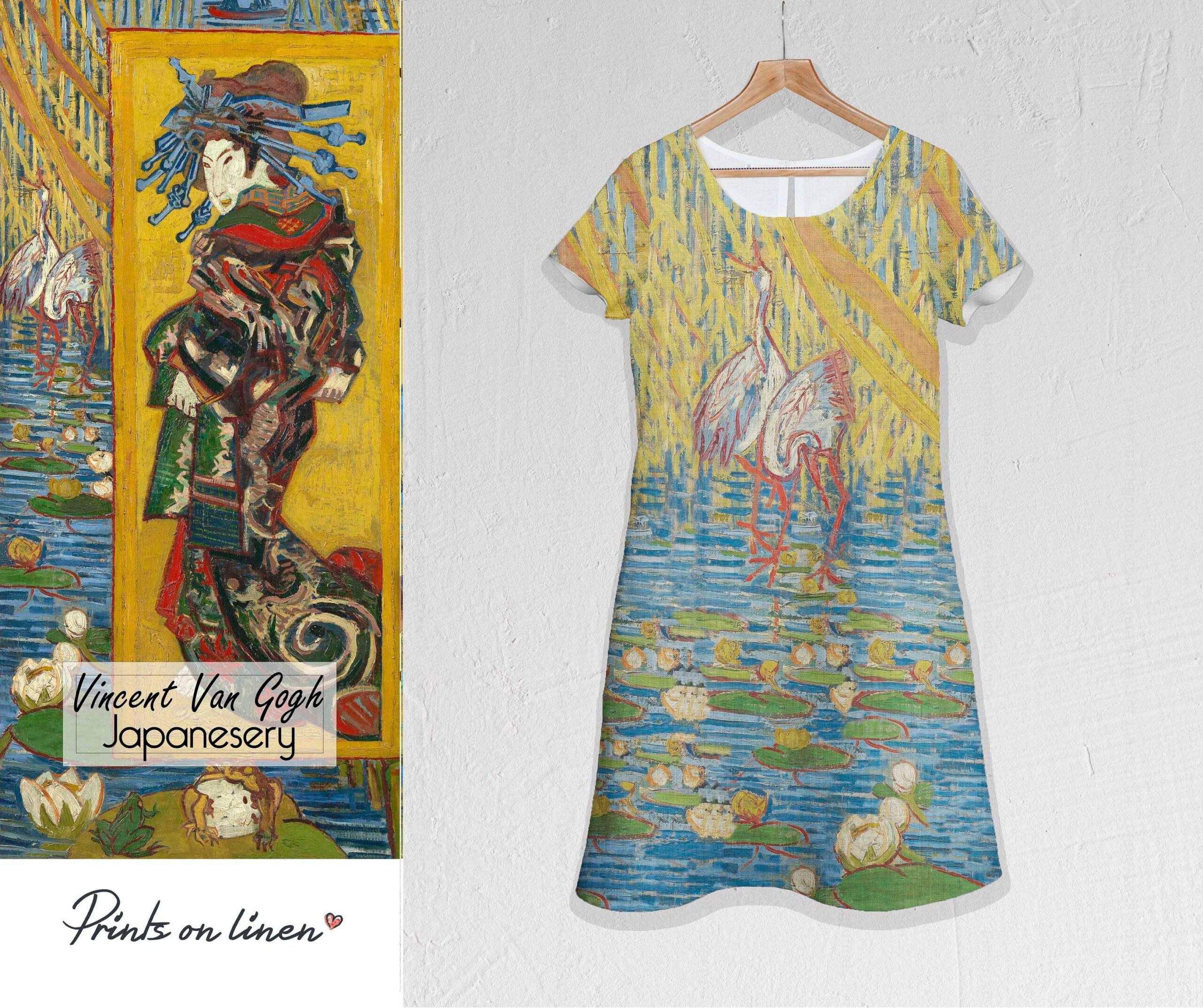 Linen women dress, dress design inspired by Vincent van Gogh artwork – “Japanesery”.