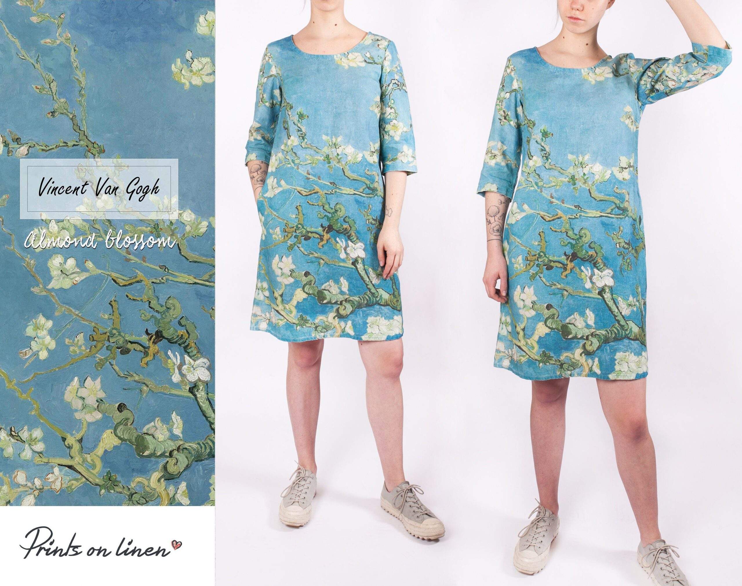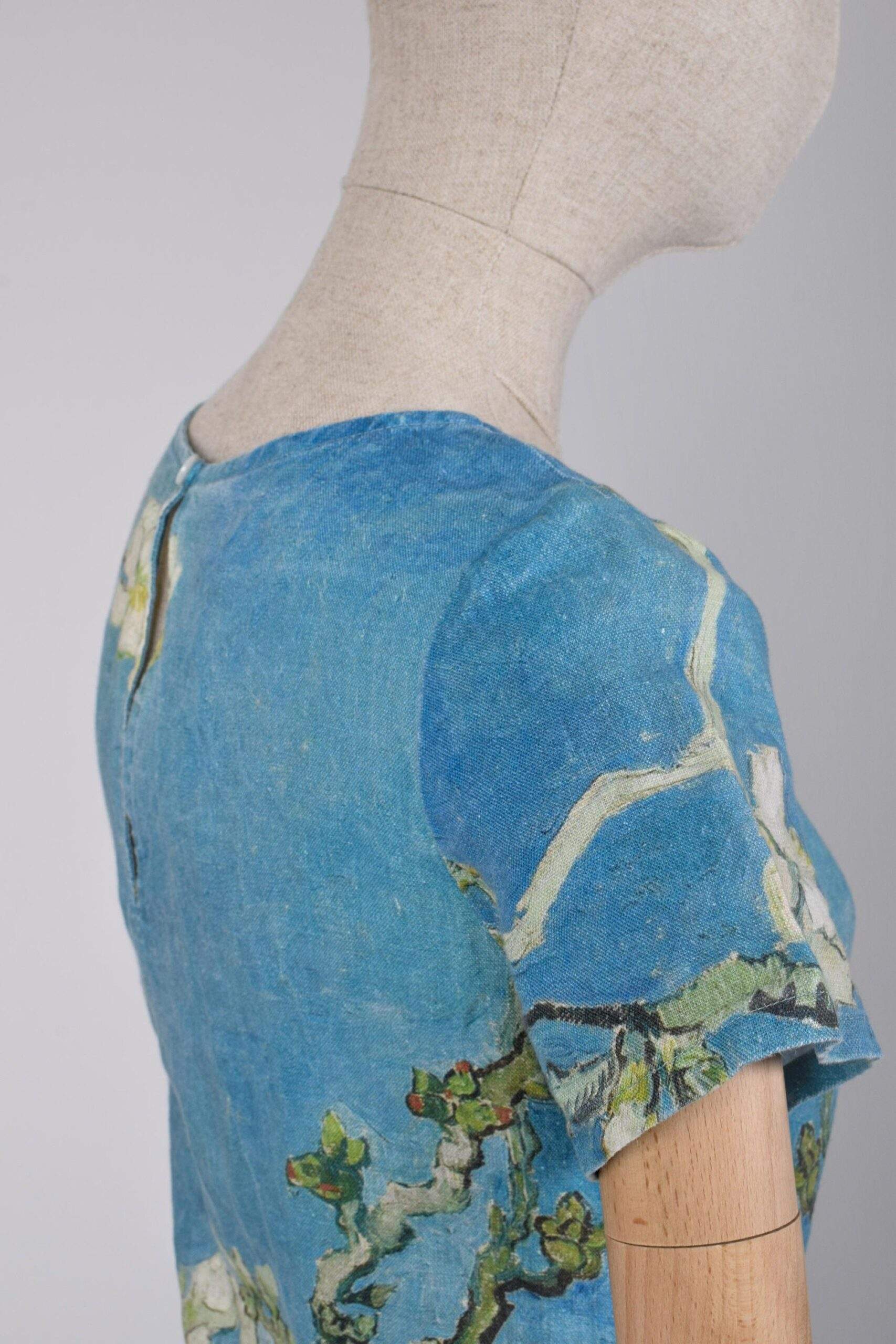 Linen women dress Vincent van Gogh “Almond Blossom”. Almond Blossoms is from a group of several paintings made in 1888 and 1890 by Vincent van Gogh in Arles and Saint-Rémy, southern France of blossoming almond trees.