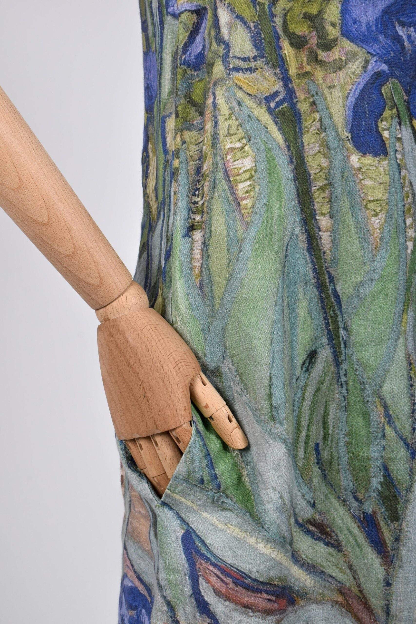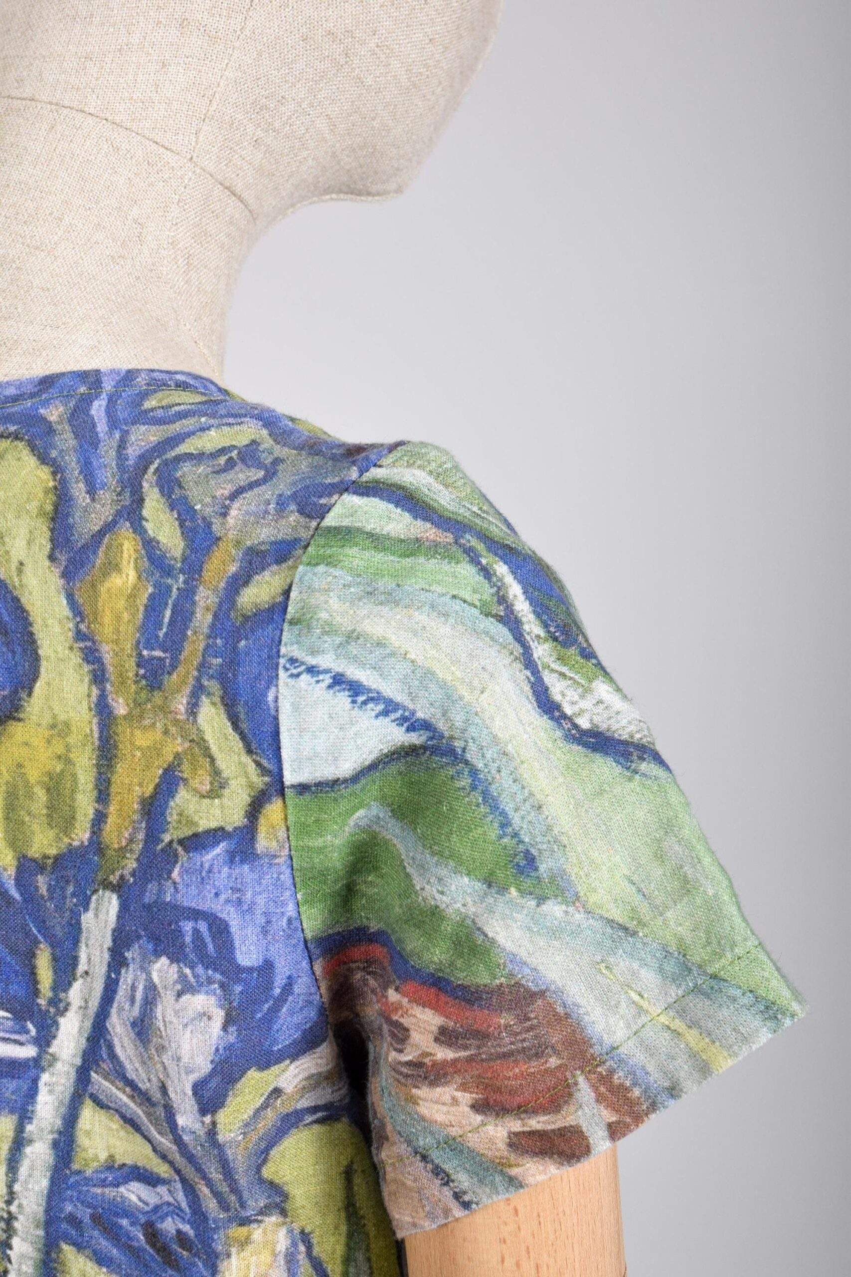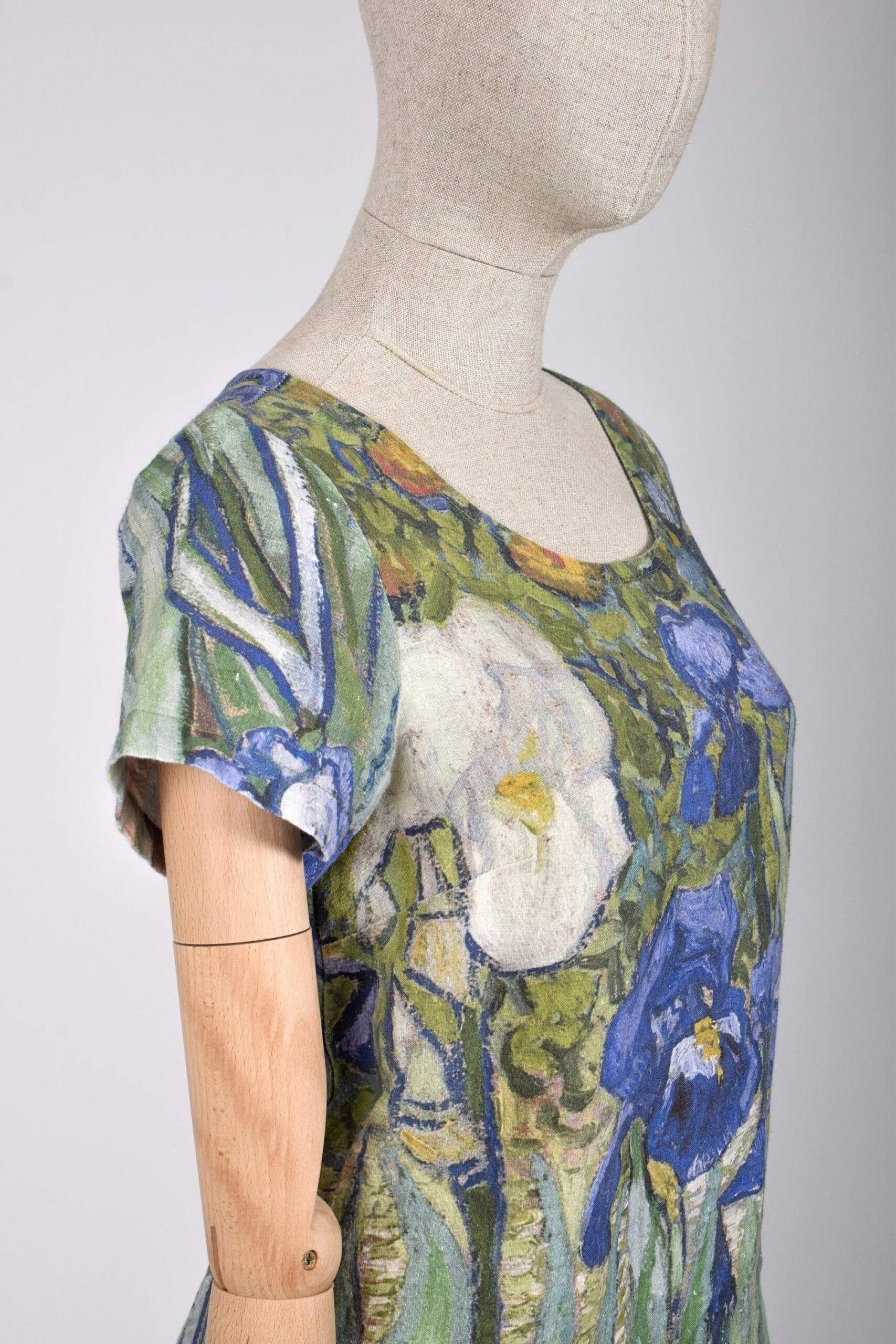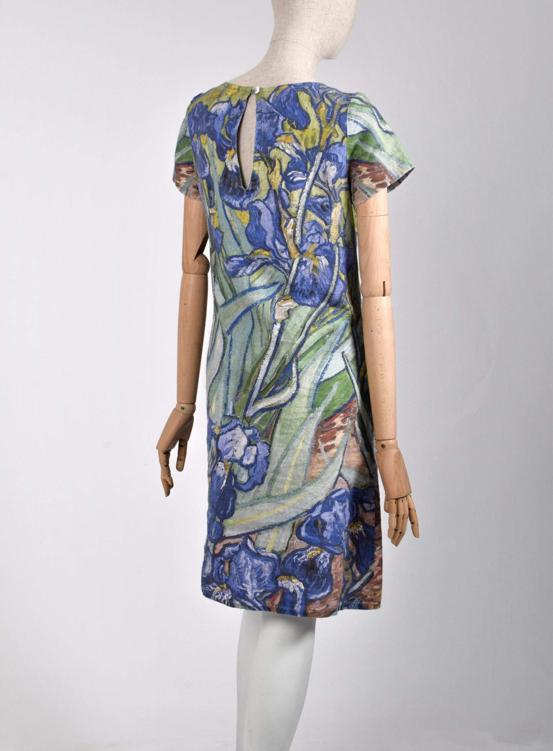 Women linen dress of Vincent Van Gogh Irises. Sometimes less means more. Sometimes the longest trips start with the shortest roads. The painting by Vincent van Gogh of Irises was highly valued as it helps to create the impression of fresh air and real life. Irises linen dress can be of standard size and plus size. It is the sip of fresh air and joy in your everyday life.