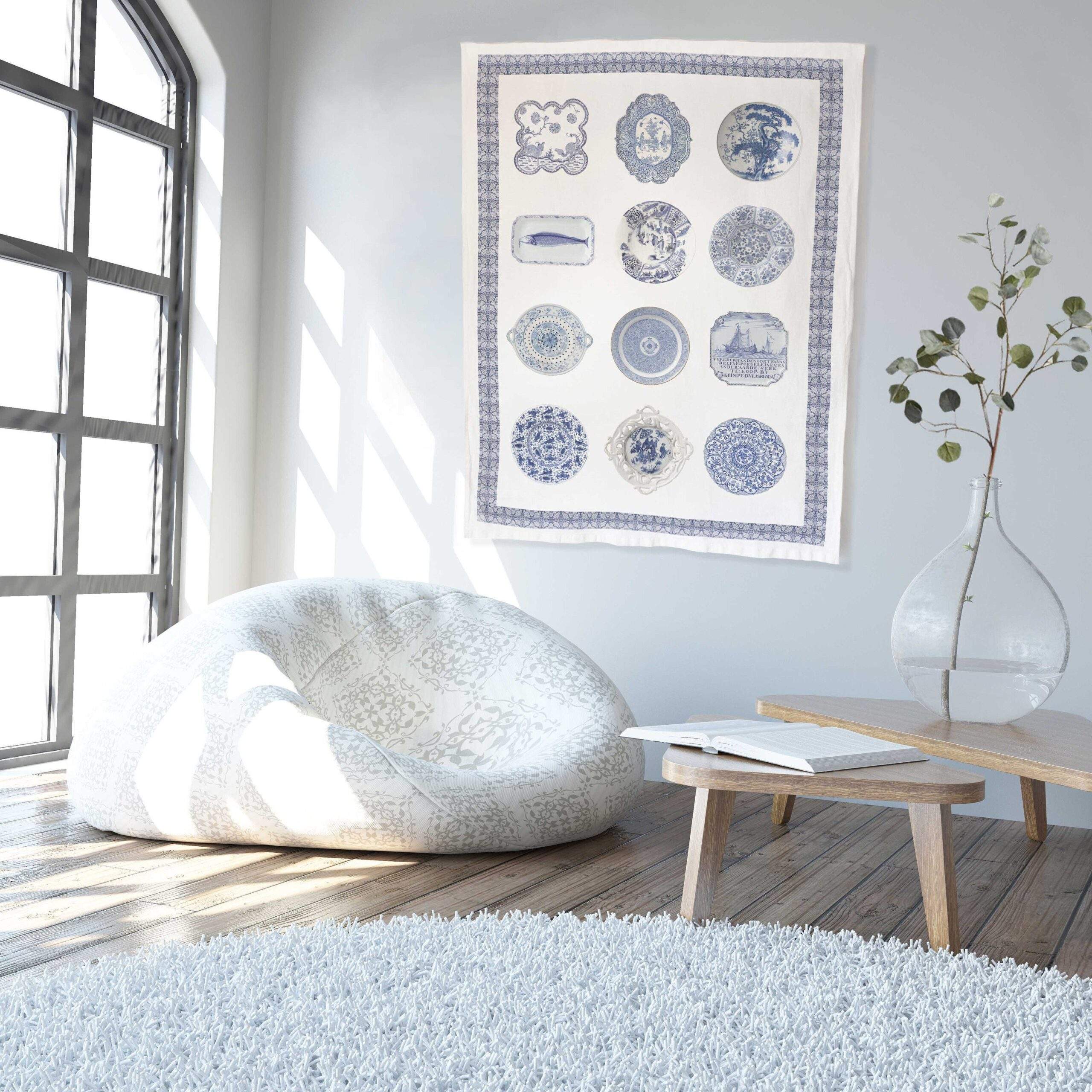Linen wall tapestry “Delft Blue Ceramic”. Two designs available: with blue border and without.
